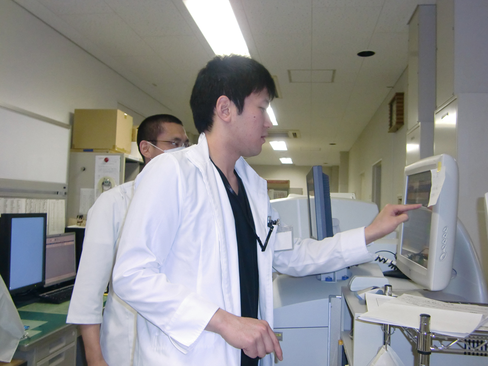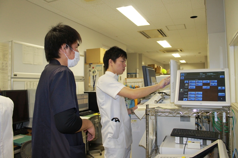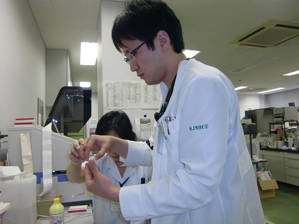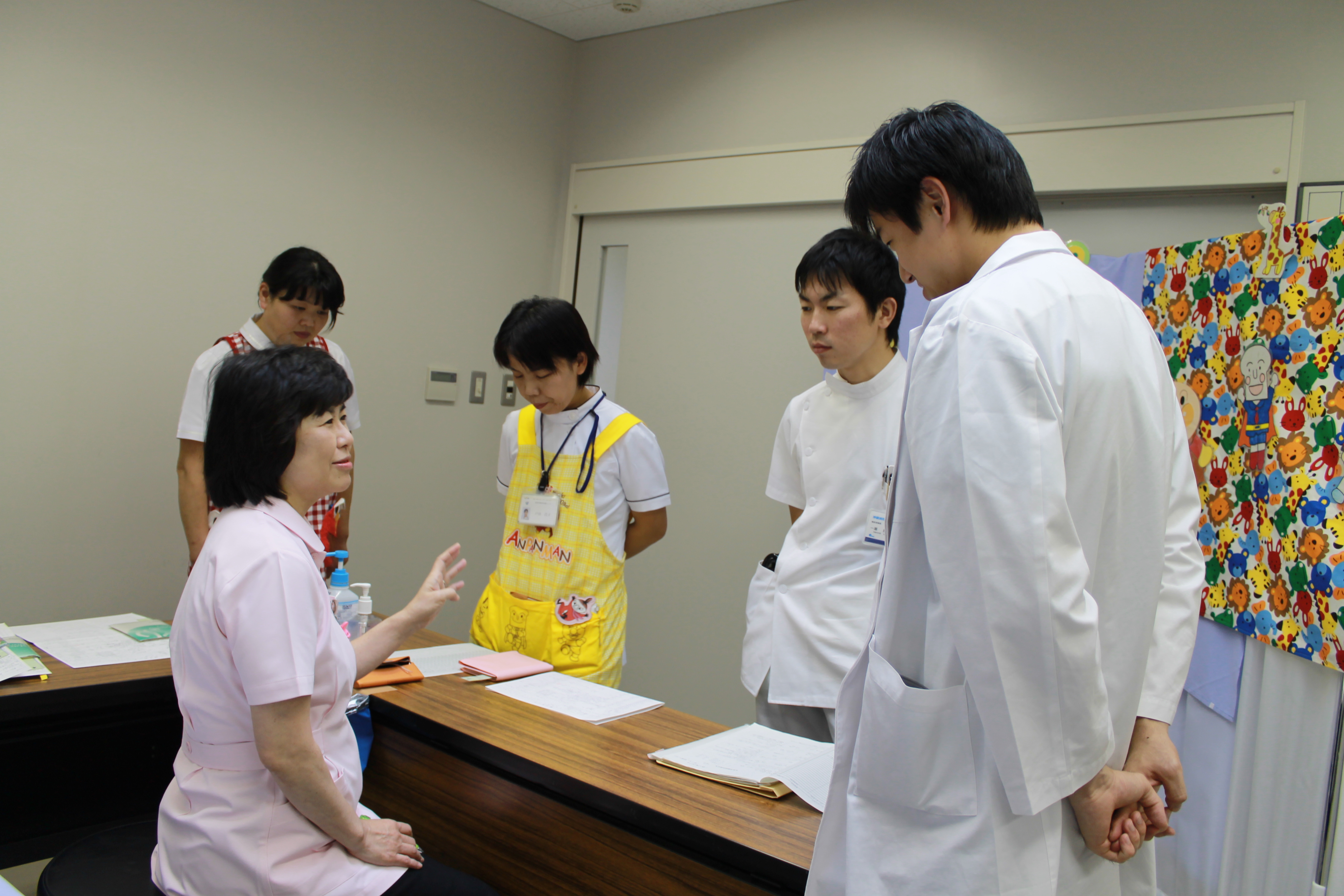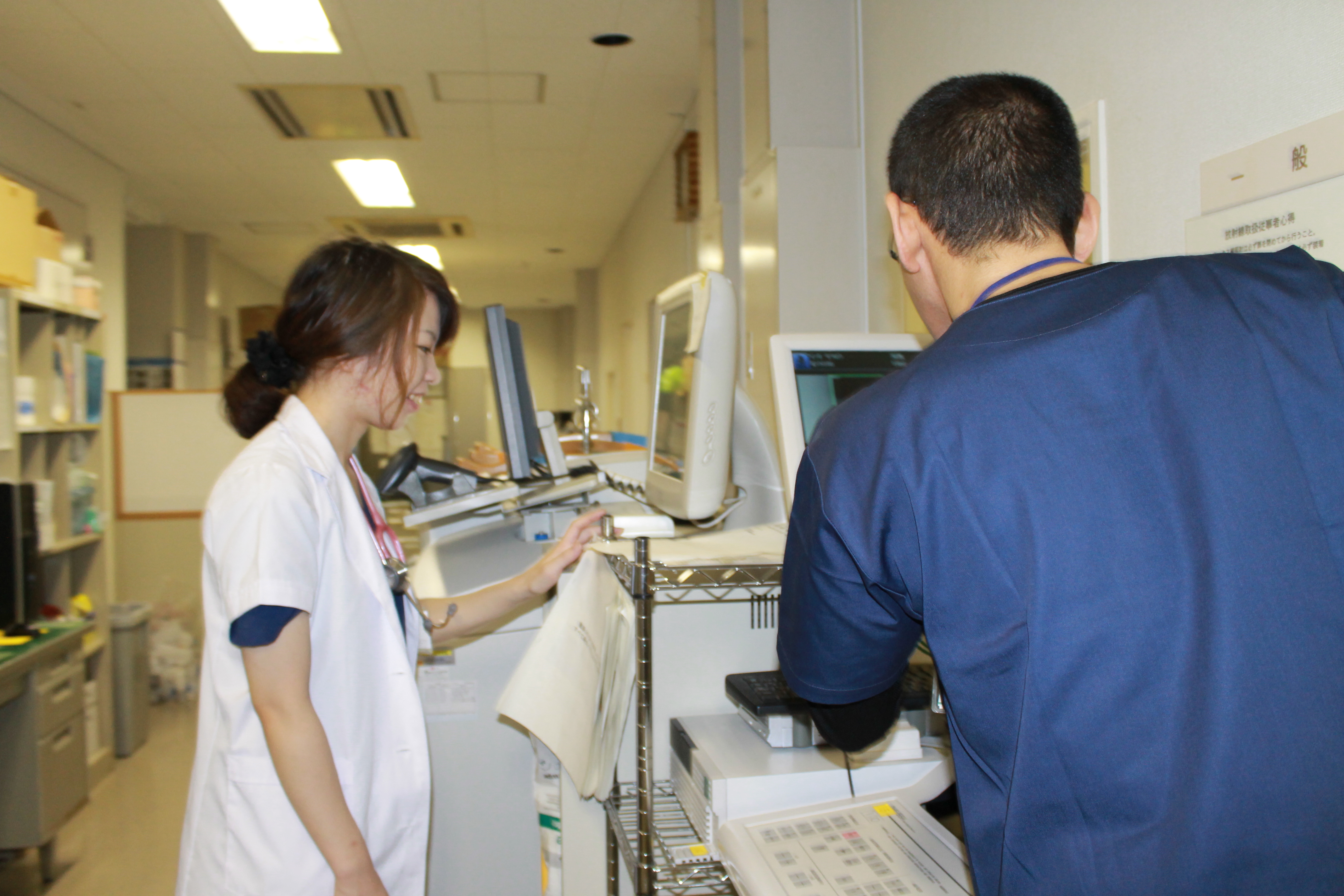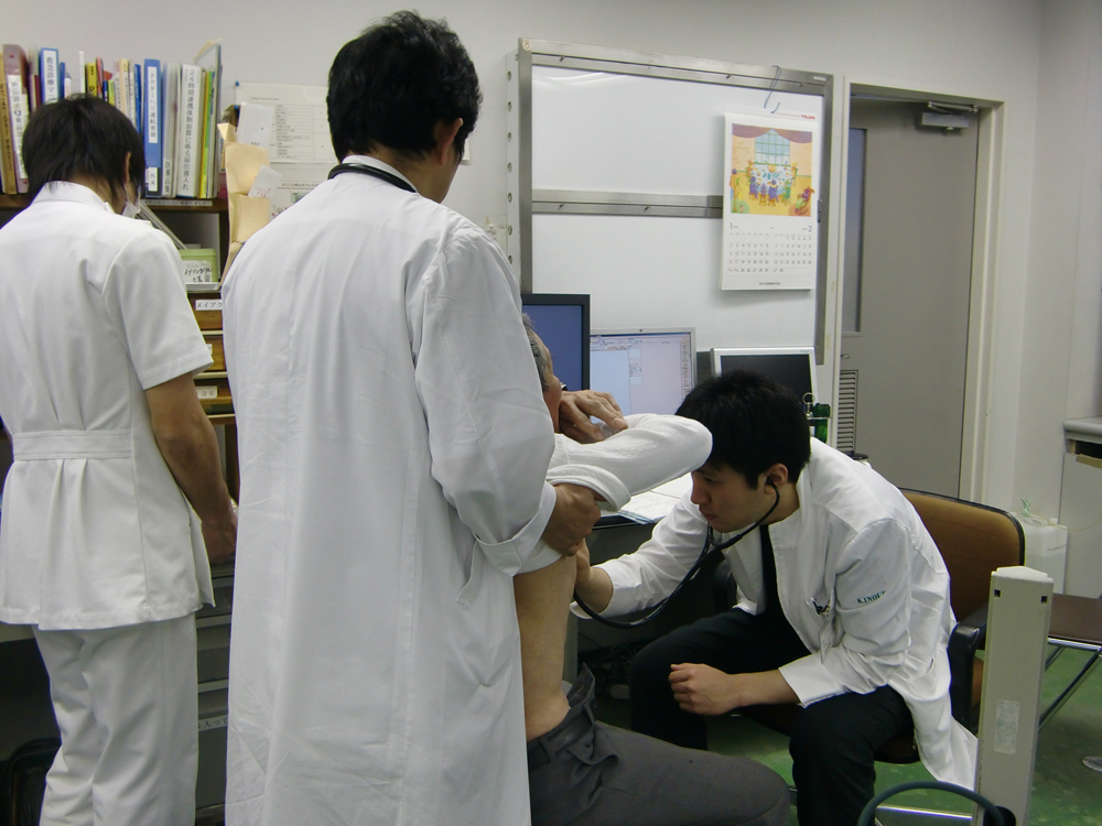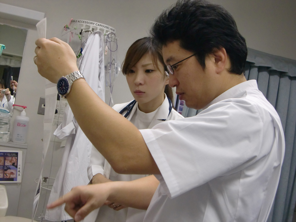 新患外来実習中指導役のドクターがマンツーマンで指導します。研修医と指導医師がディスカッションしながら診察を進めていきます。