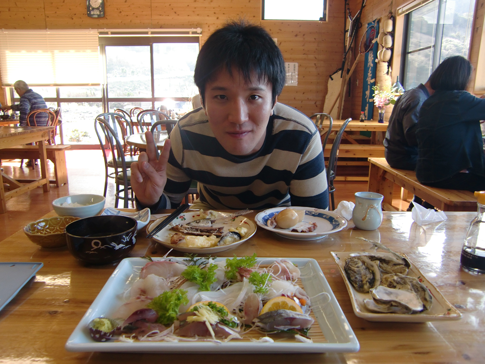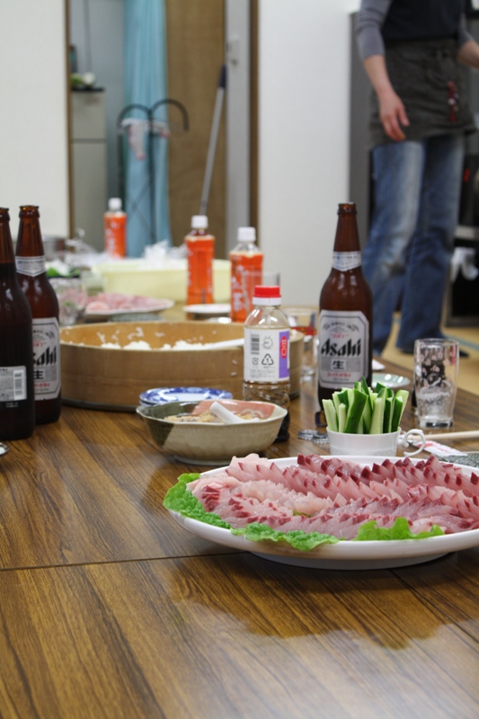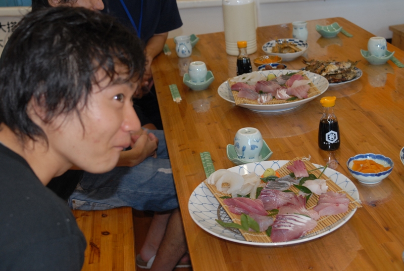 昨晩、長谷川先生が釣ったお魚を御馳走になりました。小林先生御指示の元、お刺身、手巻き寿司、煮物、お吸い物を皆で調理しました。アカヤガラは、とても骨がかたく長いため、おろすのが大変そうでしたが、食べてみると格別な味でした☆新鮮でおいしい魚三昧で盛り上がりました。長谷川先生、ありがとうございました!たくしま