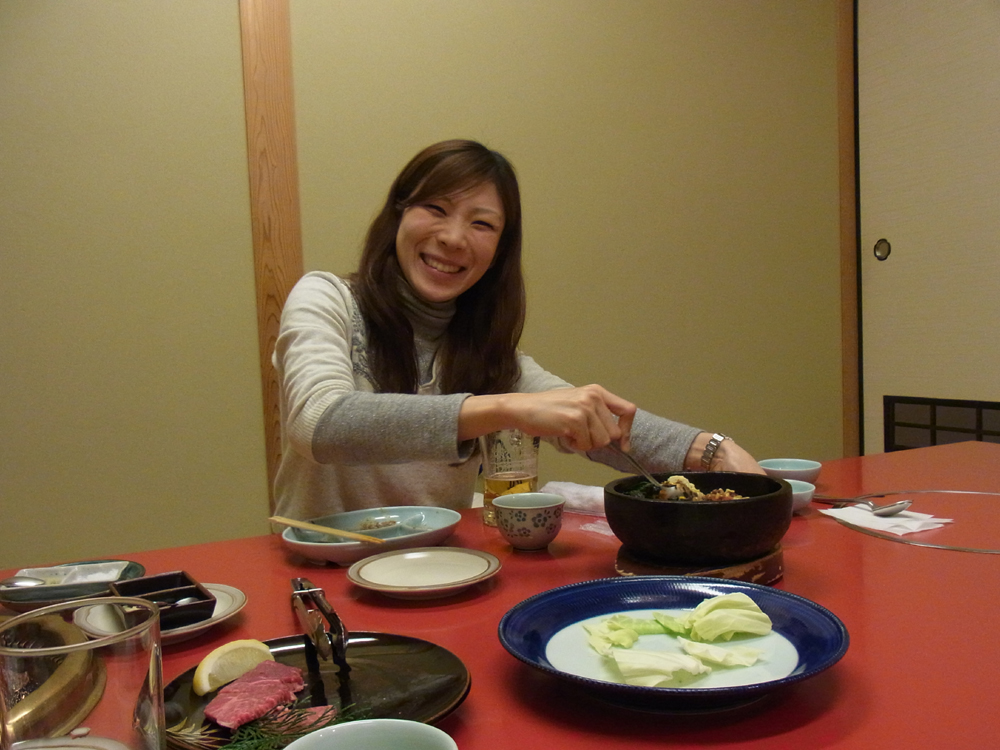 昨晩、井上先生と光岡先生は、飯野先生と焼肉を食べに行かれたようです。霜降りたっぷりの平戸牛は、とてもおいしかったと、井上先生はとても嬉しそうに話されました。ビビンバをつくる光岡先生☆とても、楽しそうですね!!たくしま