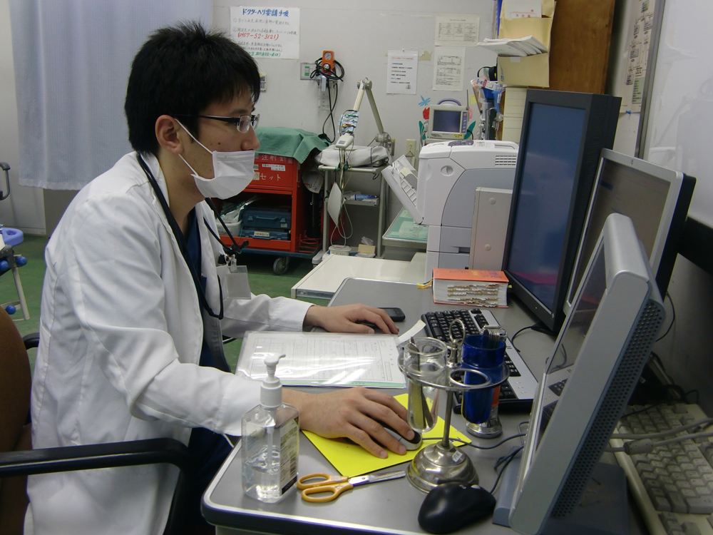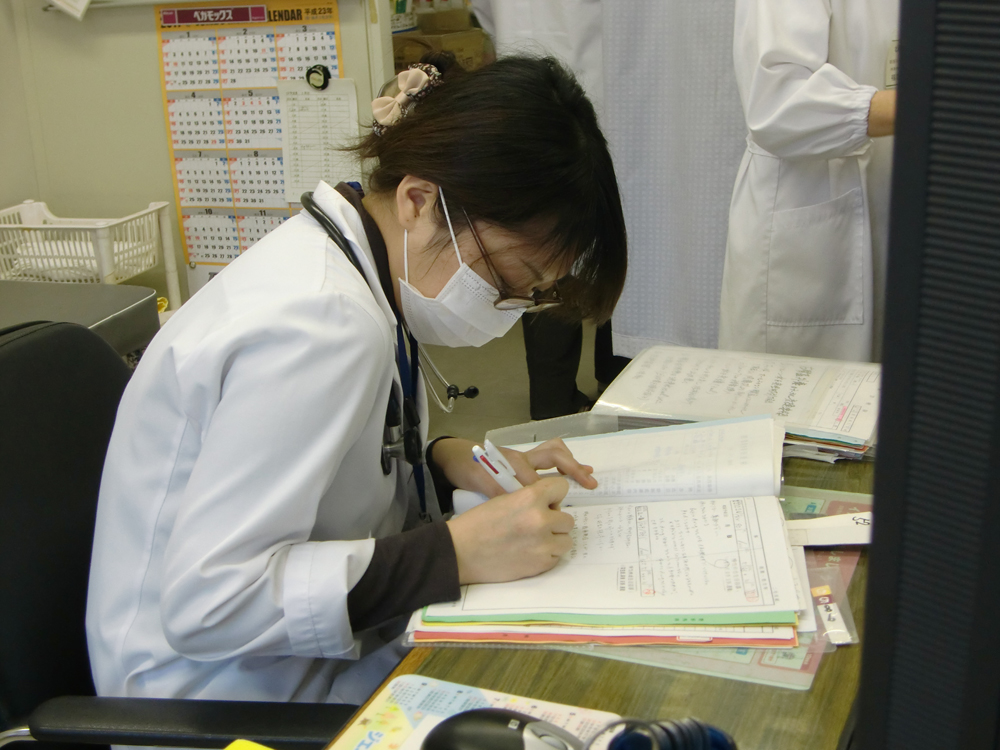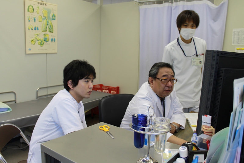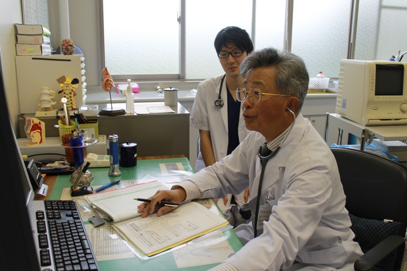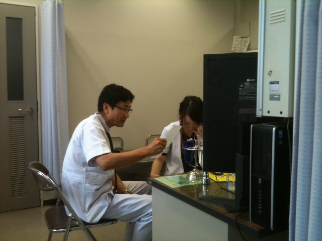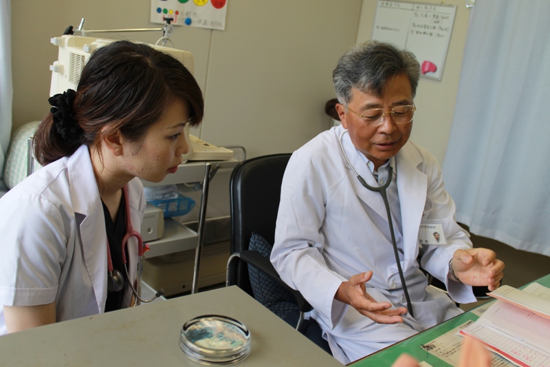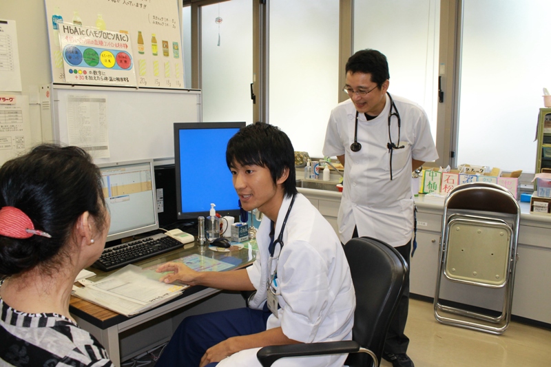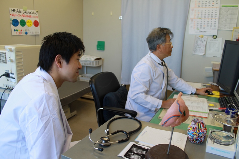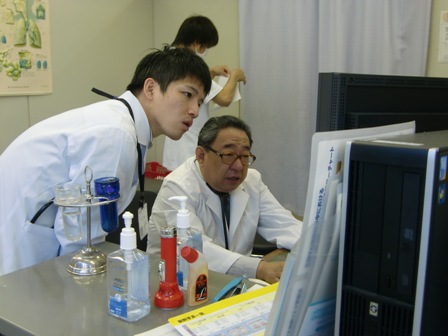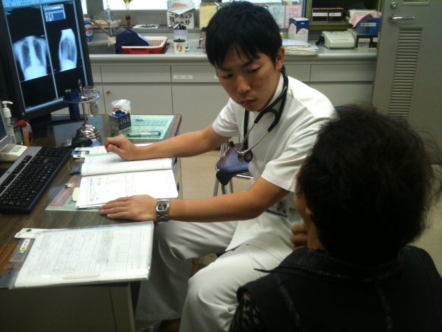 神鋼病院より一瀬先生が地域医療研修に来ました。朝の健診と、押淵院長による外来でのレクチャーの様子です。研修医の先生が2名になり、少し賑やかになりました☆今日から、3週間よろしくお願いいたします。たくしま