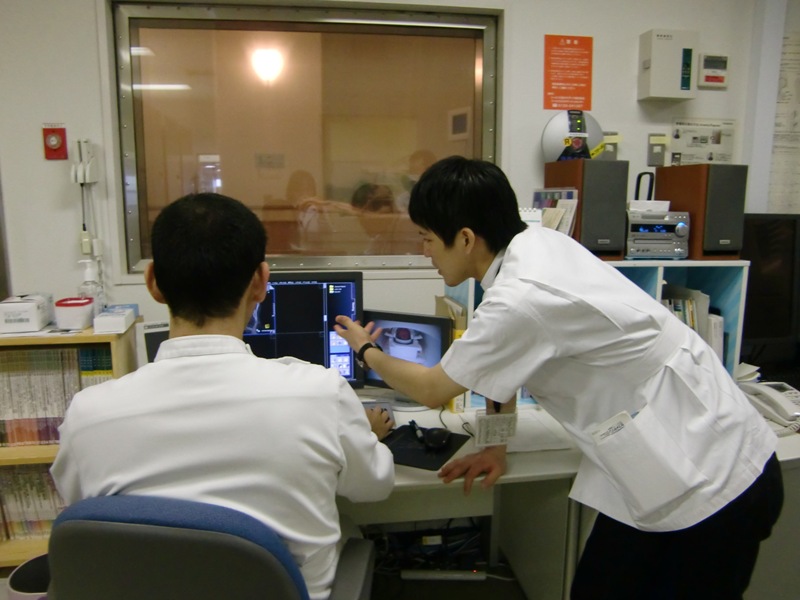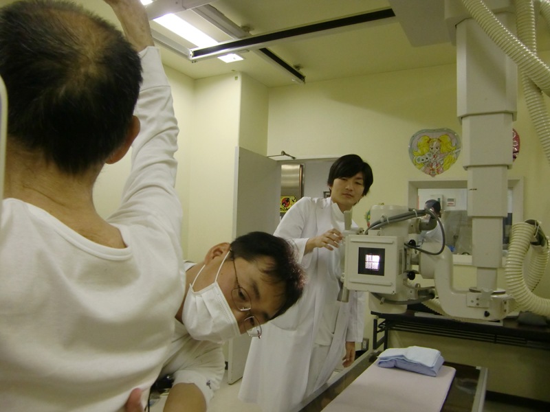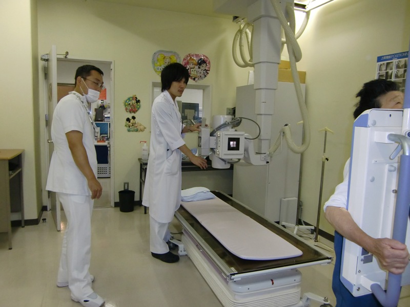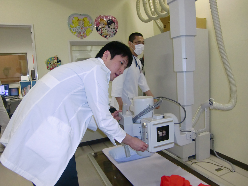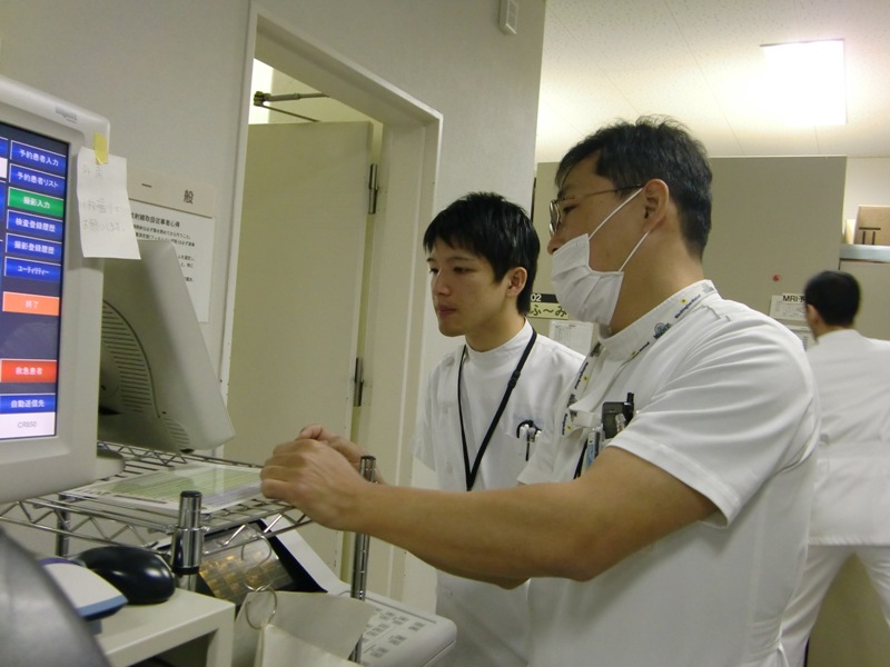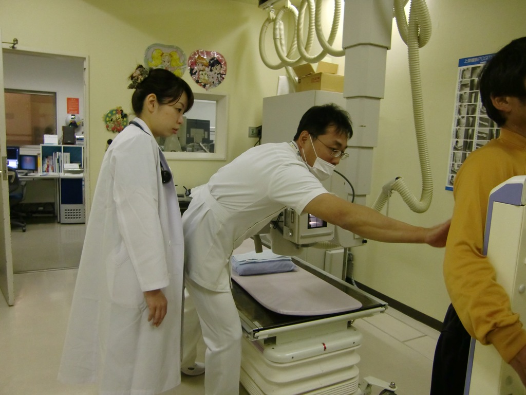 卜部先生の放射線科実習の様子です。今日は、技師さんが1人、お休みだったので卜部先生は、戦力になって頑張っていました。MRI説明もうけていました。レントゲン検査は、したことがなかったので、とても勉強になったそうです。たくしま