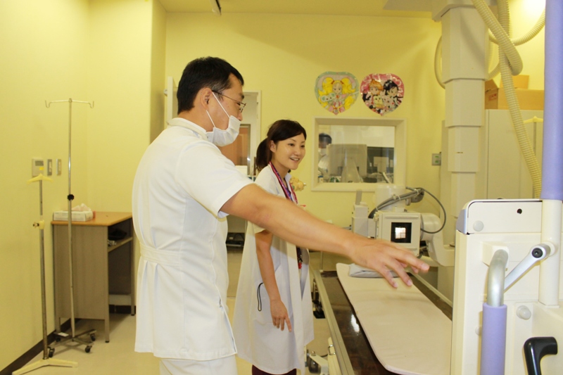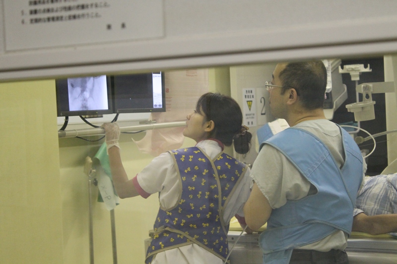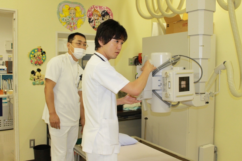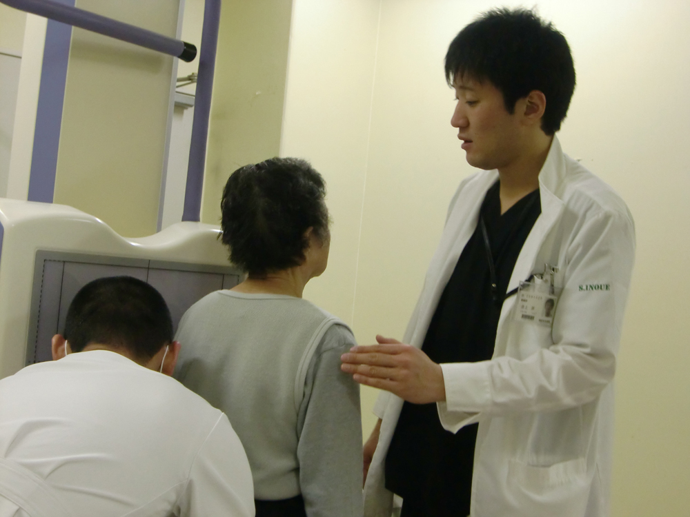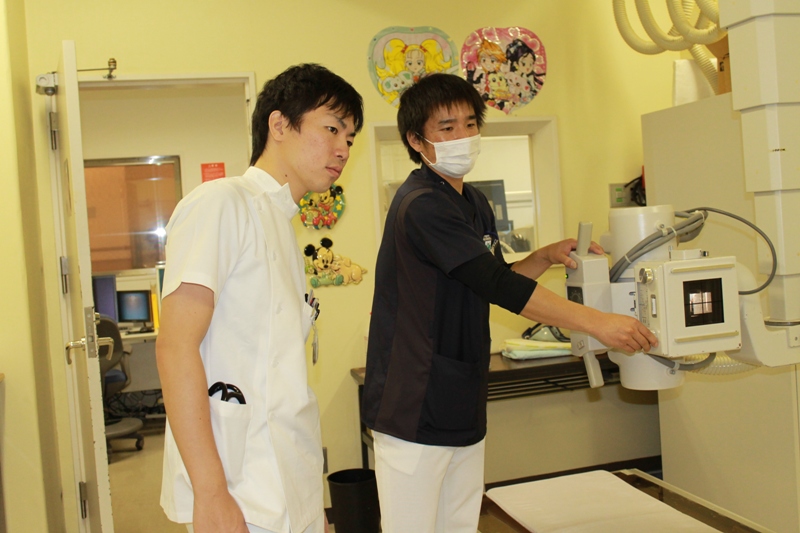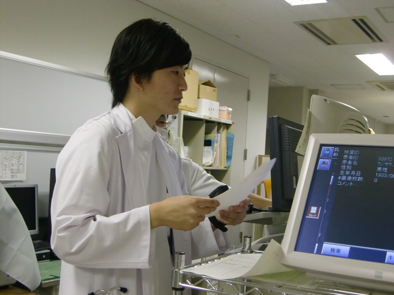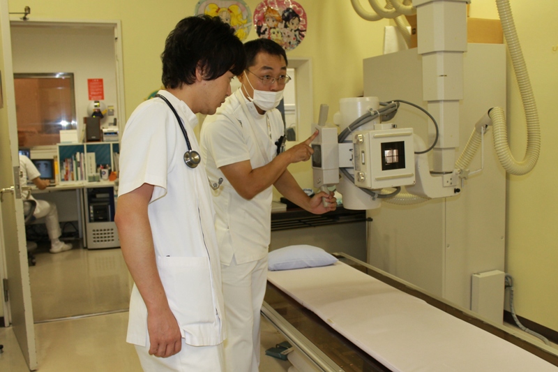 卜部先生の放射線科実習の様子です。今日は、技師さんが1人、お休みだったので卜部先生は、戦力になって頑張っていました。MRI説明もうけていました。レントゲン検査は、したことがなかったので、とても勉強になったそうです。たくしま