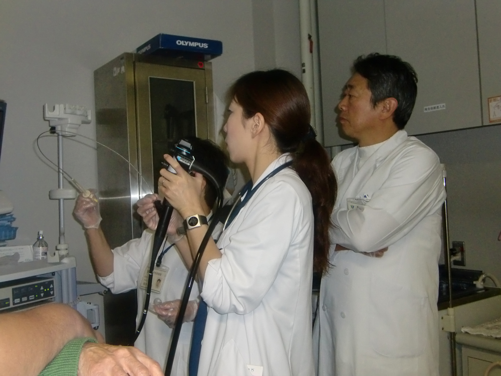 今日の光岡先生の内視鏡検査実習の様子です。濱田先生の内視鏡操作を見られた後、光岡先生がされていました。途中、生検もありました。光岡先生は、内視鏡検査をされたのは、こちらに来てからが初めてだったようで、昨日のエコー実習も含めて、大変喜ばれていました☆たくしま
