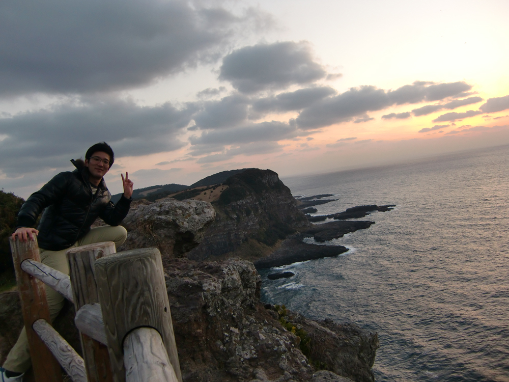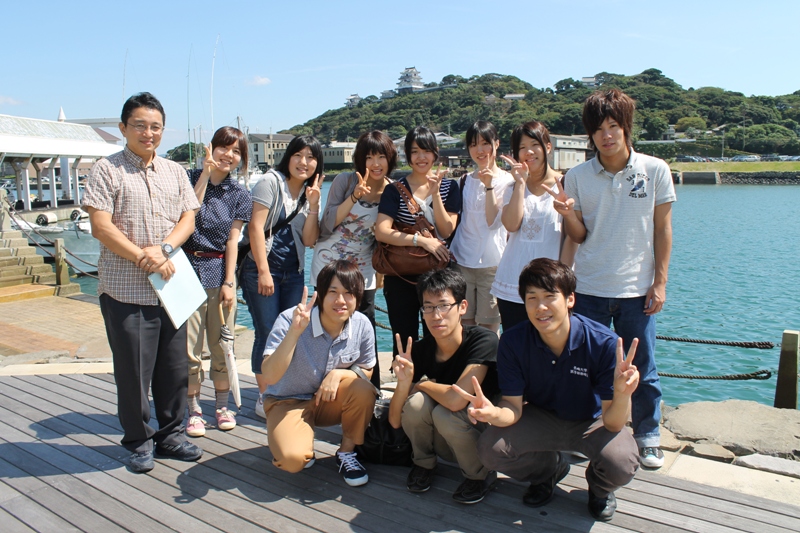 井上先生は、先週土曜日、平戸と生月島の観光をしました。朝一番に、中南部地区や生月島が一望できる「鯛の鼻」に向かい、きれいな島々と海を一望しました。とてもきれいな景色に井上先生は感動していました。その後、平戸城に行き、浦部館長さんに案内をしていただきました。歴史にも詳しい井上先生は、理解が深く、質問が飛び交いました。生月島へ渡る途中の「母々の手」で新鮮なお刺身とバイキング料理を堪能しました。(ここで、ご馳走になってしまいました☆)その後、塩俵の断崖や大バエ灯台に行き、記念撮影をしました。真下には、海が広がる崖っぷちにも危険を顧みず、いいワンショットができるようにと、身を乗り出して撮影に挑みました。本当に、何事にも真剣に取り組む先生だと思いました。世界各国を見てきた井上先生は、今回、日本の美しさを再確認したようでした。たくしま