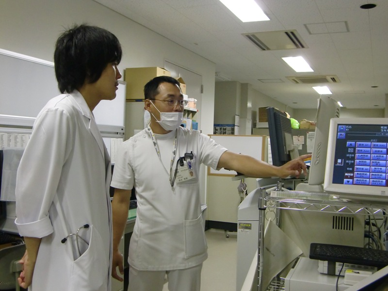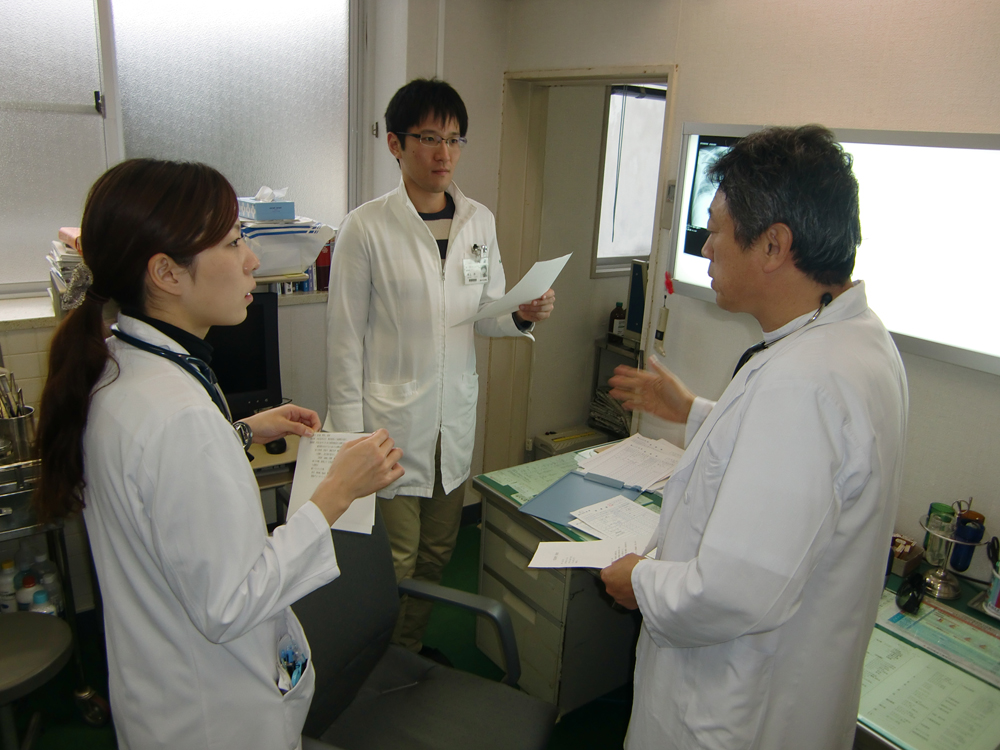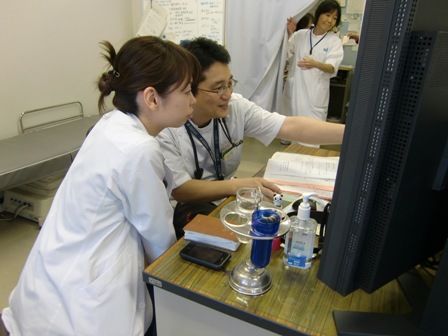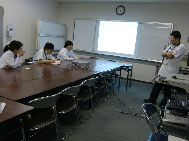 済生会長崎病院より、卜部先生が地域医療研修に来ました。昨日夕刻、調機構長による、‘東日本大震災支援活動報告会’の講演に出席していただきました。今日は、外来に取り組まれた後、今月よりスタートした、デイリーカンファに参加しました。デイリーカンファは、その日にあった症例の検討を医師、検査技師、放射線技師が一体になって毎日15分間、行います。今日、1日お疲れ様でした☆来週からは、研修医の先生が3名になります!
