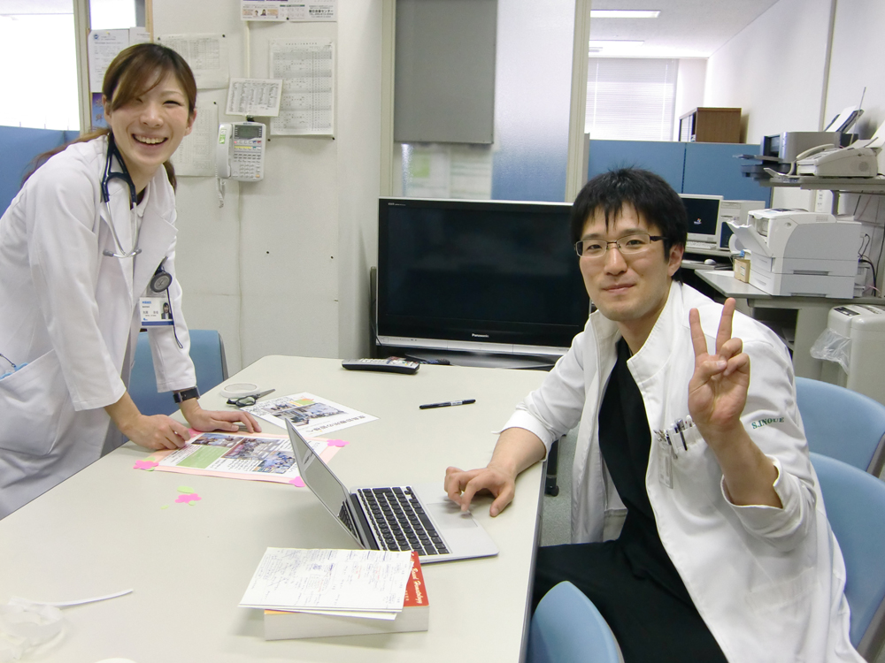 三枝先生と間島先生の研修が終わりました。間島先生は、約2週間と短い期間でしたが、外来、訪問診療・リハ、検査科実習など4週間とほぼ同じカリキュラムに取り組みました。最後の実習発表のときは、じ〜んときました。三枝先生、間島先生、本当にありがとうございました。また、機会がありましたら、おこしください☆
