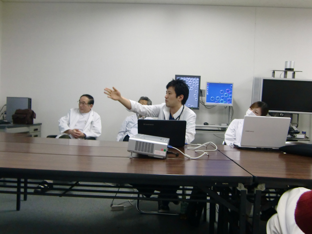午前中は、三枝先生が高橋先生との新患外来。後藤先生は、濱田先生による内視鏡・腹部エコー実習でした。お昼に、濱田先生による「癌の発育とピロリ菌感染」の講義をしていただきました。午後からは、事業所健診で72名の方の健診をしていただきました。夕刻にカンファをして1日の研修が終わりました。。今日も1日、お疲れ様でした。