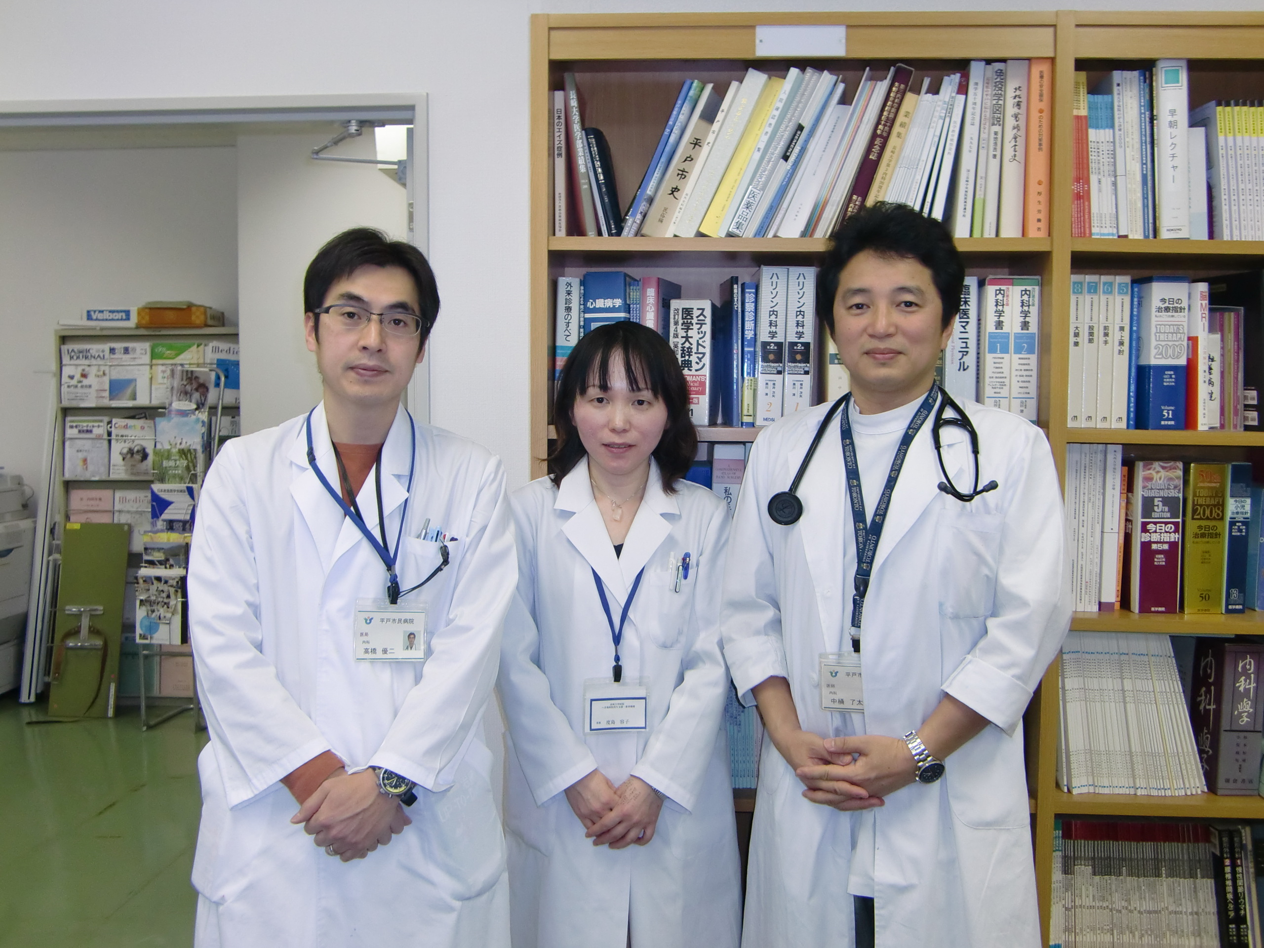 広島鉄道病院から大成先生、横浜労災から三宅先生、横浜市立大学附属センターから尾崎先生が地域医療研修に来ました。朝の事業所健診の後、外来での研修の様子です。今日から、4週間よろしくお願いします。たくしま