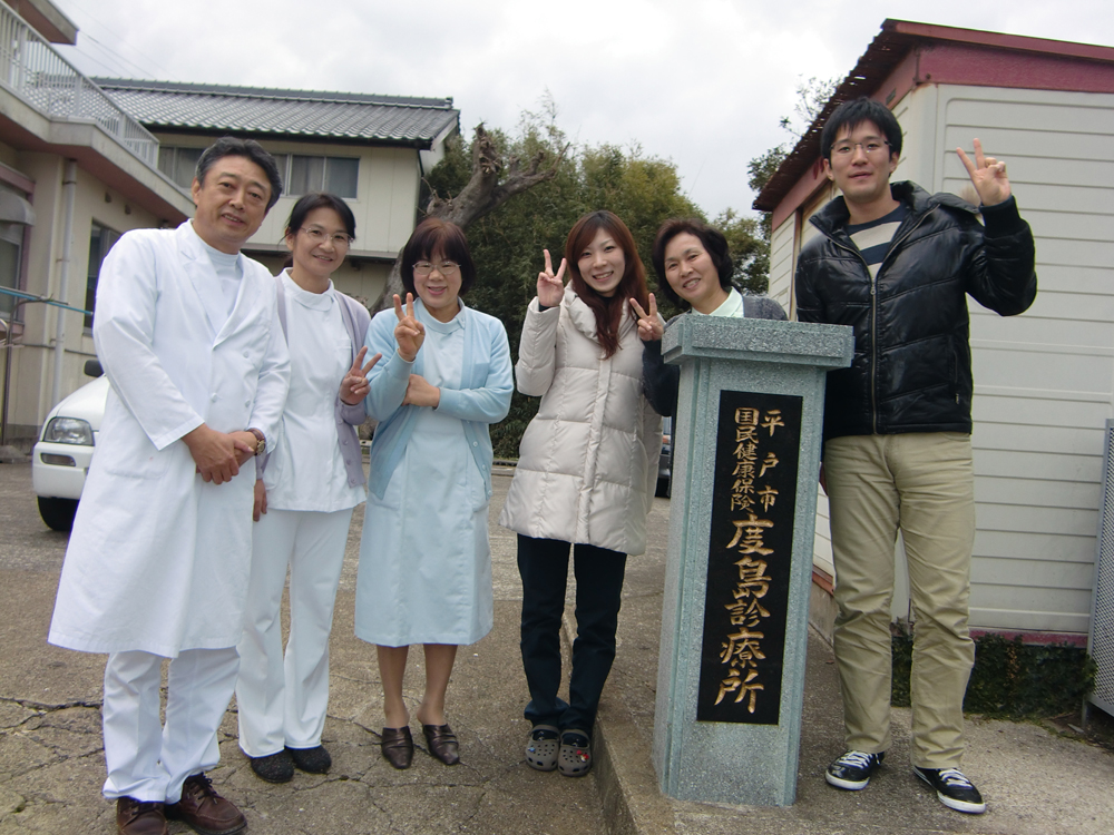 第4回? 離島・へき地医療ツアーを挙行いたしました。H22年度 医学ゼミ「へき地・離島医療」を選択した 長崎大学医学部4年生対象に 3月1日から4日、宇久診療所、上五島病院、平戸市民病院を巡ってきました1日 宇久診療所9時に佐世保に集合・・・でしたが 引率者が10分遅刻(汗)高速艇で宇久診療所へ当日は冬型の気圧配置が強まっており、洋上はうねりが強く上に下に大きく揺れました。寝ていれば何とかなるのですよ。宇久に長年勤務していらっしゃる保健師、坂口カズ子さんにお話を伺いました。市町村合併による意志決定速度の低下。住民基本台帳制度による基本データ収集の難しさ現場と行政の距離が遠くなってしまったことすべの人の生活に関われる保健師としてのやりがい生活に役立つ制度の創設などこれまでの役割をいろいろと話して下さいました。その中で、一番印象的だったのは 「地域性は変えられないですね」変えられないことがあるから地域の医療は定義が難しいなにより求められることが、違ってくるのですね。長年活躍なさってきた方から言葉、心に響きました。