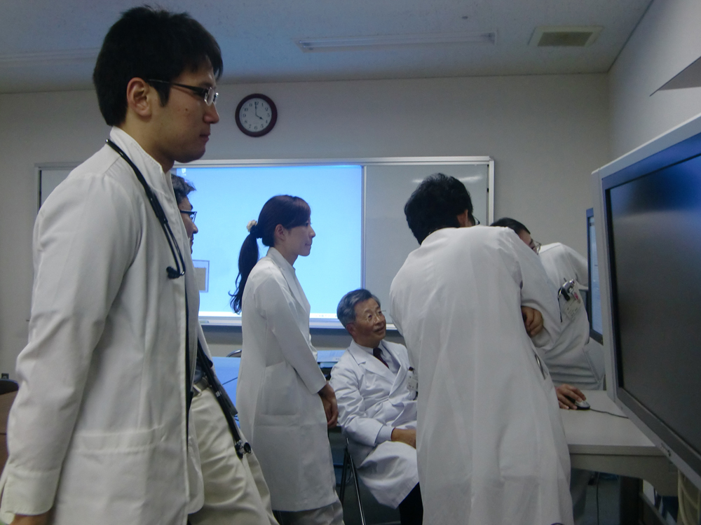 午後から、研修医の先生方は回診の後、整形外科のオペに取り組みました。手術をされた患者さんについて、ディリーカンファで検討されました。検査技師さんが、驚くべく発見をされ院長先生は感心されていました。