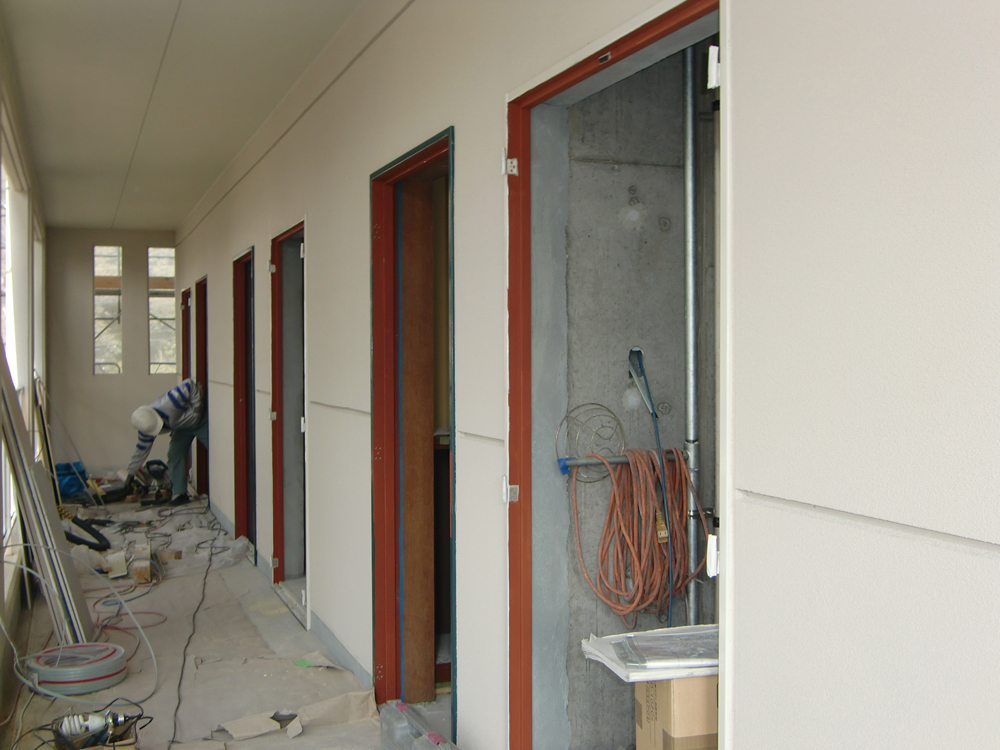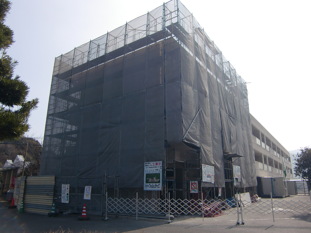 レジデントハウスの外壁ができています!2階は、研修室になっており、ここも医師官舎2階から行き来できるように通路ができていました。来年度より、研修の受け入れが2病院増えることなどもあり、3部屋ある部屋がフル稼働しそうです☆私も、事務に部屋の管理人にフル稼働で頑張ろうと思います☆《レジデントハウスは、長崎県の地域医療再生基金により建設されています》