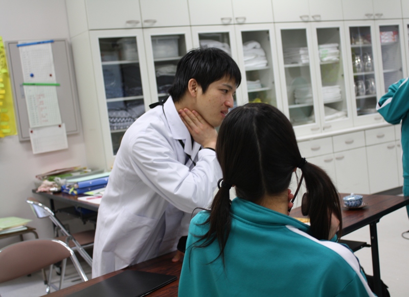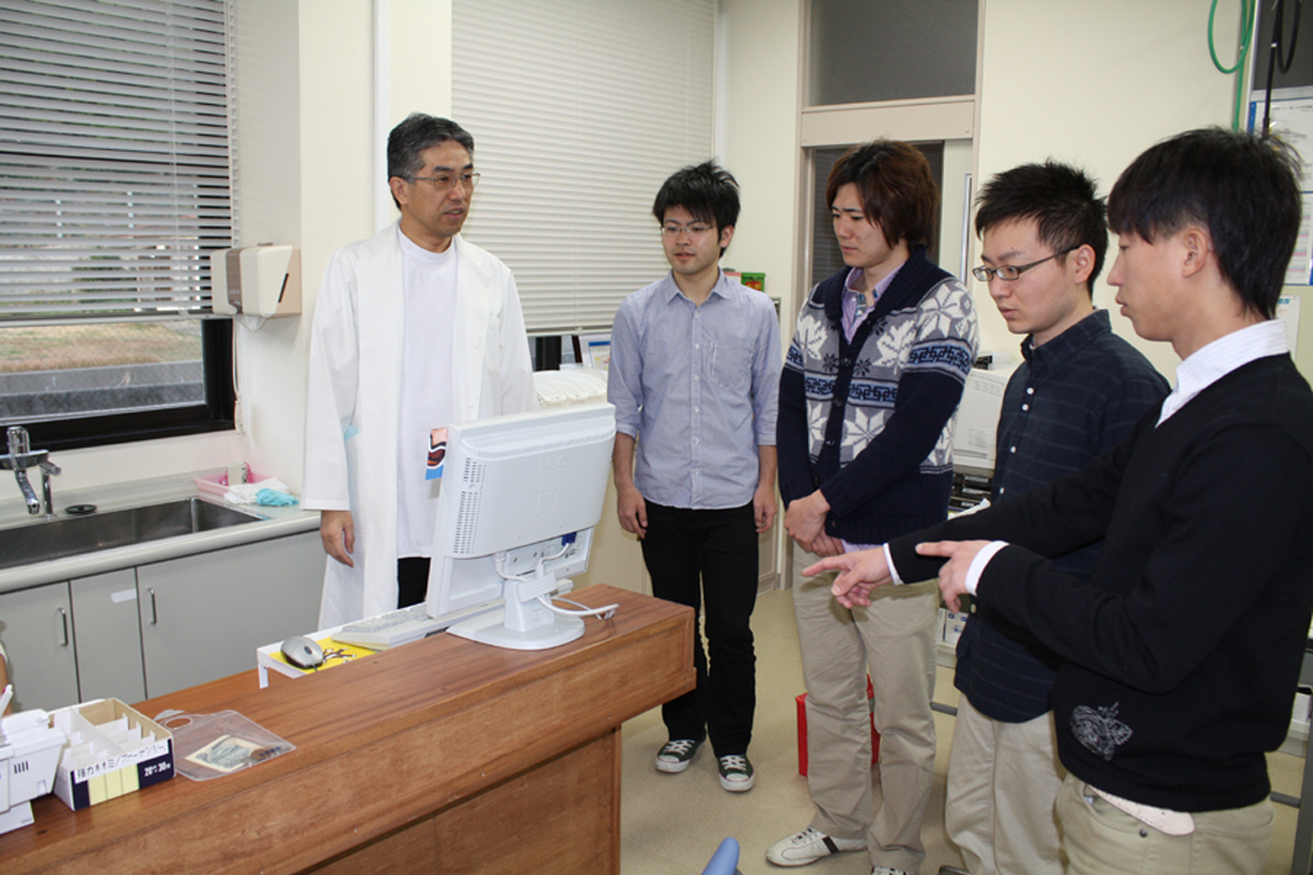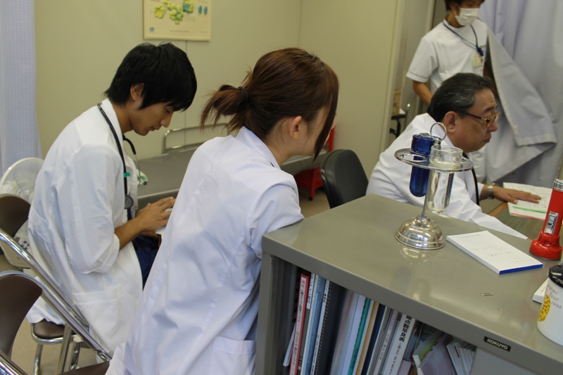 3月1日は宇久診療所、有吉靖先生を訪ねました。訪問した当日は診療の谷間日で普段よりもかなり少ない来院数でした。(1月4日の8週間後なのだそうです)通常は50〜60名近くの外来となるそうです。今回は見学だけでなく、空いている時間では診察室を使った実習も。医療コミュニケーションでは医学生が先生役にまわり、検査結果の説明。専門用語を使わずに説明する方法に皆苦戦していました。プレゼンテーションでは的確に専門用語を使用することを求められますが、患者さんへの説明にはそれを使用してはならない。言い換えの必要性について考えさせられていました。また、衛生についても心掛けそれは、自らの家族を守ることにつながると。有吉先生は H23年4月23日土曜日 第4回ざっくばらん家庭医療勉強会 in 長崎大学病院 で講師をお願い致しております。長崎でも先生のお話が聞けますよ!