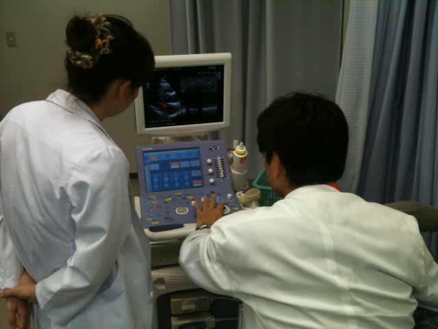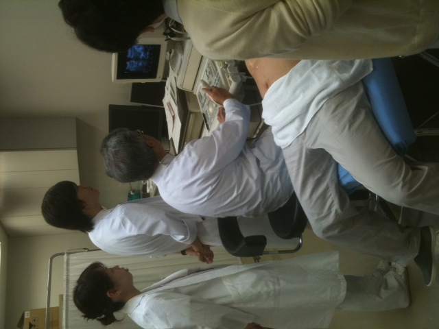 今朝の健診の様子です。中桶先生のレクチャーの後、柴崎先生もエコー走査をはじめました。ちょっぴり目線が違うな・・と思っていたら、柴崎先生は長身なので、見づらかったですね。モニターを少しずらしてみました。毎回違う先生が来られるからこそ、いろんな発見があります☆たくしま