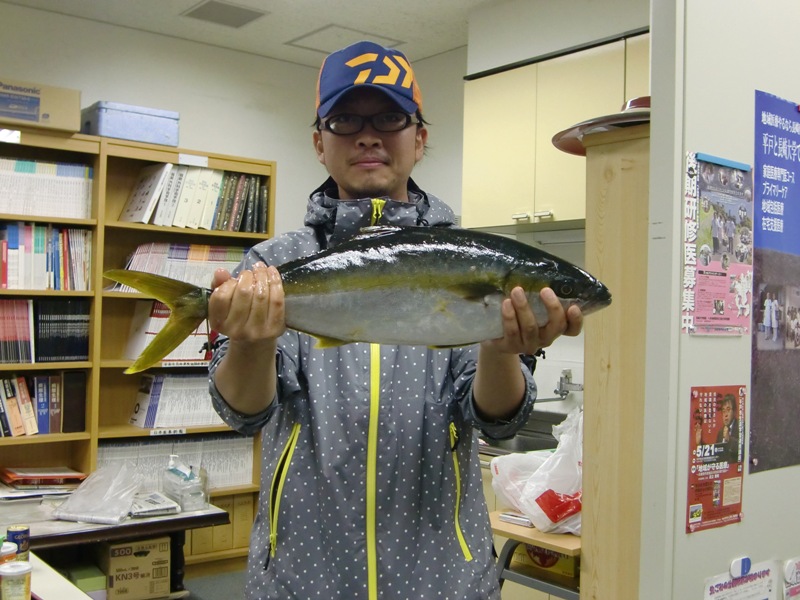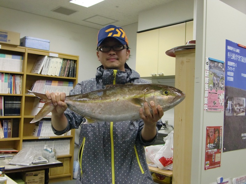 昨日、長谷川先生は、船釣りをしました。朝3時に出発し、約4時間船に揺られ、韓国沖近くで釣ったそうです。みごとに、アカヤガラ、カンパチ、ヒラスを釣ってこられました。長谷川先生は、平戸での船釣りをとても楽しみにされていましたので、とても嬉しそうでした。ちなみに、アカヤガラは、私も初めて見た魚でした。とても、きれいともいえるし、グロテスクともいえるような色と形をしていて驚きましたが、高級魚のようです!!今日、このお魚で食事会をします☆☆