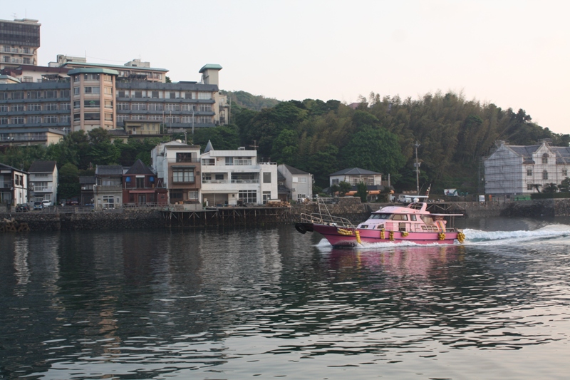 昨日、井上先生と光岡先生は、度島診療所へ研修にいきました。平戸港を10時30分発のフェリーに乗り、度島に上陸しました。まず、島の様子を知ってもらうため、濵田先生は島を一周した後、住民の標的、イノシシを見せてくださいました。隣り島の大島にある風力発電の騒音が苦手なイノシシは、泳いで度島へ渡り畑などを荒らし、農家さんなどを困らせています。捕獲できたイノシシを先生方がこられるまで、とっておいたようです。初めて、イノシシと対面した井上先生。昼食を、度島唯一の飲食店で、濵田先生にご馳走になりました。診察の見学、診療所で人気の低周波レーザー実習の後、濵田先生から、ある患者さんの症例を説明され、原因となった病気を先生方に問いました。答えは、衝撃的な病気だったのですが、井上先生は即答されました。その後、訪問診療にも同行しました。平戸よりくねくねとした危険な道を、3月まで東京に居住されていた濵田先生は、すいすいと運転されました。向った先の患者さんは、濵田先生のお蔭で、元気になりましたと、とても慕われていました。最後に濵田先生が園医をされている度島町へき地保育所へ招待され、園児のダンスや、手作りの首飾り、メッセージをいただきました。とても、可愛い園児に先生方も感激していました。度島診療所だけでなく、島の生活の様子が伺えた充実した研修でした。濵田先生、本当にありがとうございました。