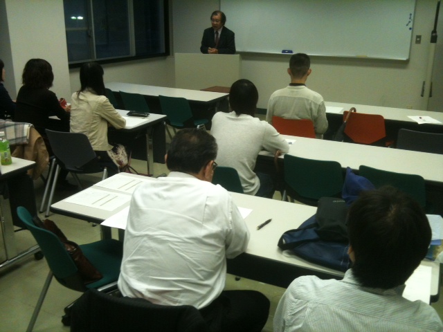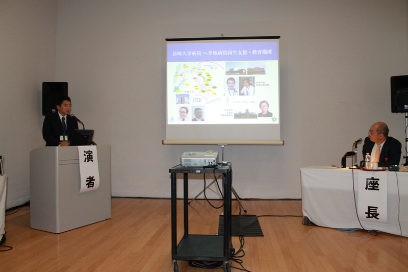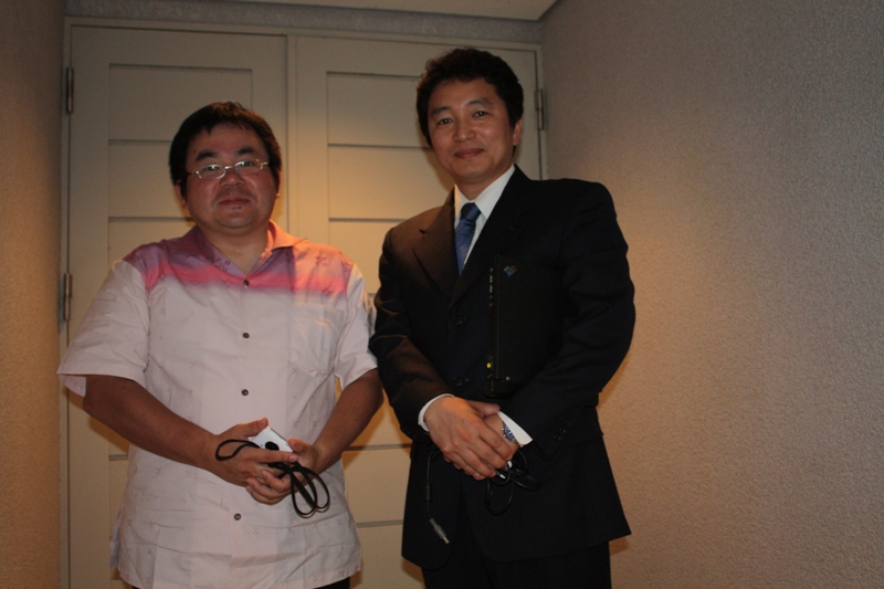 「長崎県の離島医療の取組み」について、井上先生は、調機講長の講義を受講されました。遠隔操作や技術革新が、必要に迫られている分、進んでいることに関心されていました。離島医療のお話が勉強になりました!!とおっしゃられました。講義の後も、昨晩からの続きがあり、離島問題と領土問題のお話や、医療と町おこしが繋がるお話など熱く語られたようです!最後に、機講長の名刺を受け取られ、今後も出会う機会があることに期待を寄せていました☆たくしま