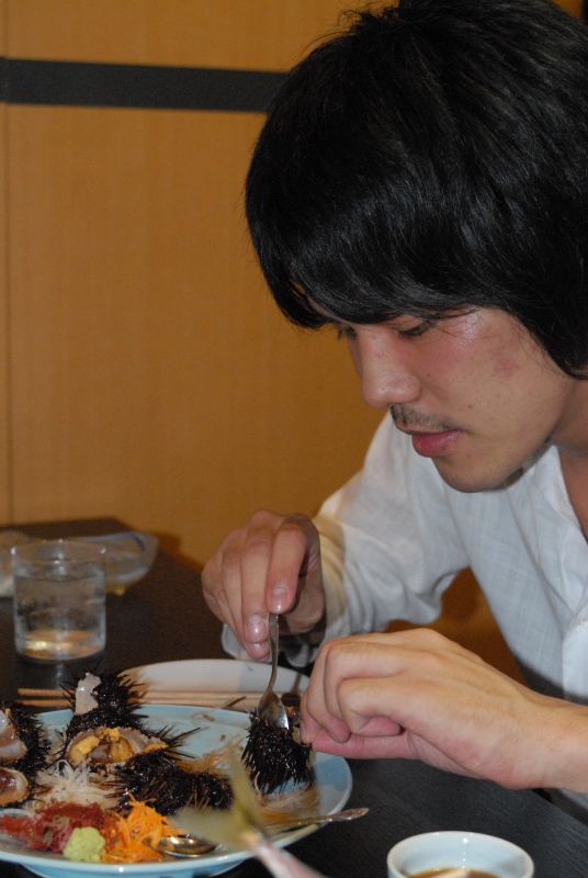 昨晩、エビス亭でウニ料理を食べに行きました。今朝とれたばかりのウニは、とても甘くてふわっとやわらかく、とても美味でした☆☆そして、研修医の先生方に御馳走になってしまいました。尾崎先生、三宅先生、大成先生、本当にありがとうございました。最後にいろんな感動をいただきました。たくしま