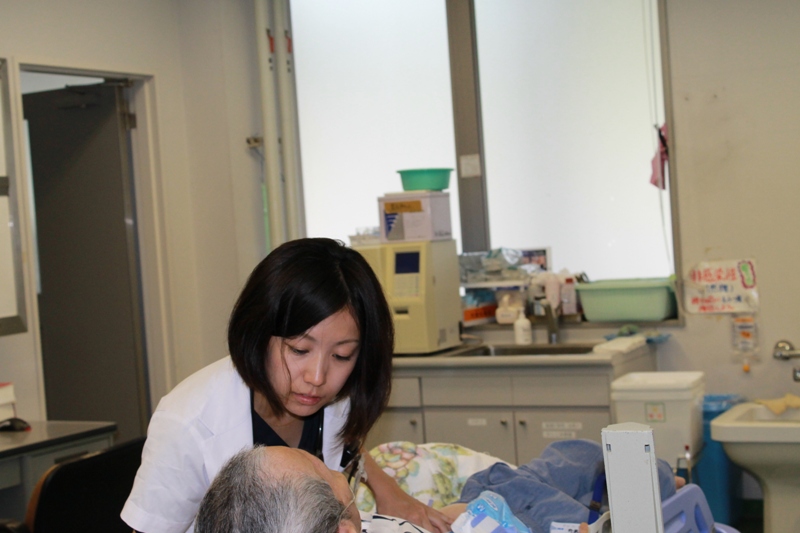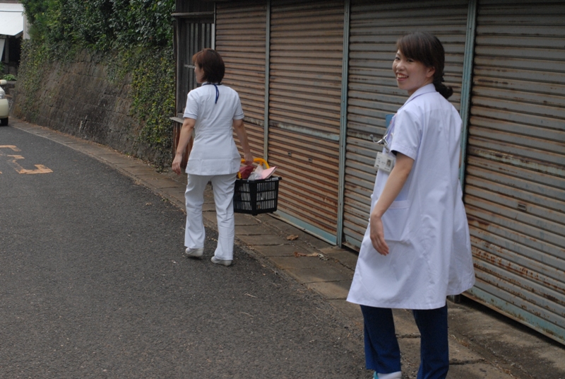 光岡先生は、午後から中桶先生と訪問診療に行きました。先生達と患者さんとの会話で、とても和んでいらっしゃいました。きれいな光岡先生に反応して、いつもより血圧が上がってしまわれた患者さんもいらっしゃいました。毎回「また、来てください」という言葉で訪問先をあとにしました。たくしま