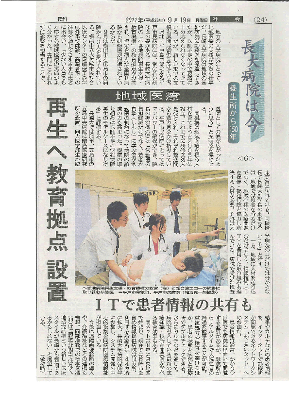 19日の長崎新聞に、先週、緒方支局長さんが取材に来られたときの記事が掲載されました。長崎大学病院開院150周年の特集記事として、7回連載のうち、6回目に大きく載せていただきました。ありがとうございました。