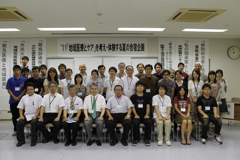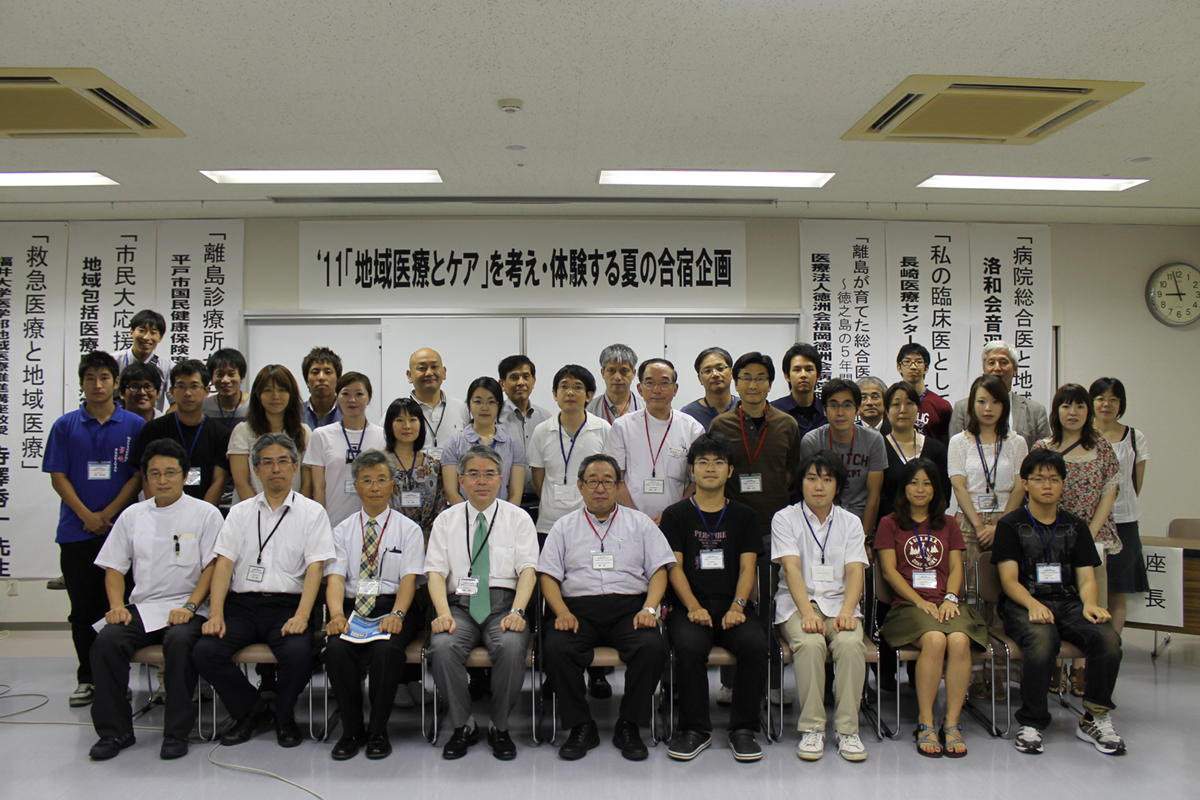 8月26日(金)〜28日(日)にかけて第6回地域医療・ケアを考え、体験する夏合宿企画は無事に終了致しました。1日目は洛和会音羽病院 松村先生による講演では、総合医、特に病院総合医の役割についてクリアカットにお話頂きました。総合医について整理されてきました。2日目は長崎医療センター 中道先生、福岡徳州会病院 小野先生、度島診療所 浜田先生、美郷町 地域包括局金丸先生の4名の先生をお招きし、それぞれの地域医療のキャリアについて語って頂きました。3日目は福井大学 寺澤先生による講演、5分に1回以上の笑いでした。ER型総合医による病院再生、そして地域再生。教育力が地域医療再生の原動力と感じました。最終日の講演会終了後は地元の方を交えて、「地域医療を行う医師が備える能力は?」と題してグループディスカッションを行いました。普段は医師、医学生、医療関係者の間での会話が主ですが、地元の方を交えた視点が新鮮、見方が変わったとの感想を頂きました。来年は H24年8月24日(金)〜26日(日)の3日間 平戸市民病院で開催予定です。来年も平戸でお会いしましょう!中桶 了太