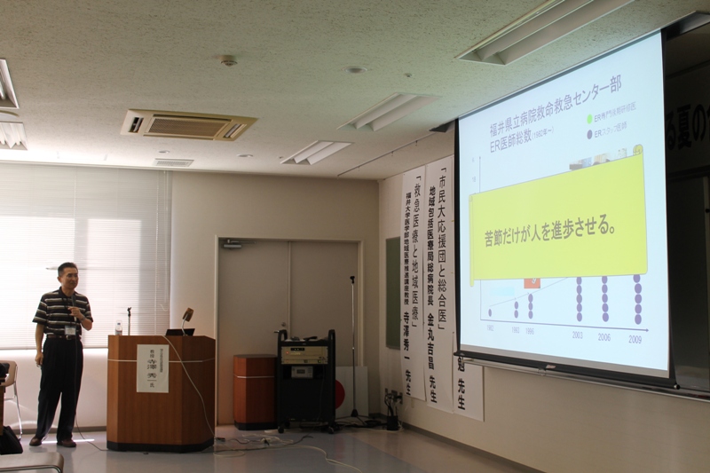 3日目は、福井大学教授の寺澤先生の講演会とW・Sでした。寺澤先生の講演会はユーモアをからめながら、救急医療に向ける熱い思いが伝わってくるような講演でした。(長崎大学の竹山君が手に持っているのは、寺澤先生著作の本です。)この日は、地域の方にも参加していだきました。地域の方にも、心を打つものがあり来年も是非、参加したいとのことでした☆☆発表を終えて、皆さんで記念撮影をしてフィナーレとなりました。たくしま