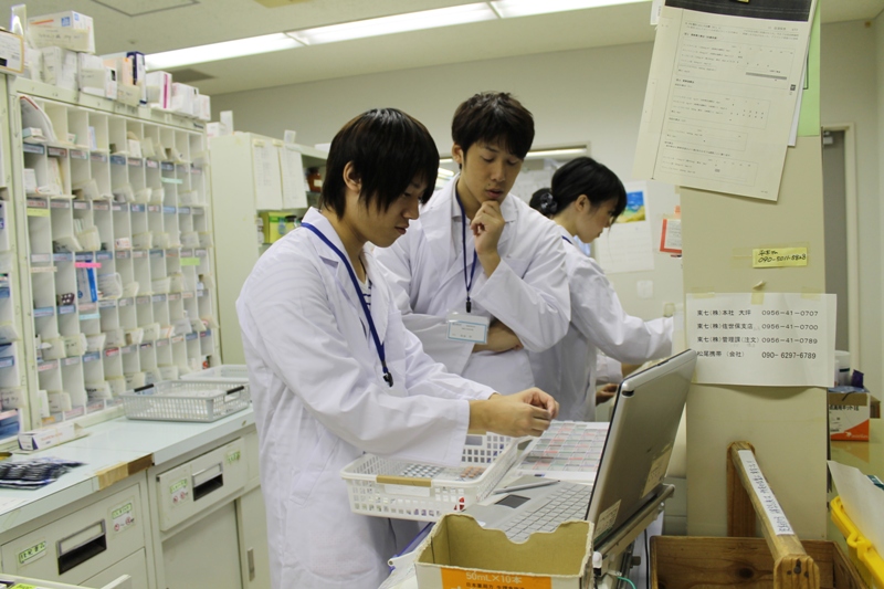 先週、地域枠で長崎大学医学部に入学した、1年生10名が新入生研修合宿に来ました。まずは、先生方の講義を受講しました。この日は、長崎大学看護科、OT・PT科の学生さんも、研修に来ていたので、合同での講義でした。翌日は、院内実習で、外来や病棟、リハ室を見学しました。薬剤師さんに指導してもらいながら調剤もしました。午後からは、訪問実習です。中桶先生と高橋先生の訪問診療や、訪問看護、リハに同行しました。3日目は、特別養護老人ホームでの実習でした。老人の方達とお話や風船バレーなどをしてふれあいました。3日間、あちらこちらでの研修、お疲れ様でした。皆さんの笑顔に出会えて、嬉しかったです☆また、お会いできることを楽しみにしています。たくしま