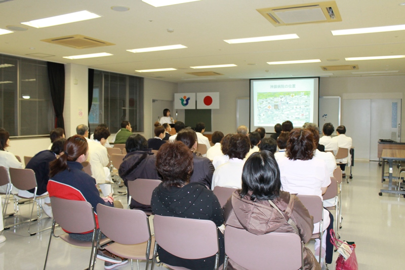 出前講座、出前だけど今日は病院の近所なので病院ヨコの保健センターに足を運んでいただきました。井上先生、みえますでしょうか?