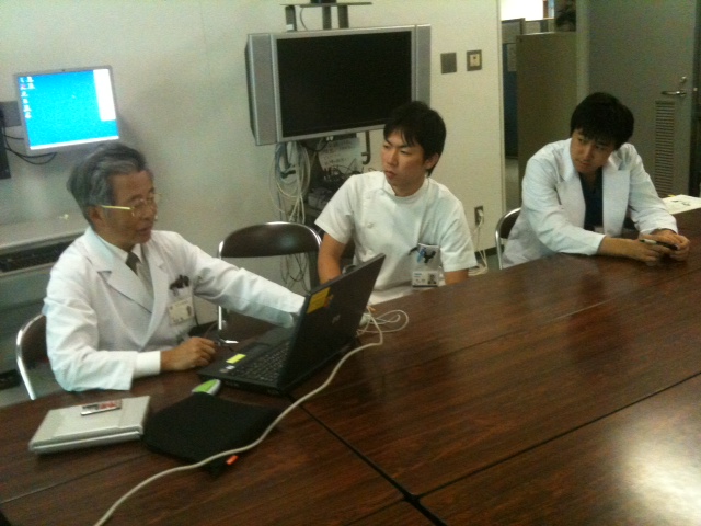 今日の後藤先生の中桶先生との新患外来の様子です。患者さんが来られる前に、中桶先生のレクチャーをしてから、後藤先生が外来を担当しました。元気になったので、こちらの病院へ通いたいという相談も聞きつつ、容態についても上手にお話しされていました。