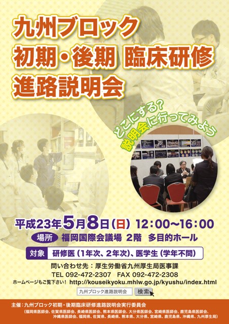 5月8日 日曜日 午後12時から午後4時まで福岡国際会議場 2階 多目的ホール九州ブロック初期・後期臨床研修説明会に長崎県と共に出展します地域医療に興味のある方総合医ってなに?興味のある方年間に地域医療研修の初期研修医を20名以上受け入れている、学べる環境の医療機関です。教えながら学びあう、そんな平戸市民病院で研修してみませんか?会場でお待ちしています。