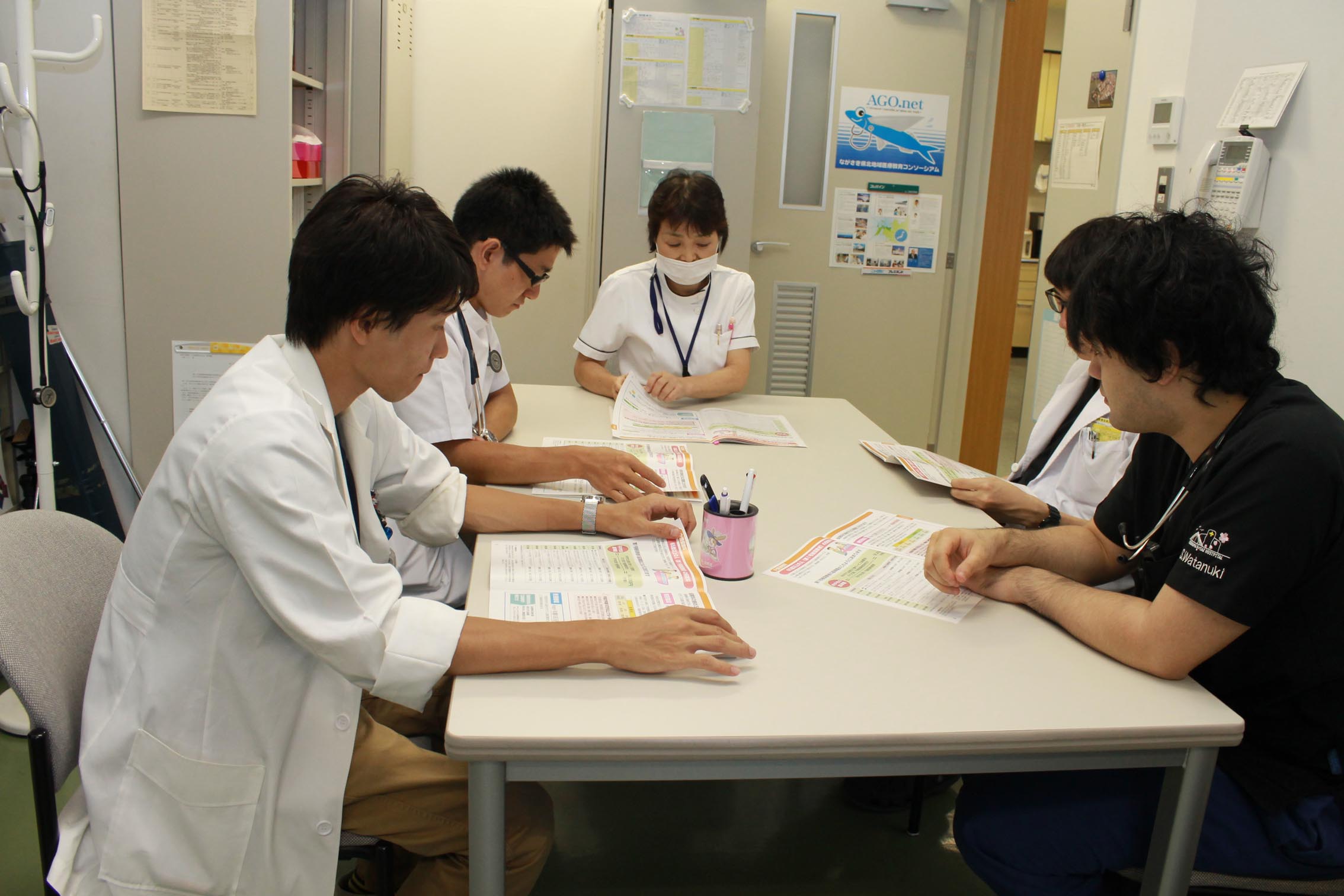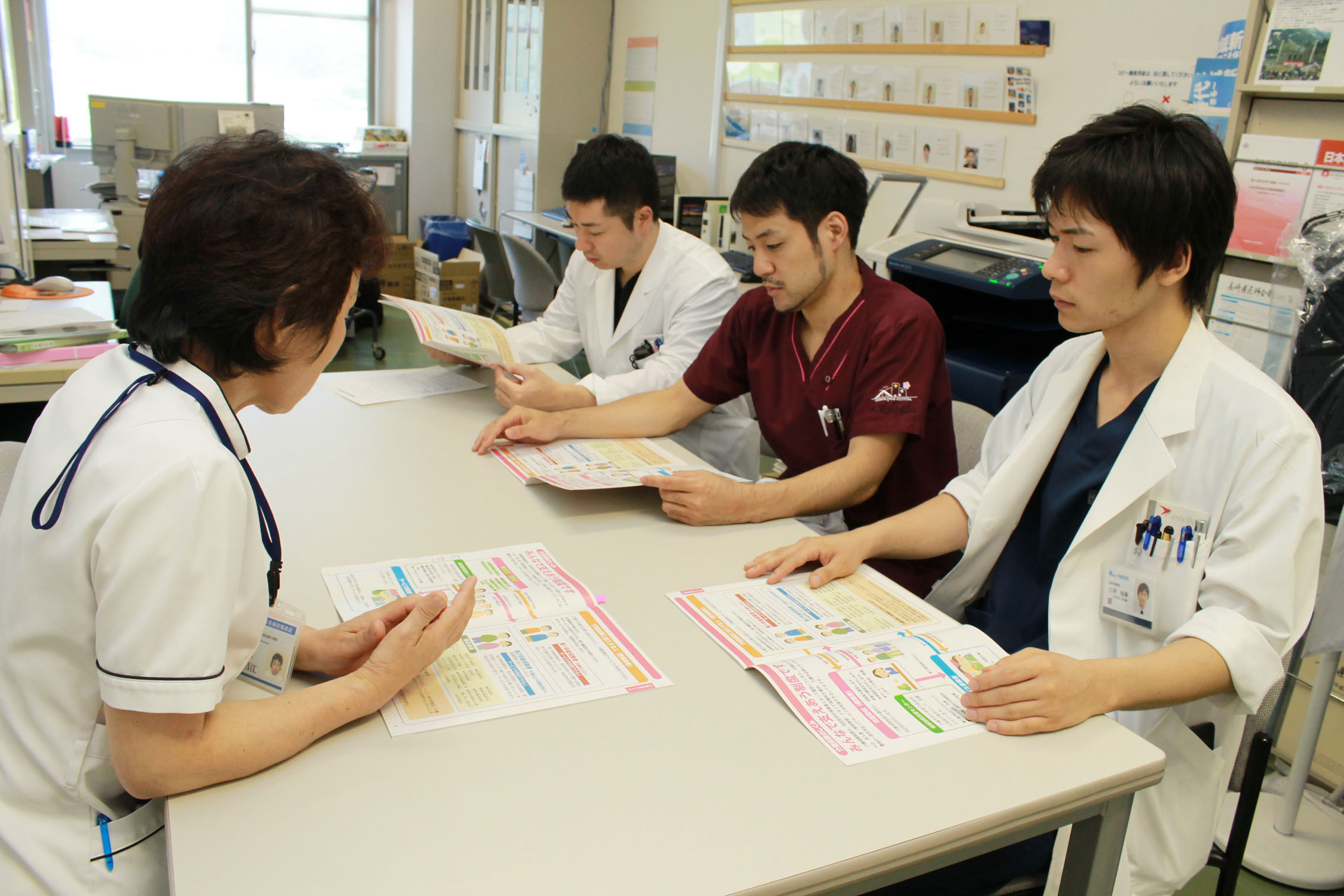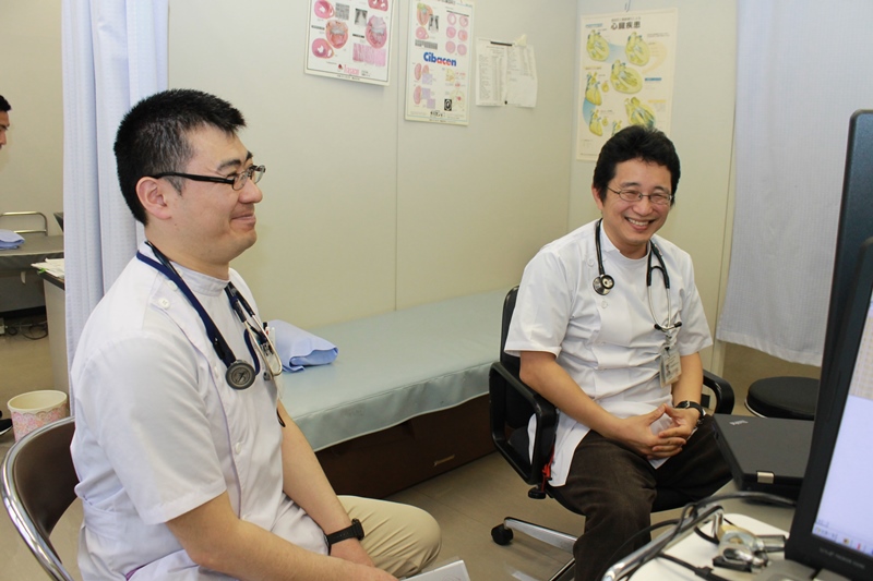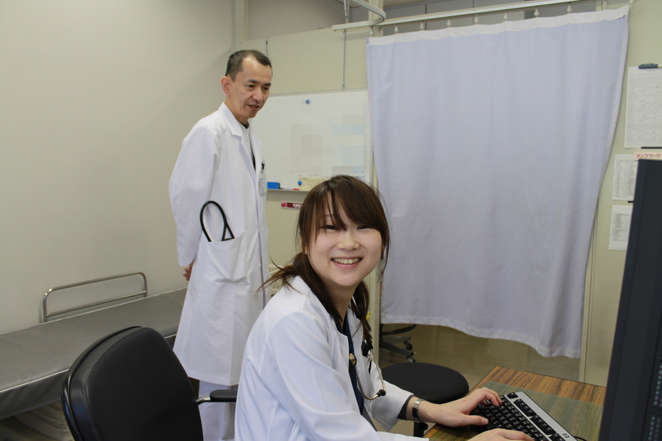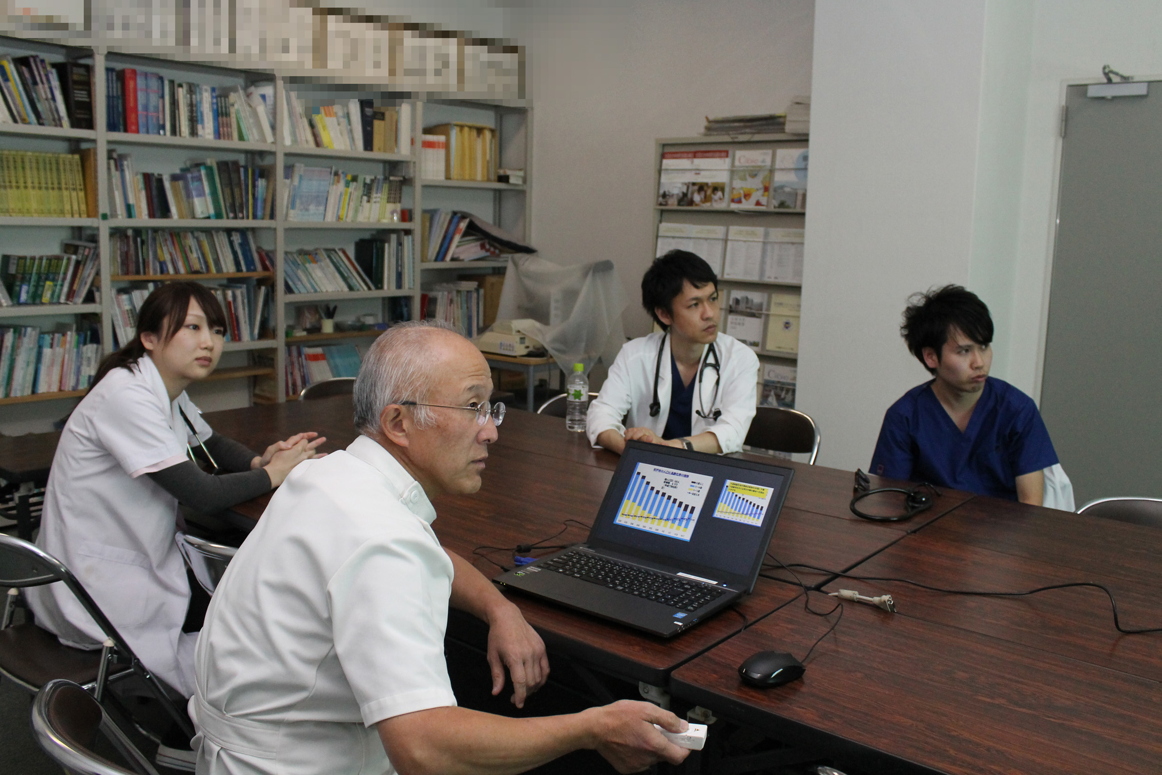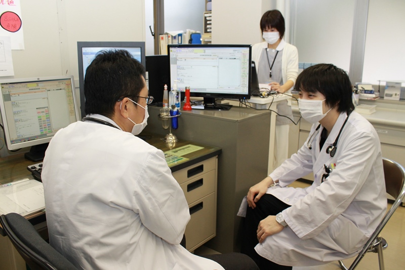 研修医の先生方は、毎朝、医局ミーティングの後に事業所健診に取り組みます。