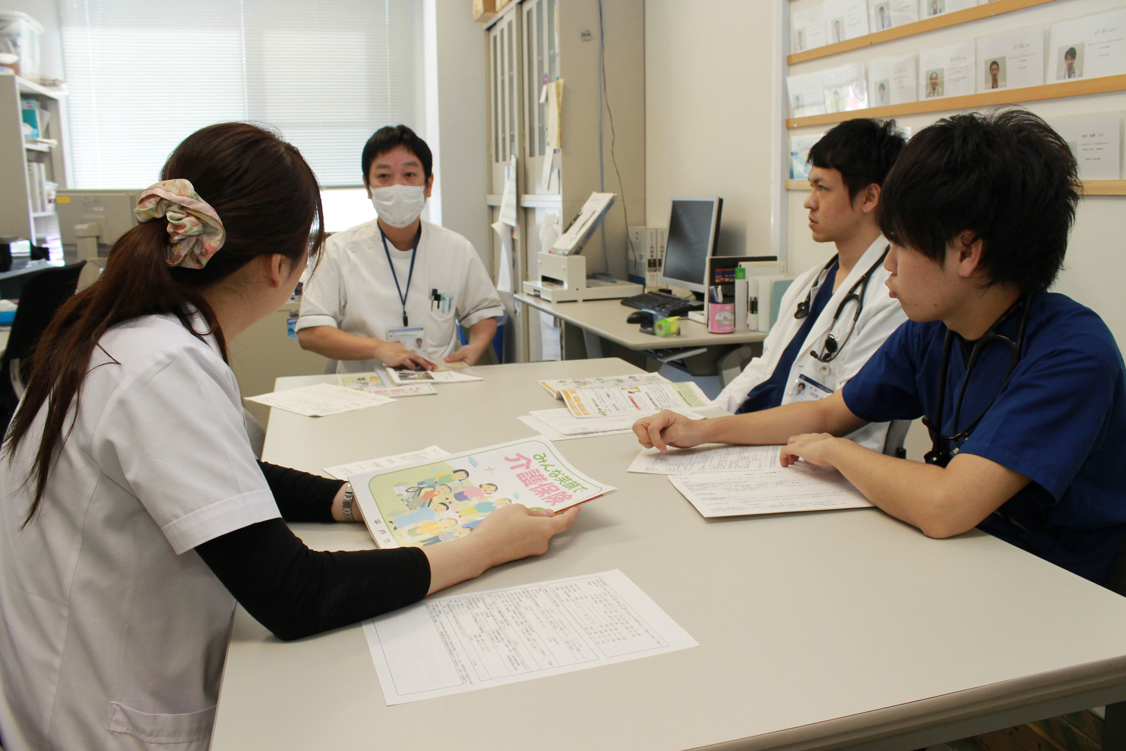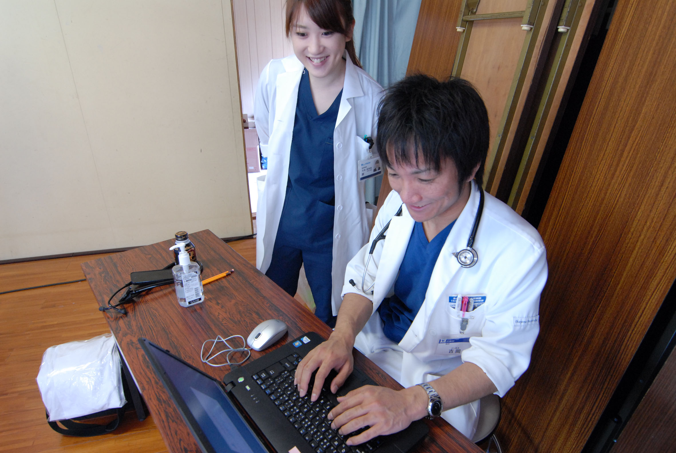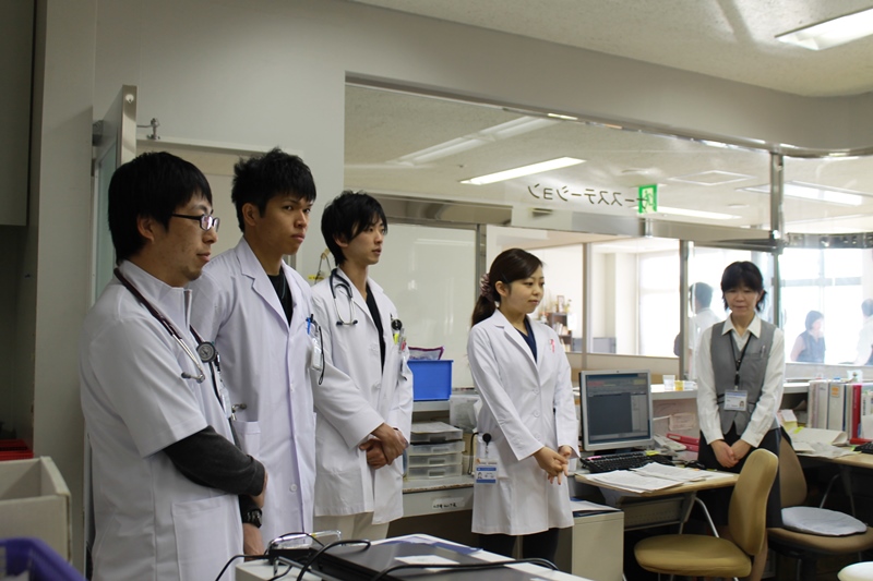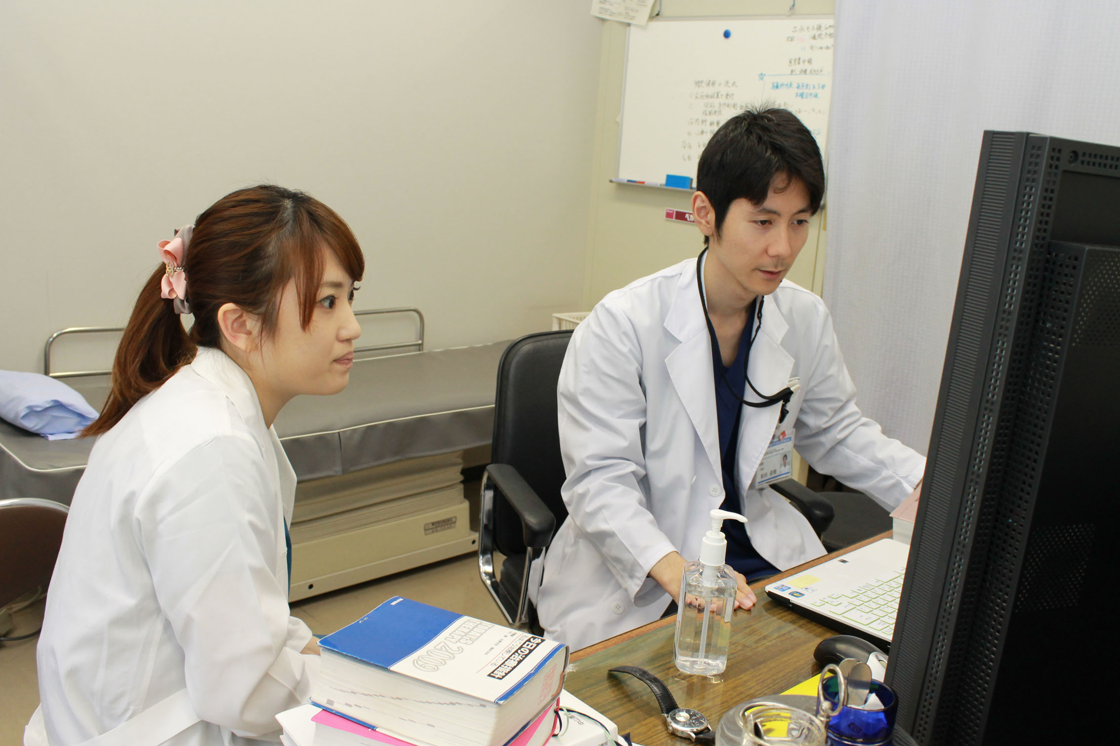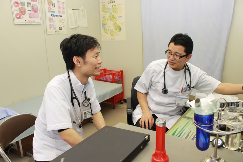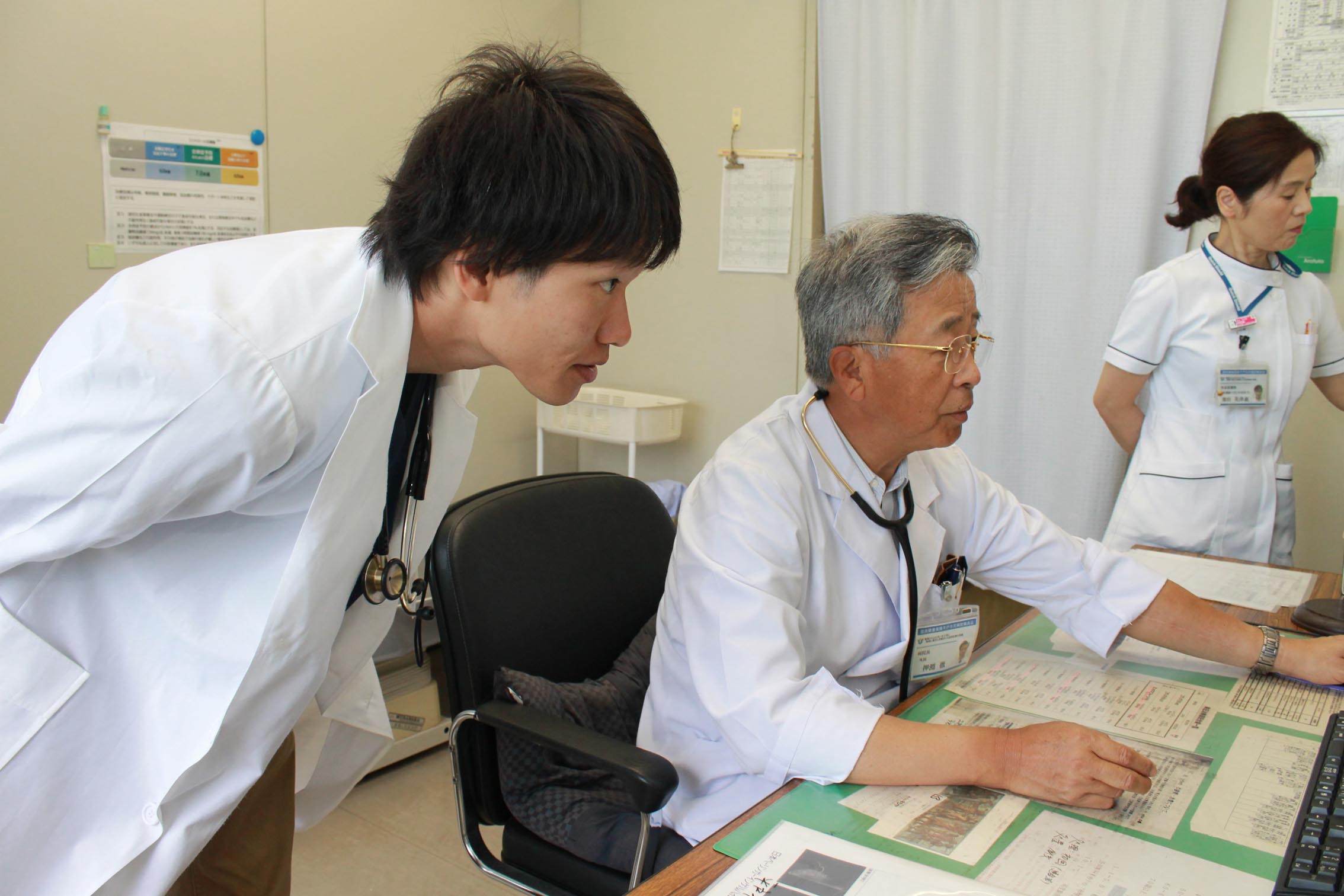 研修医の先生方は、毎朝、医局ミーティングの後に事業所健診に取り組みます。