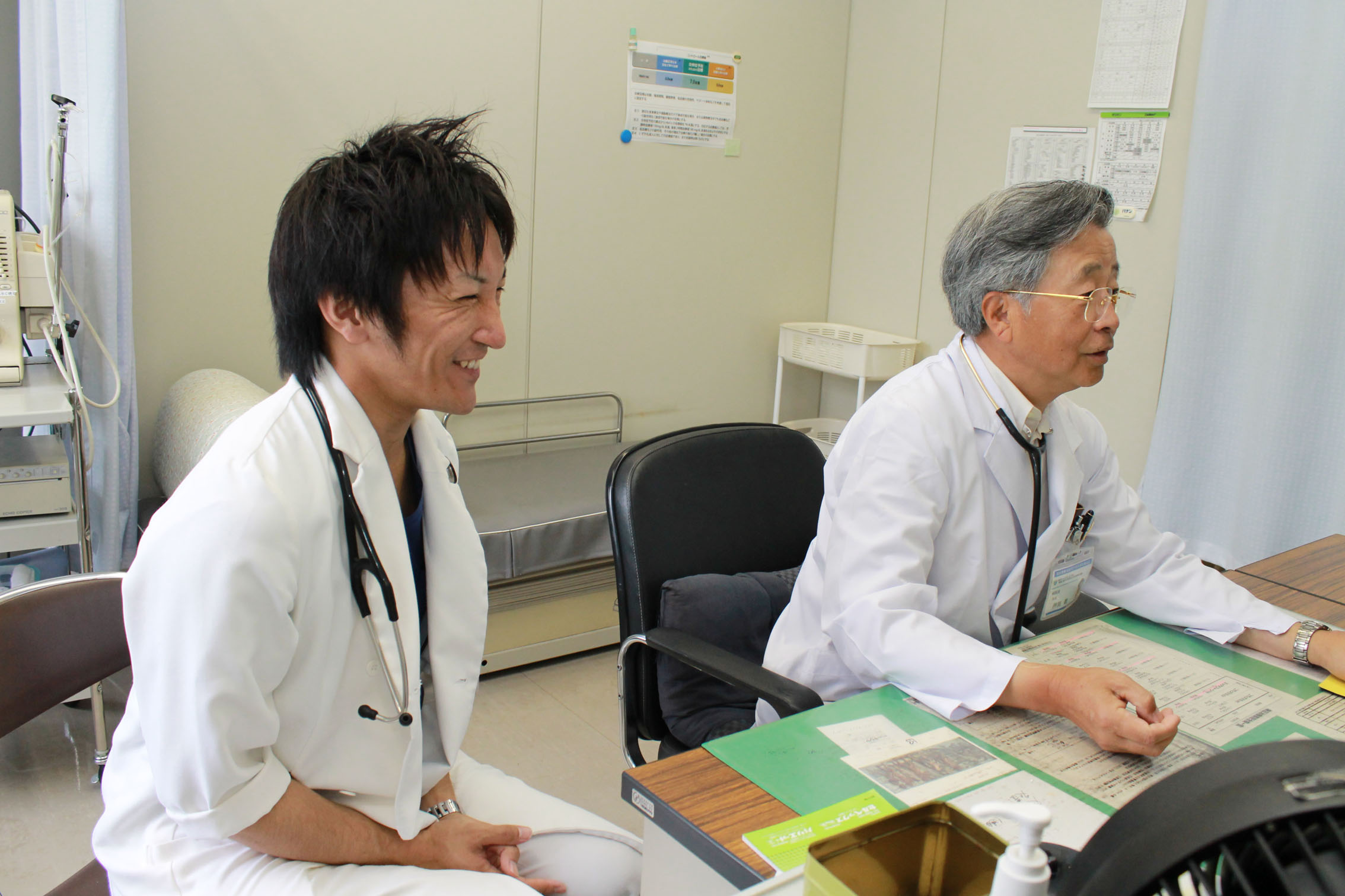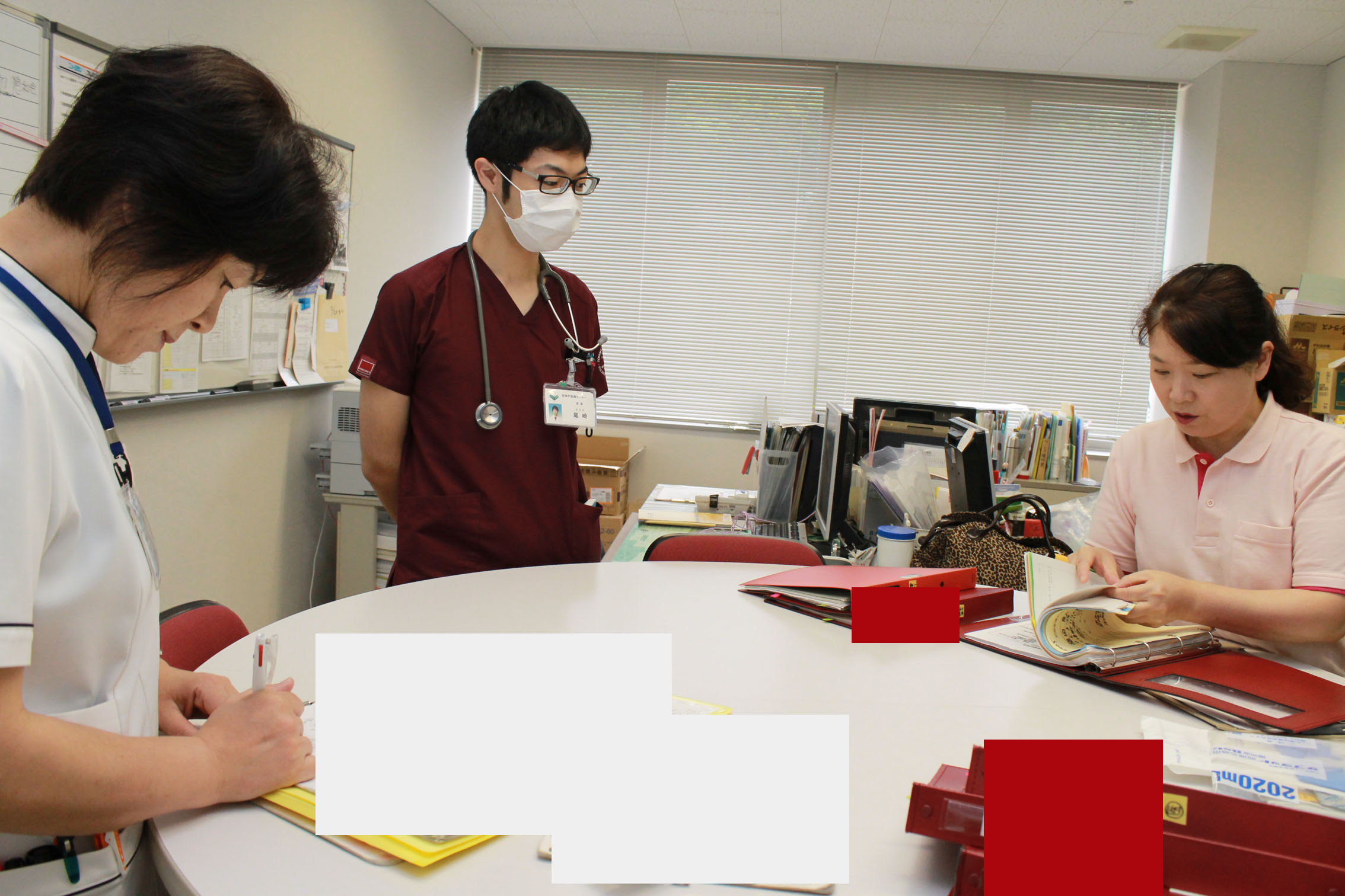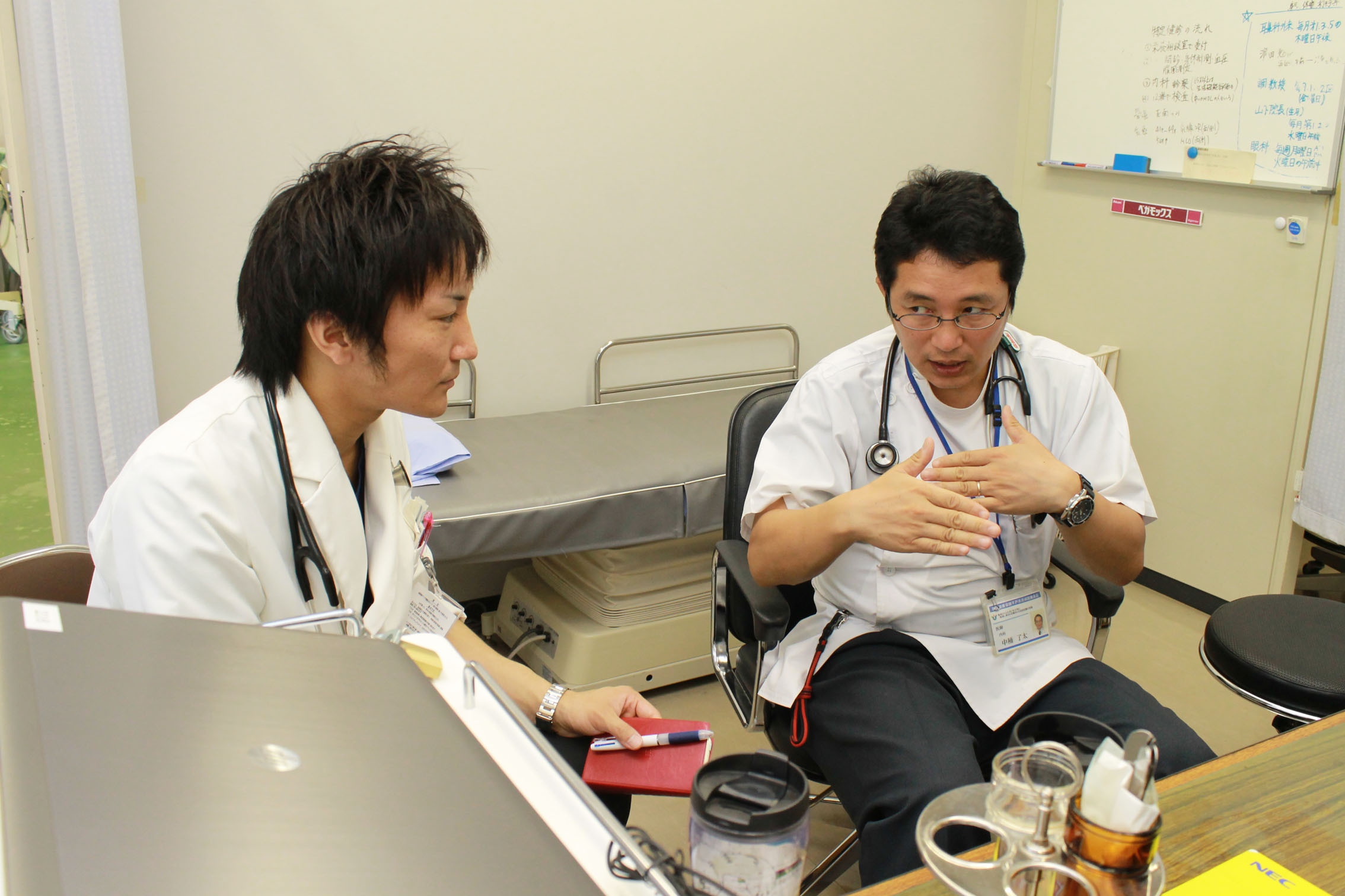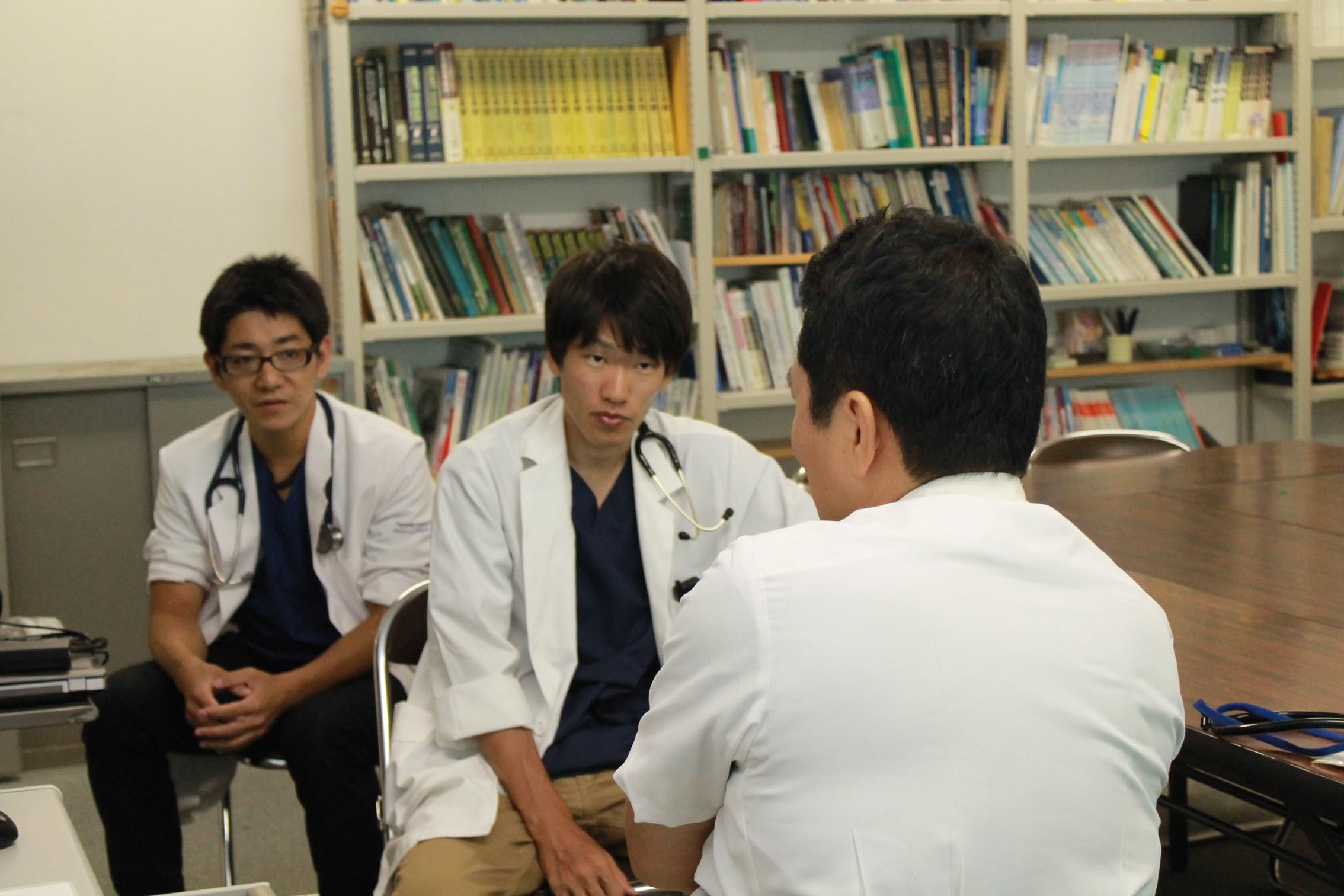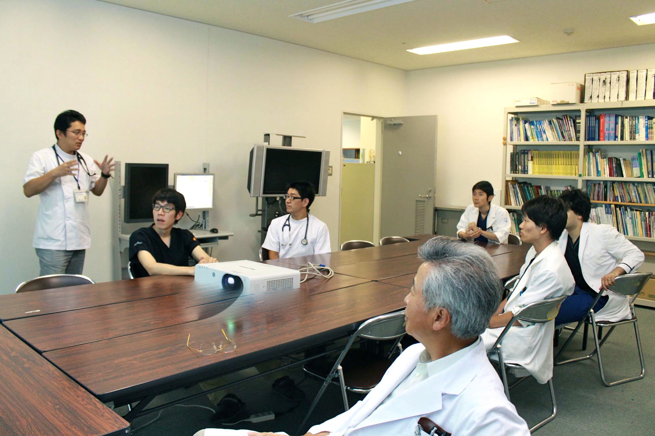 研修医の先生方は、毎朝、医局ミーティングの後に事業所健診に取り組みます。