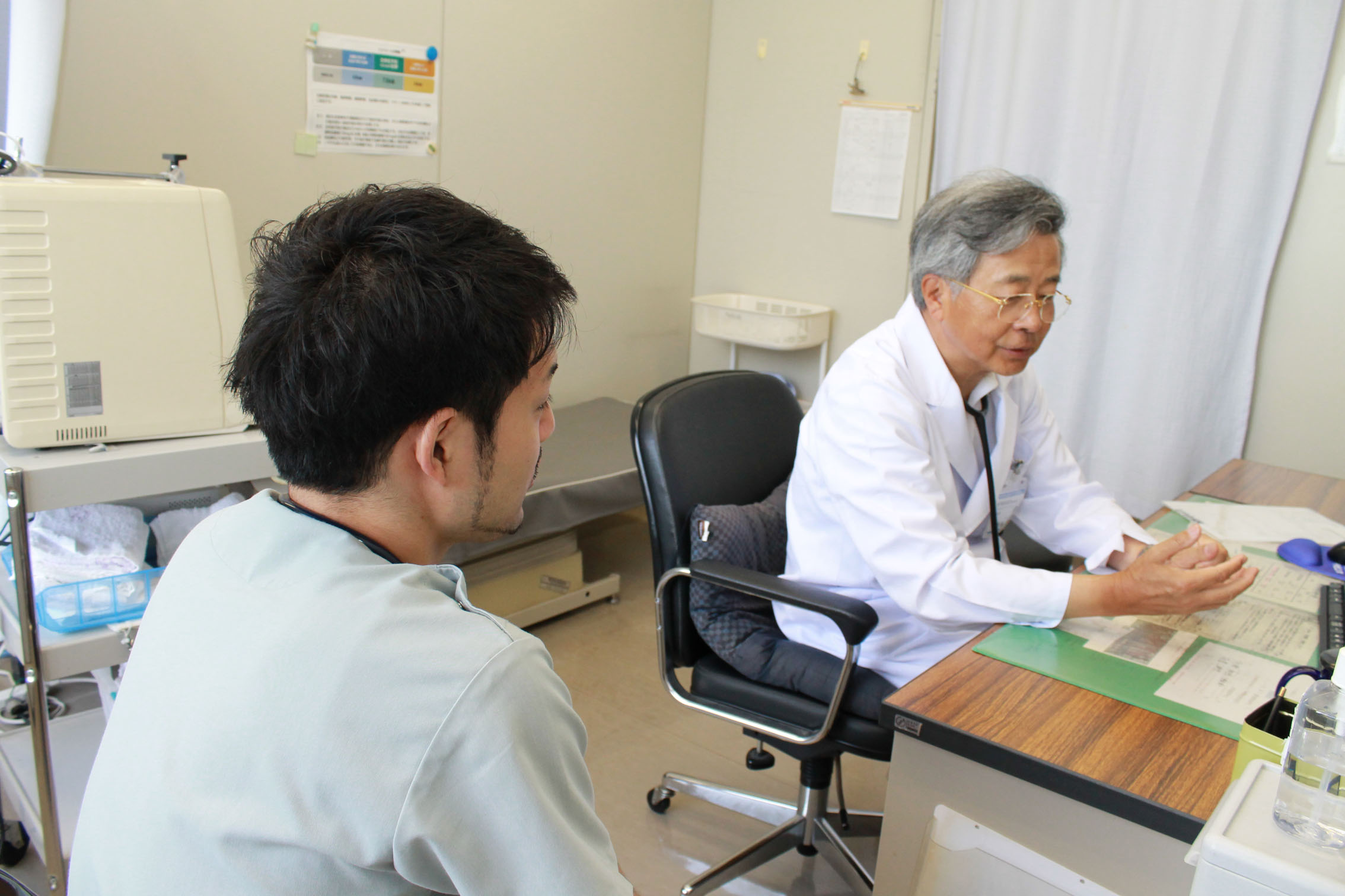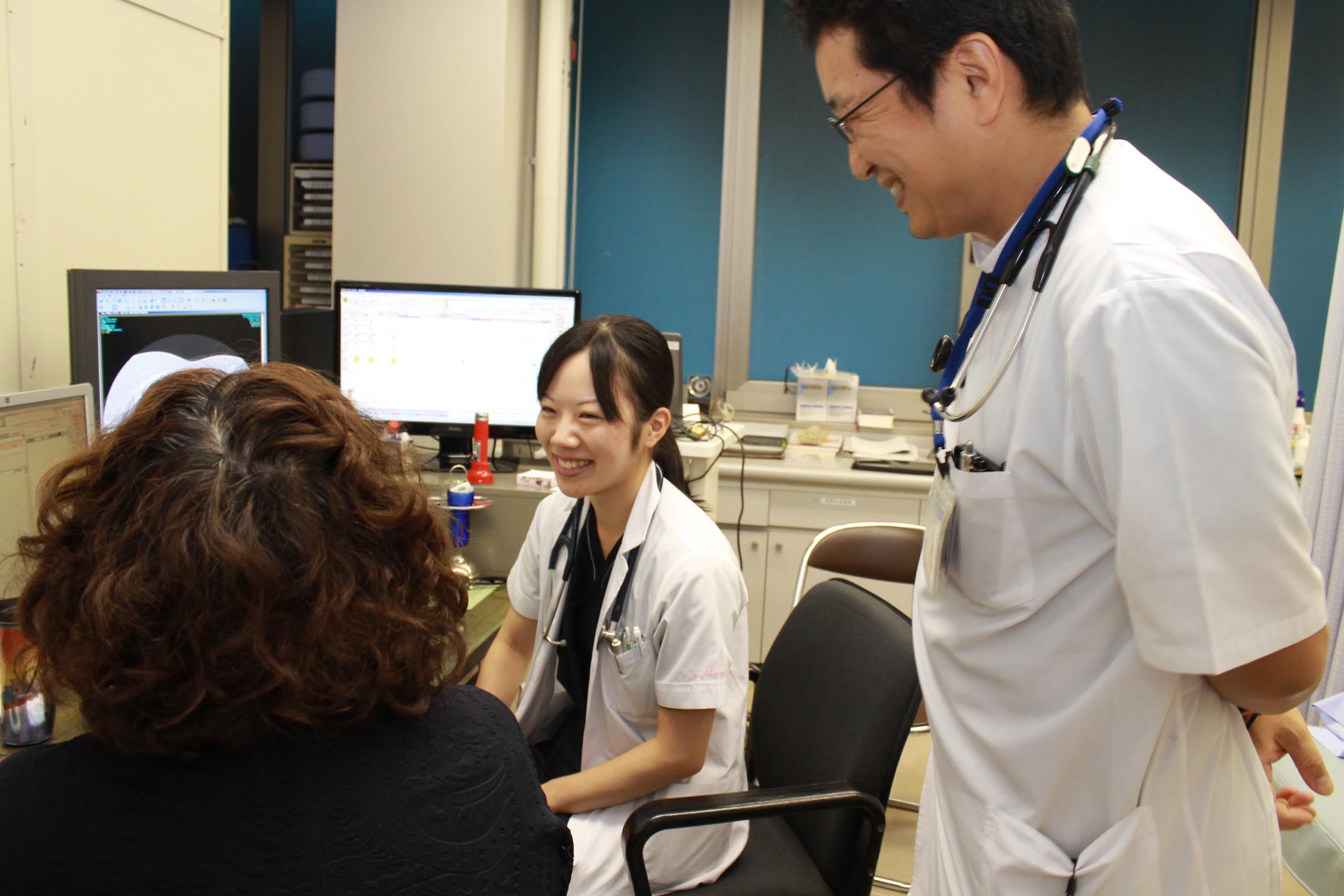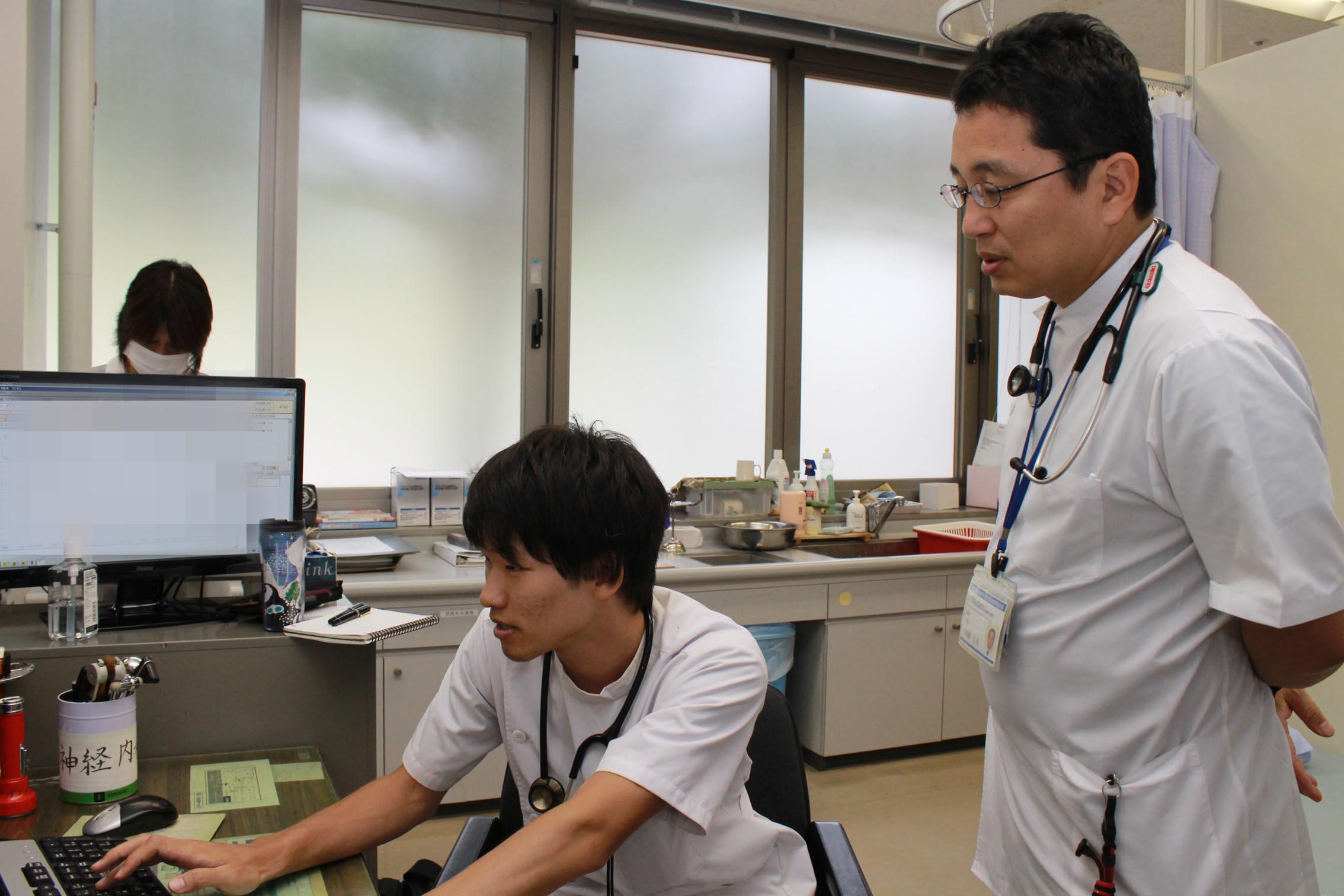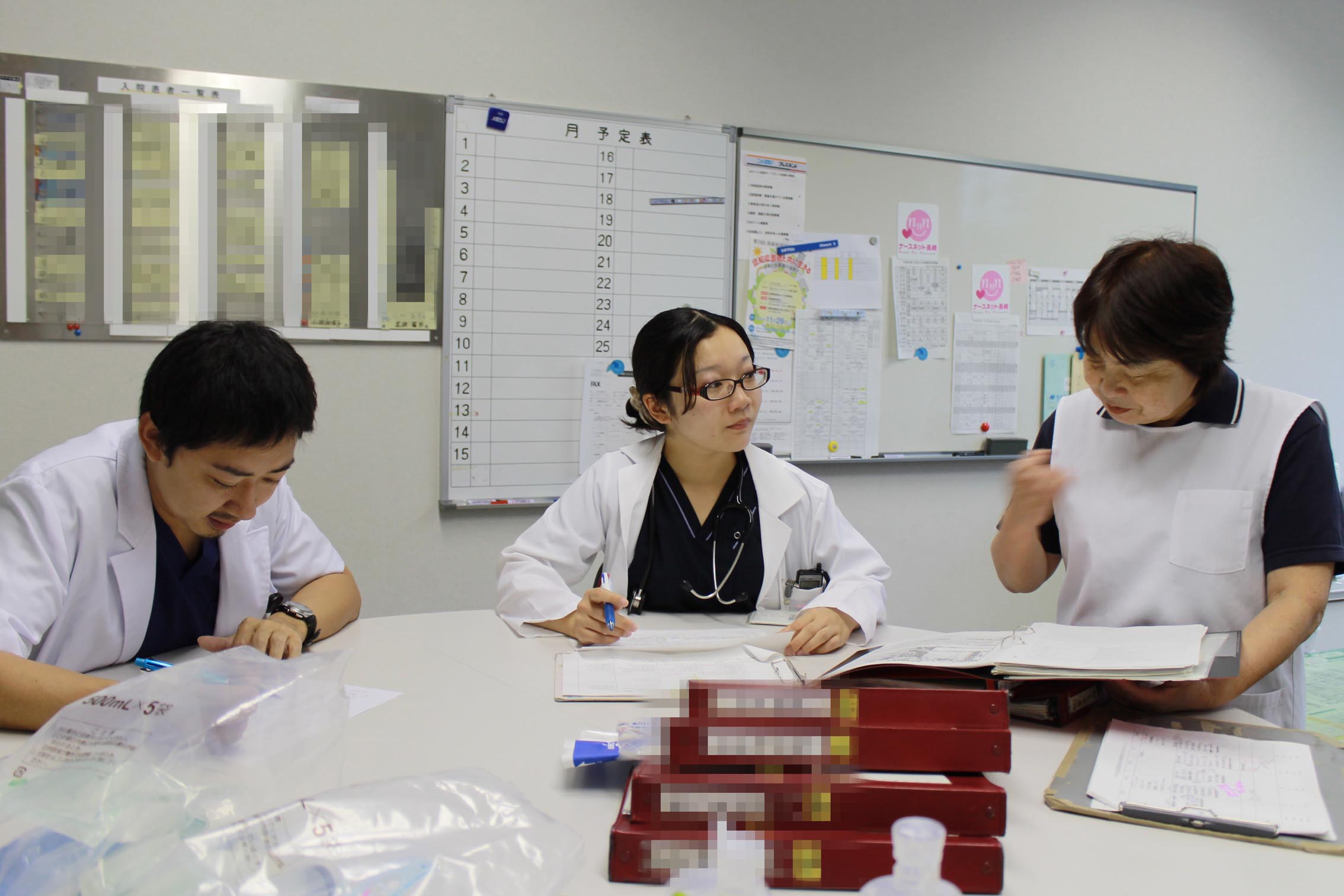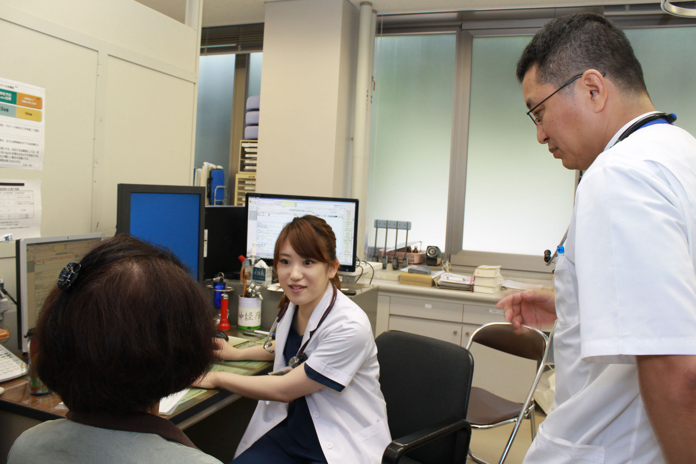 研修医の先生方は、毎朝、医局ミーティングの後に事業所健診に取り組みます。