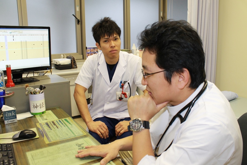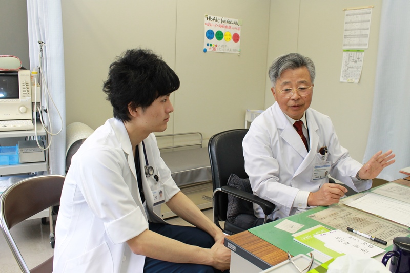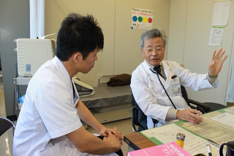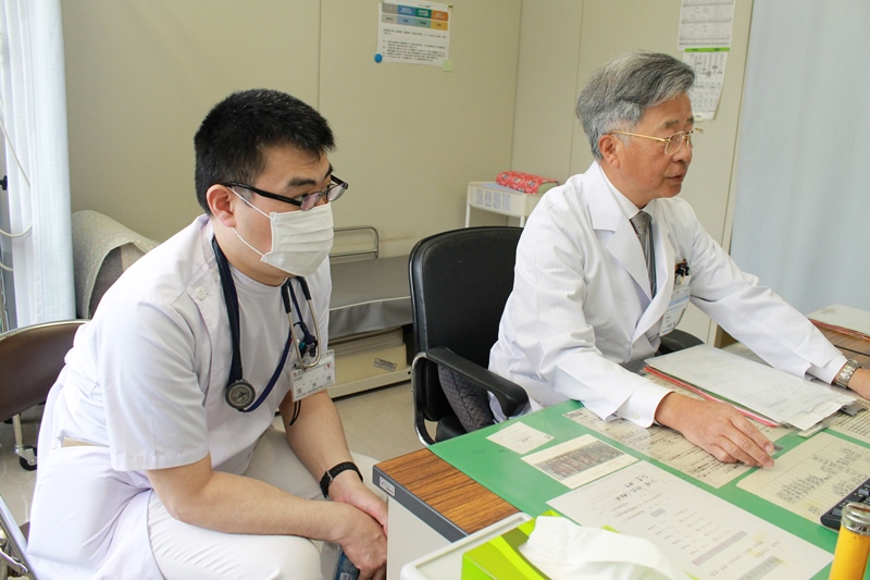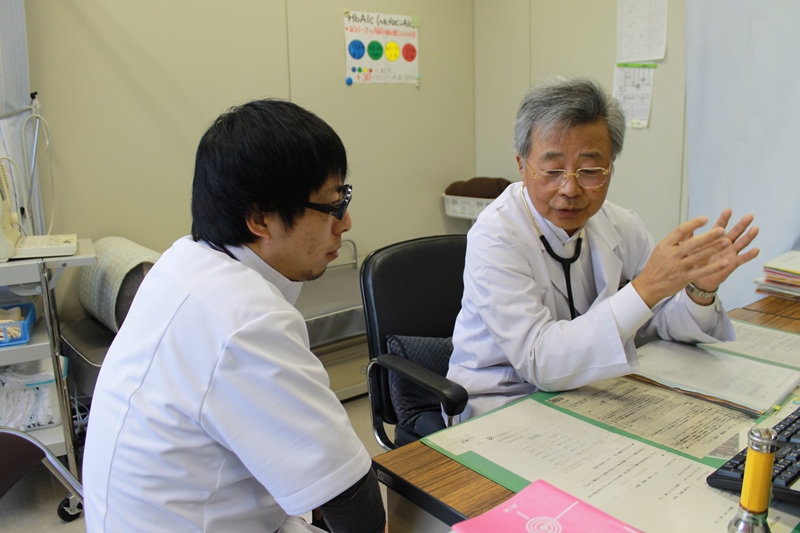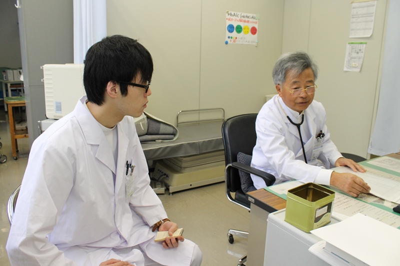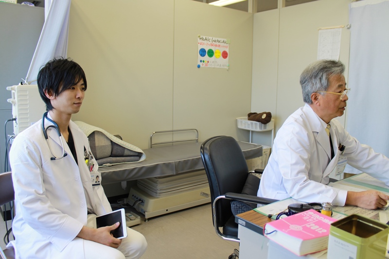 午前の研修、菅野先生は押淵院長との外来です。押淵院長のご指導を一生懸命、メモにとられていました。