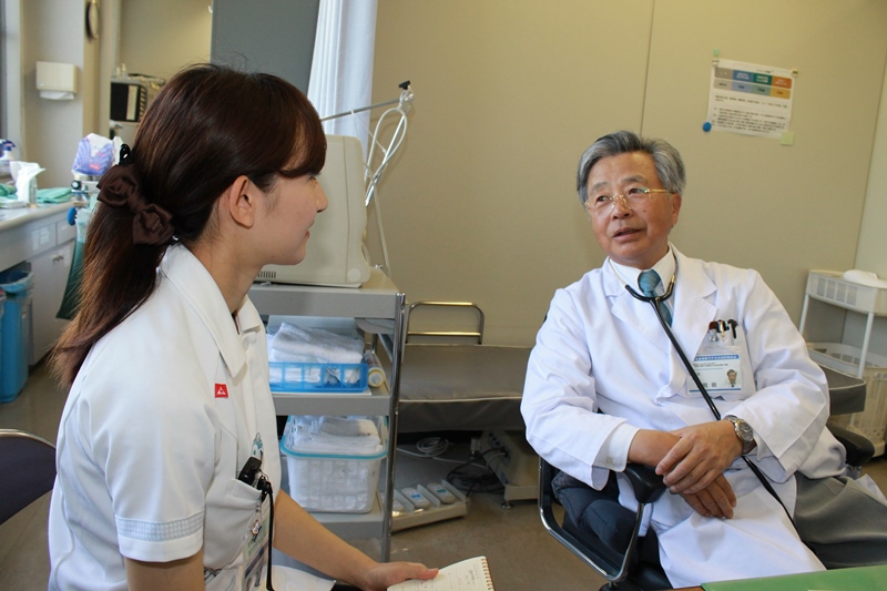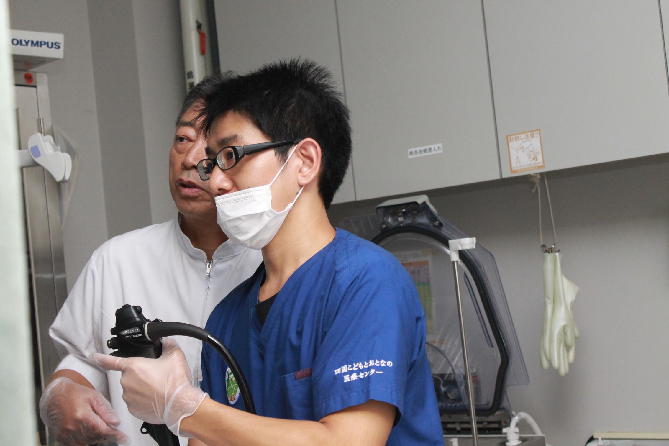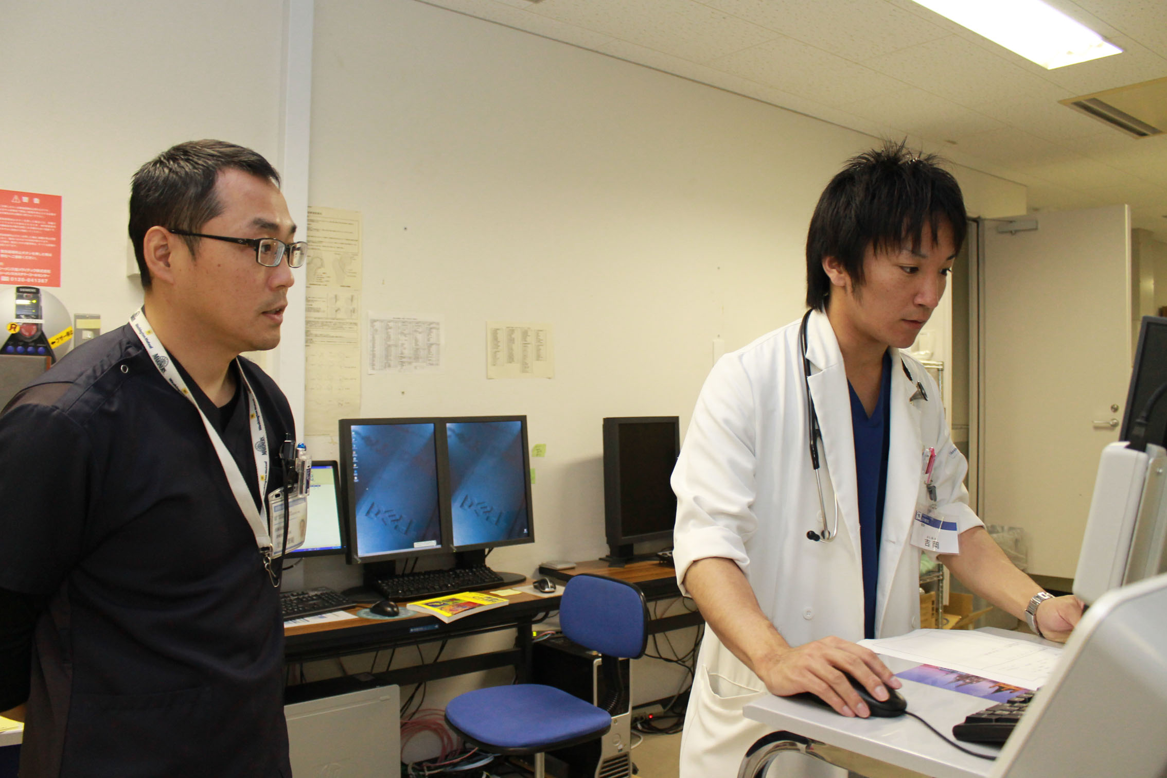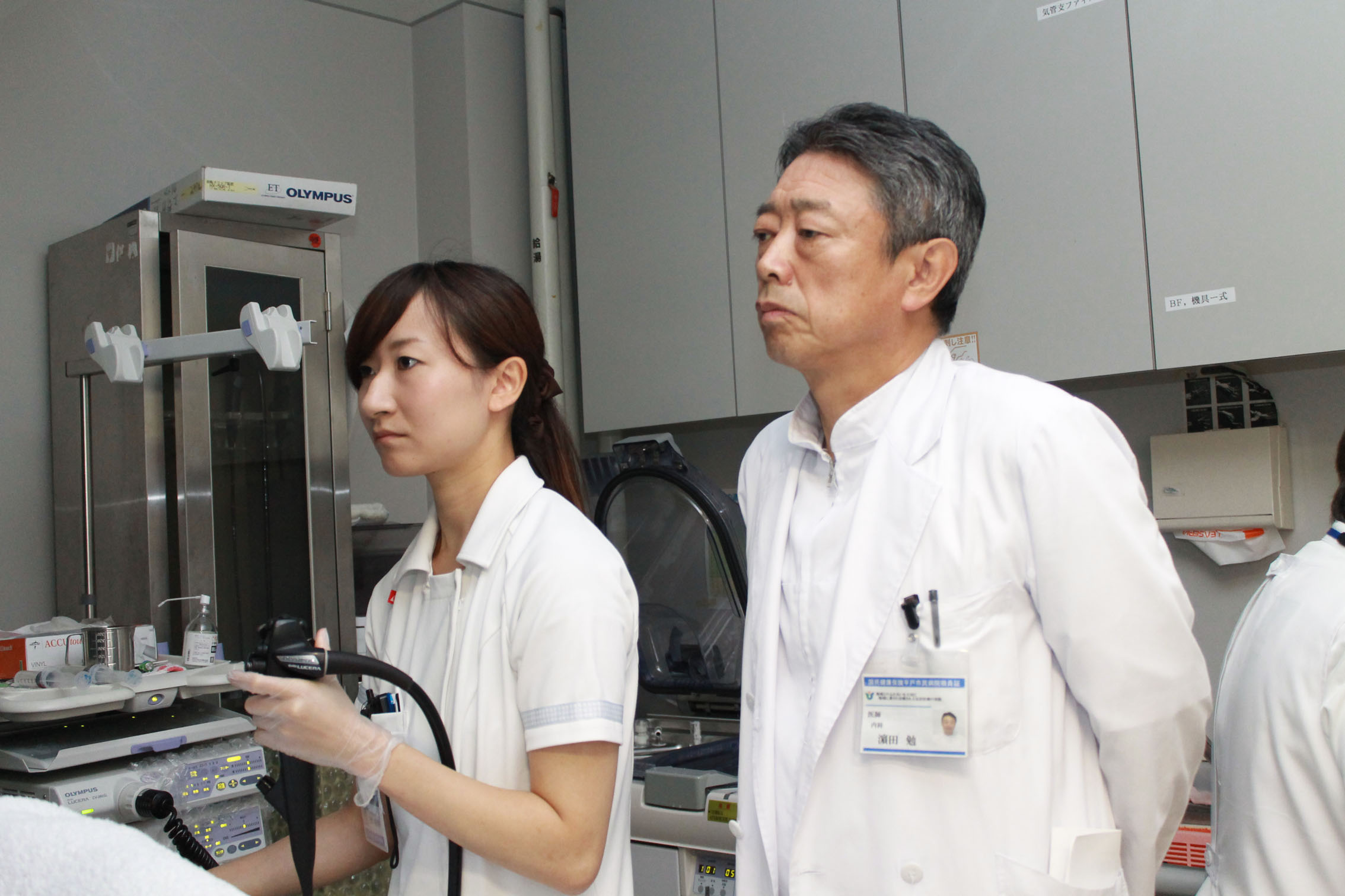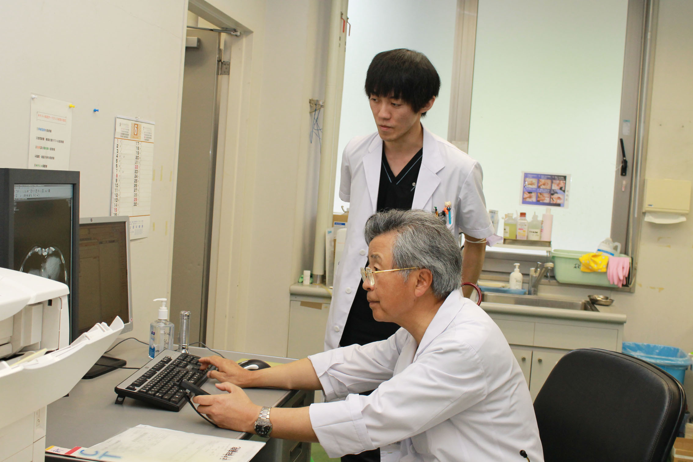 濱田先生指導による赤羽先生の内視鏡検査実習。