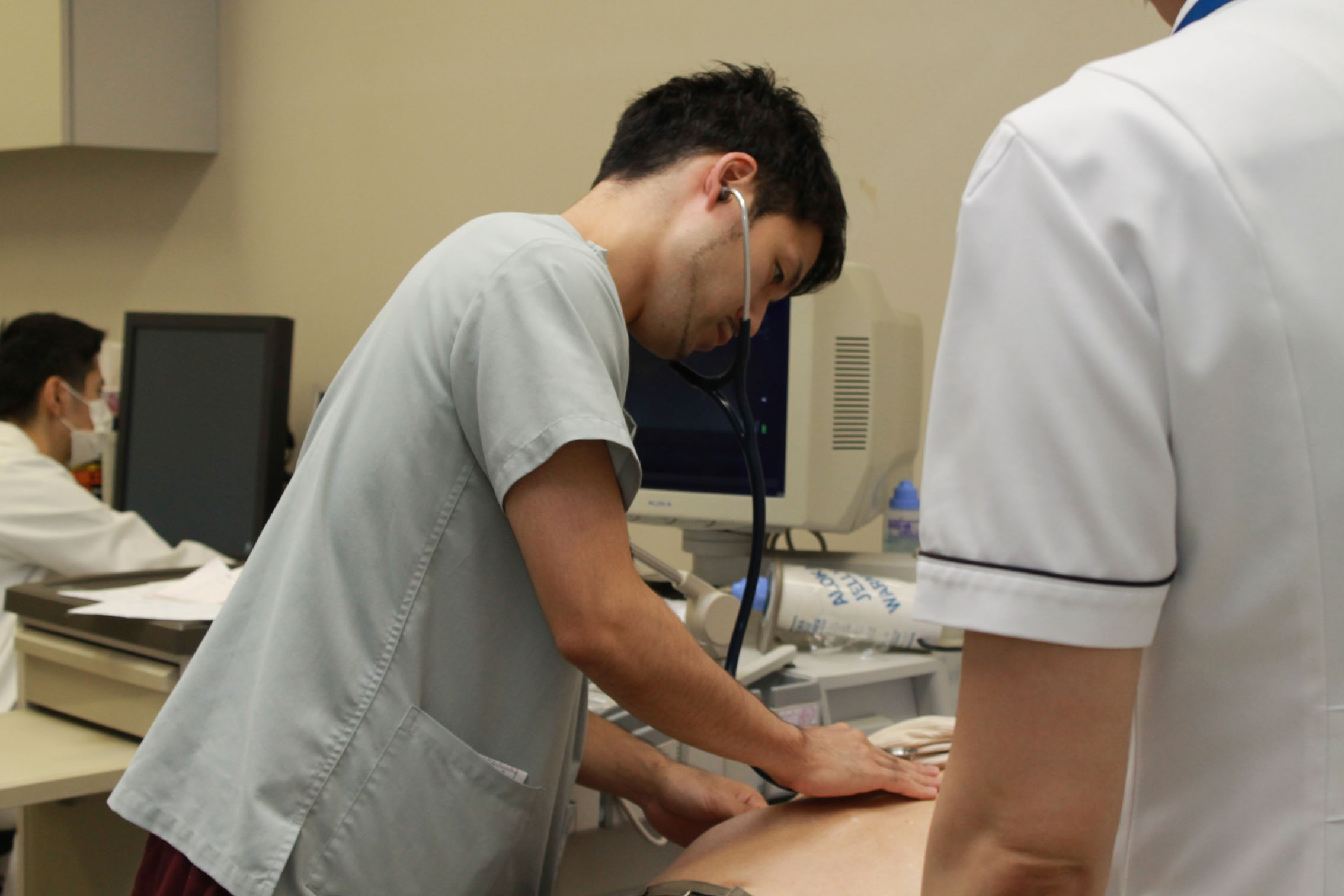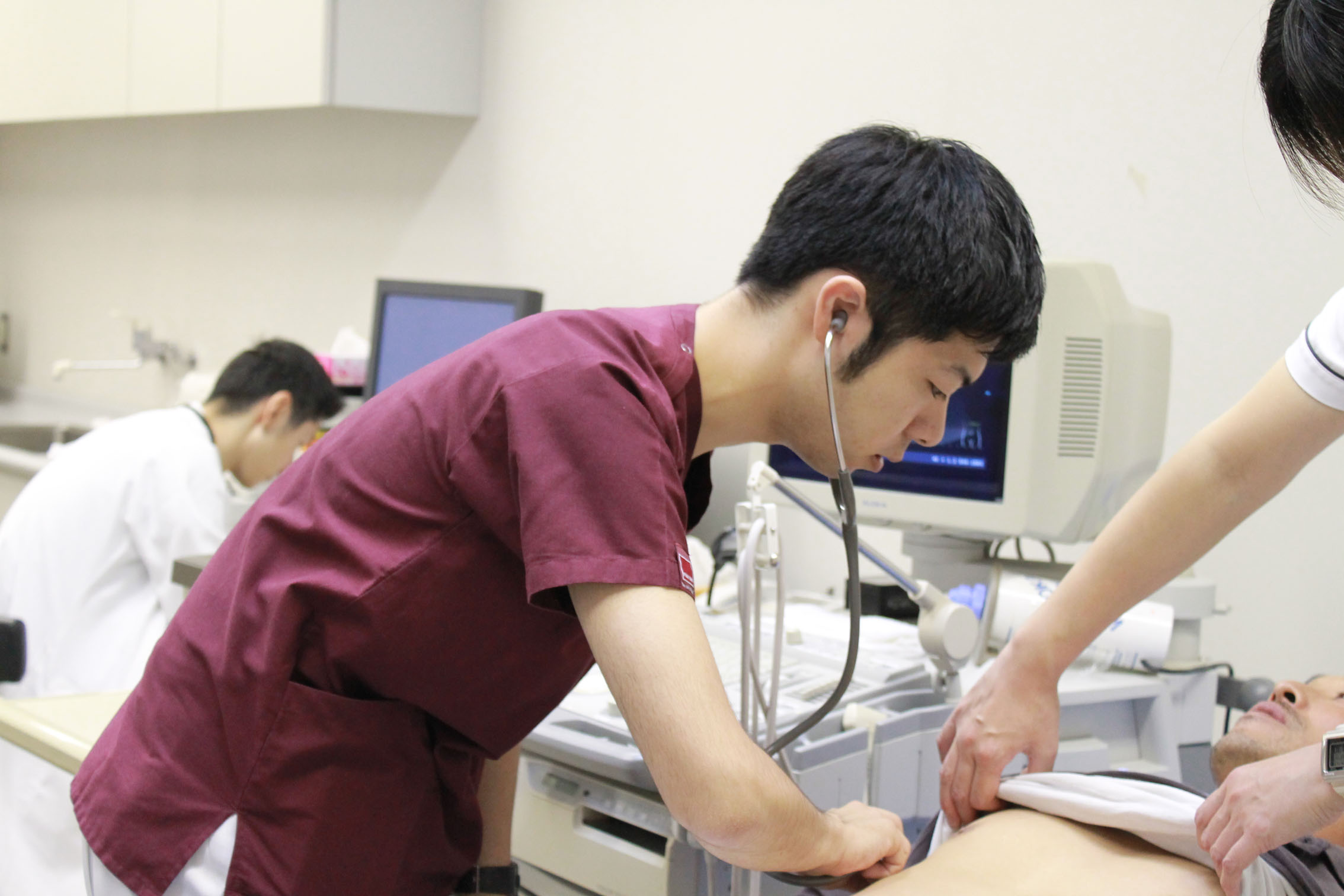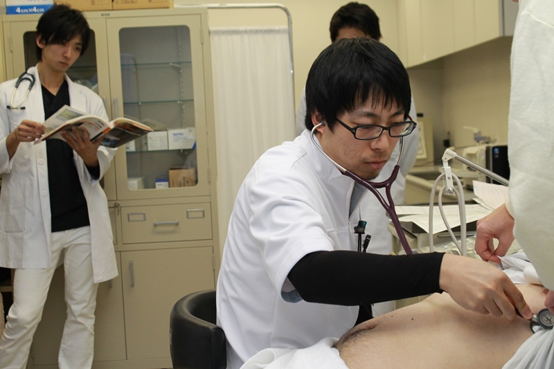 先生方がオーダーした検査の内容を実際に行ってもらうことと、診療所のよってはドクターがレントゲンを撮っているので、1コマ腹部と胸部の実習があります。