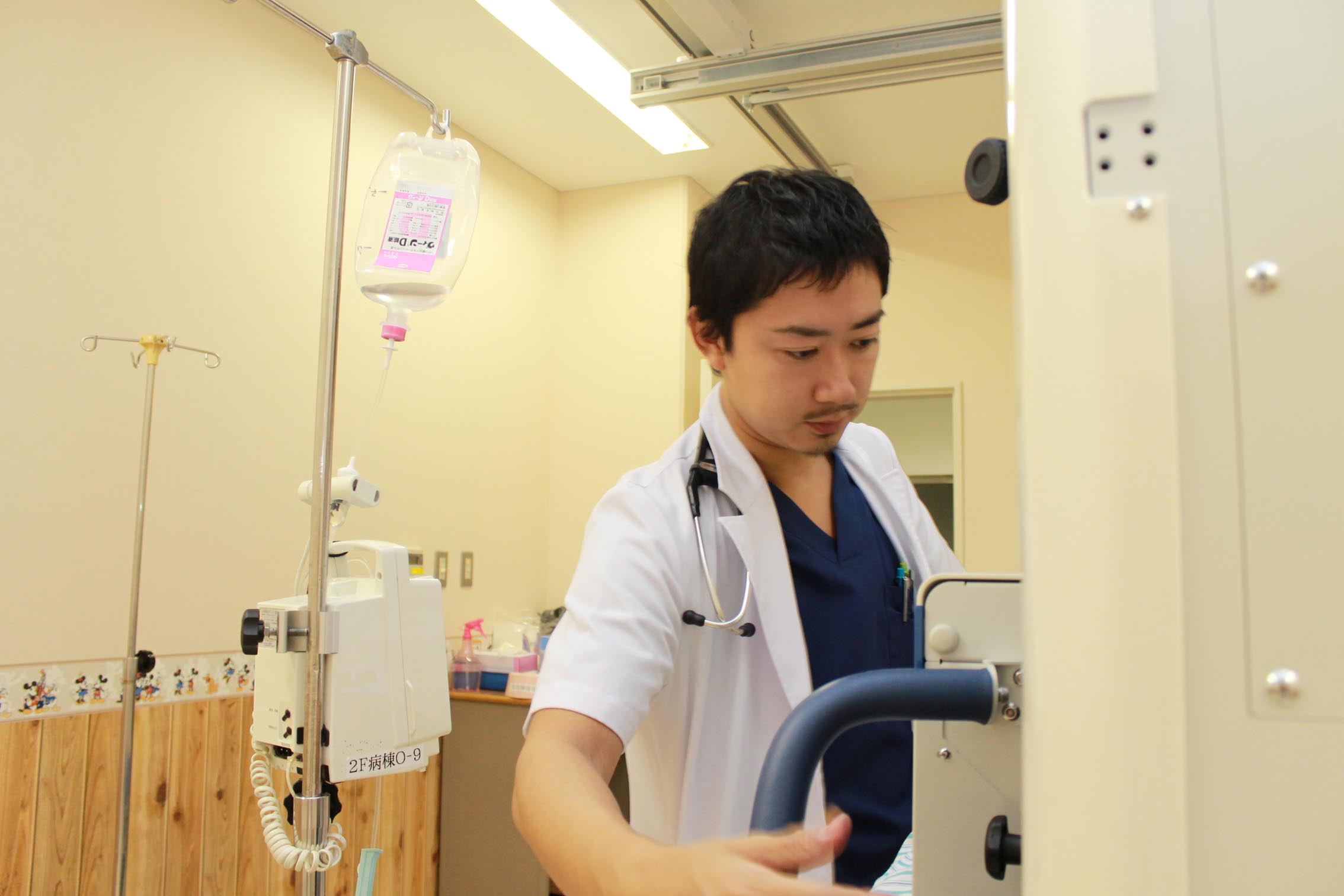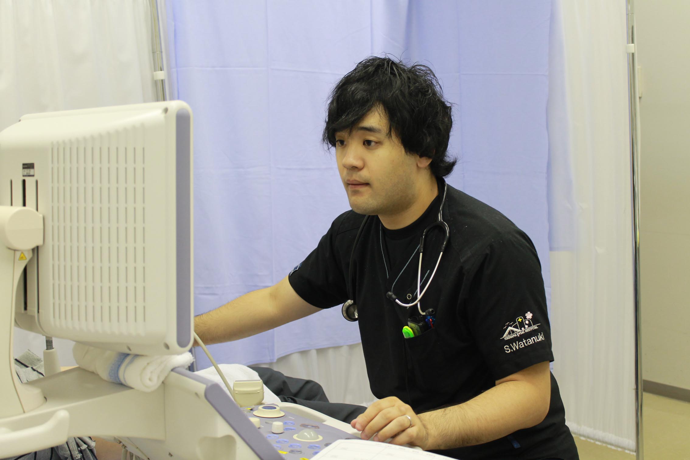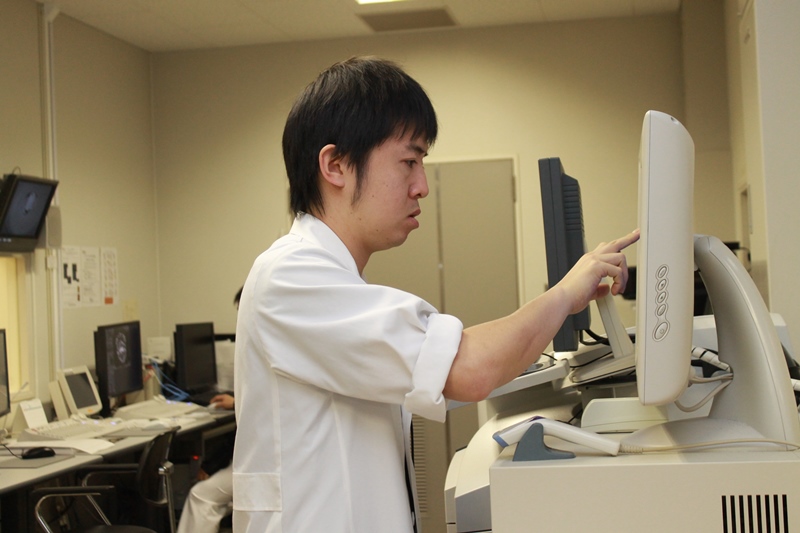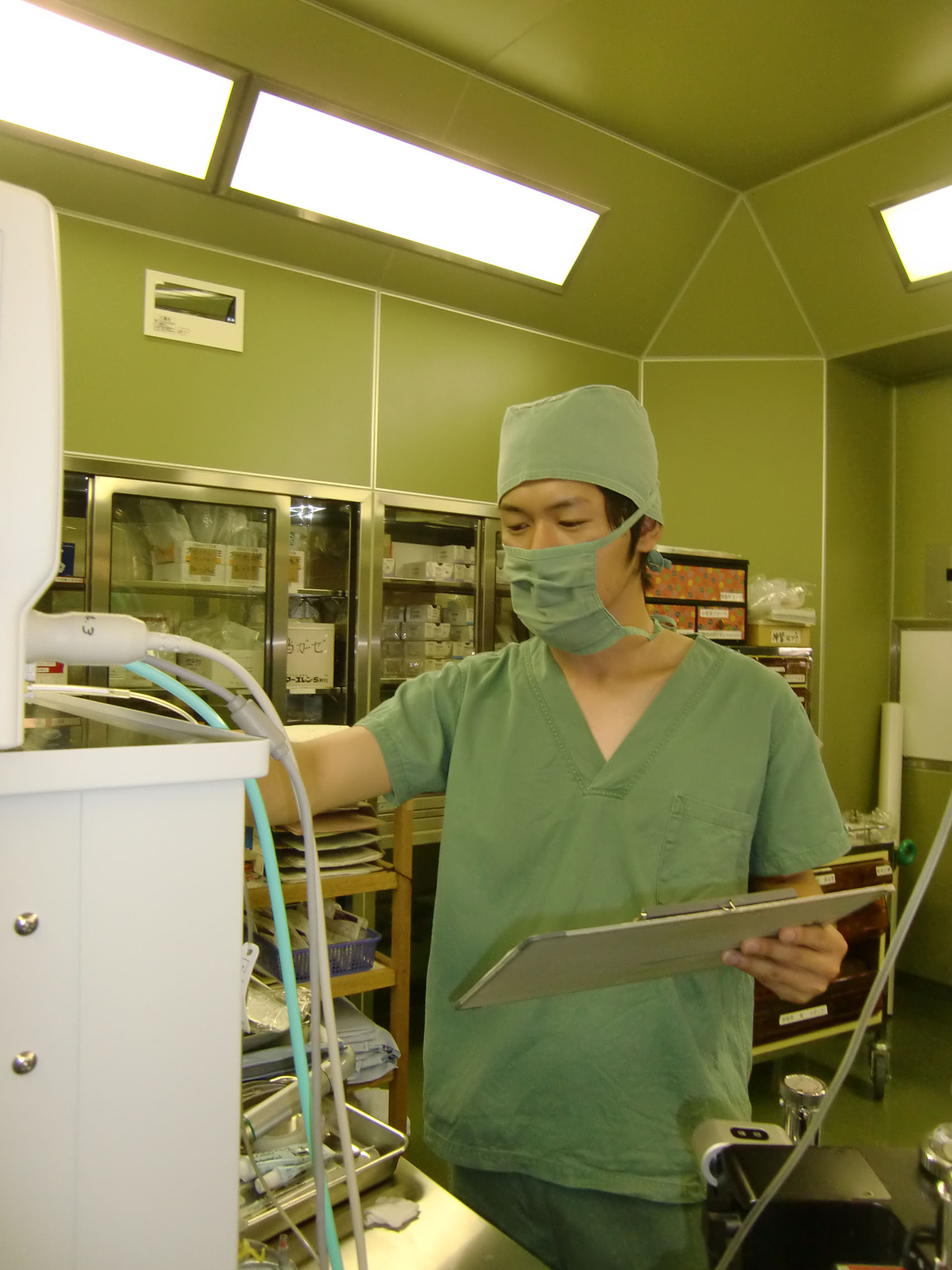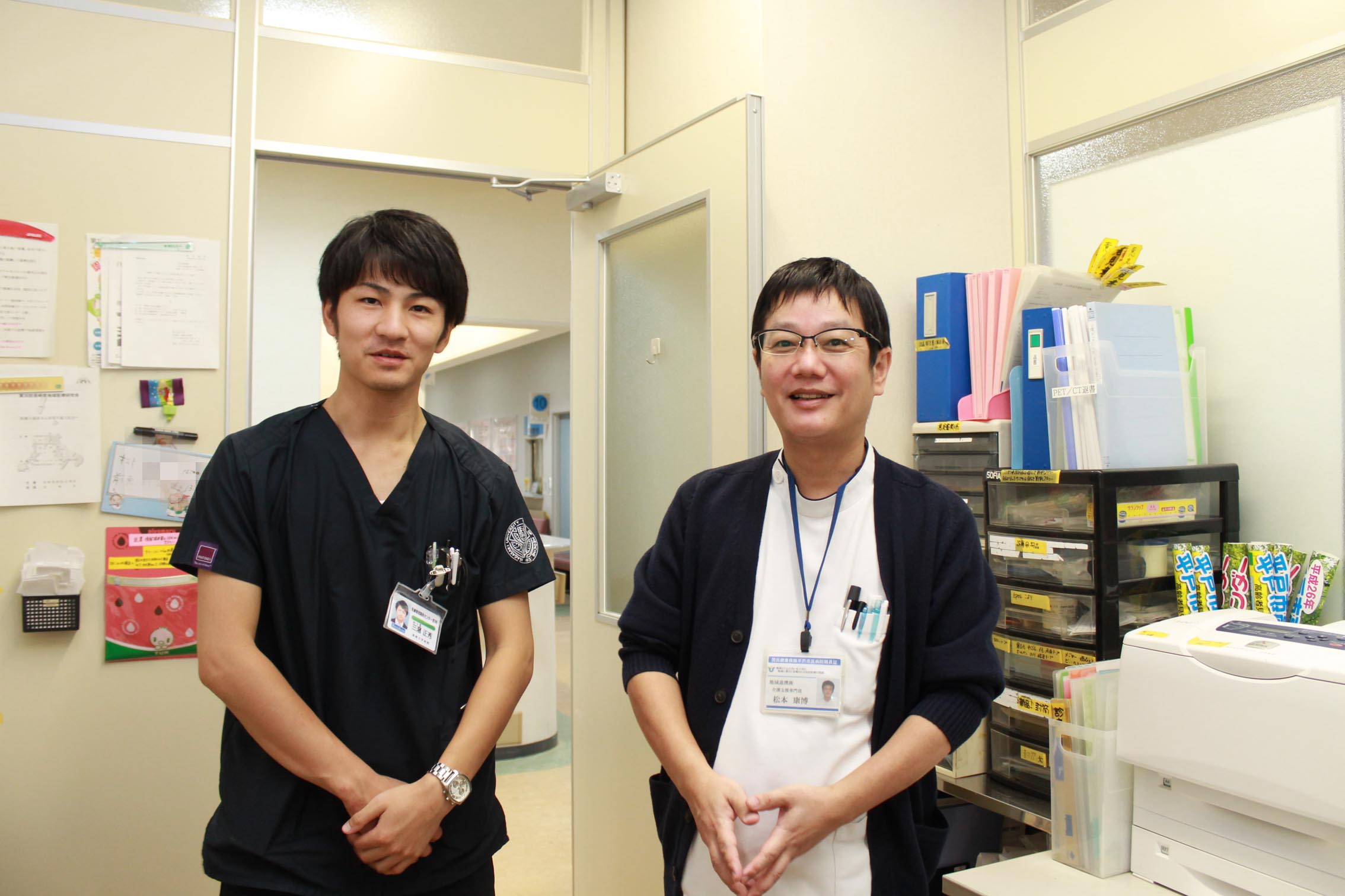 明石先生は、押淵院長との外科外来、赤羽先生は放射線科実習の様子です。