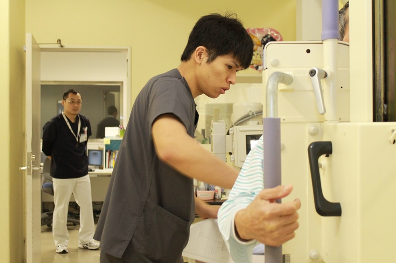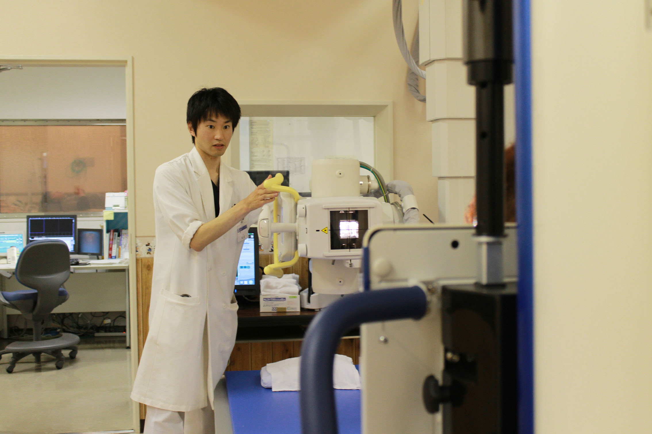 明石先生は、レントゲン撮影の中で最低限度できるようにとの思いで取り組みました。