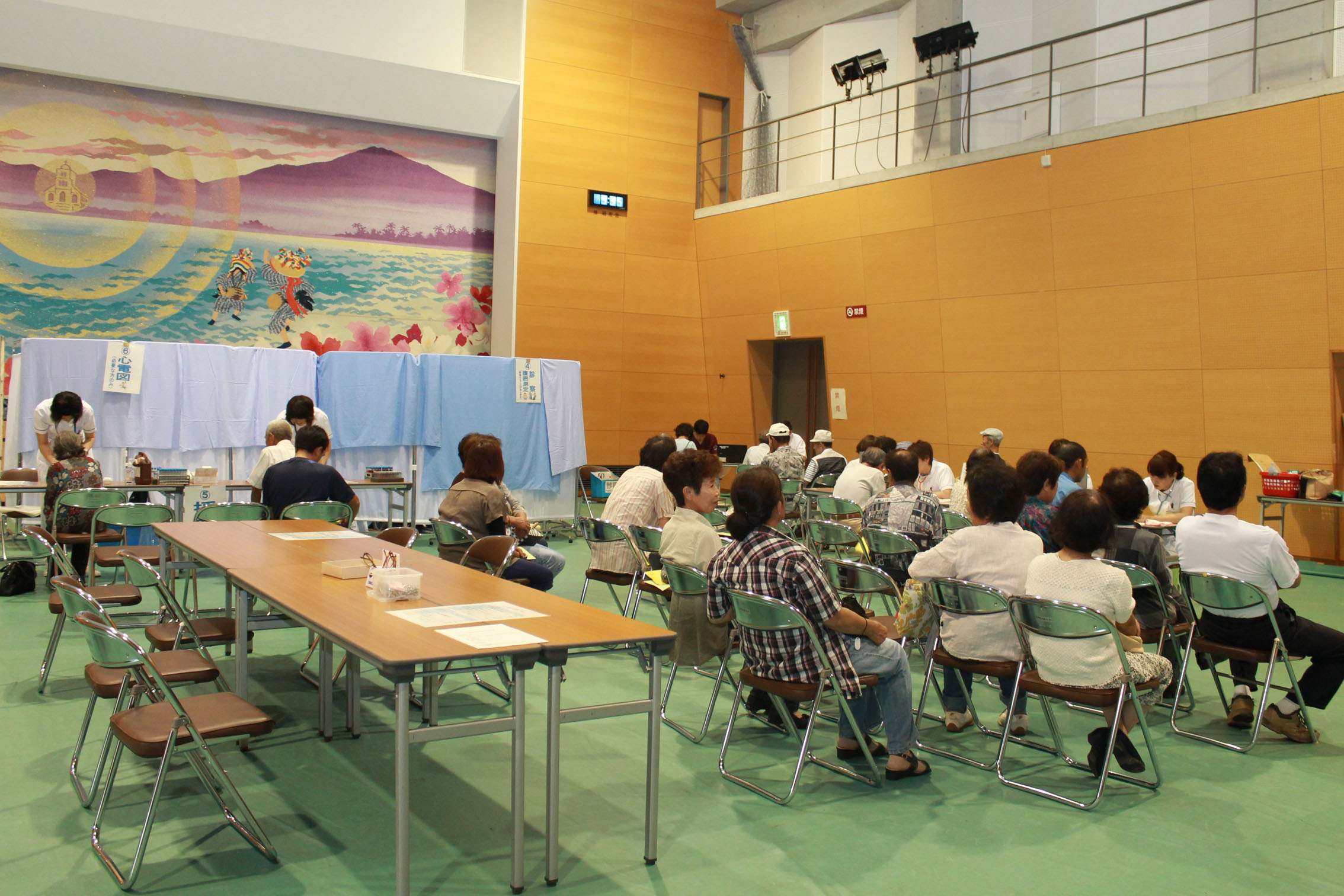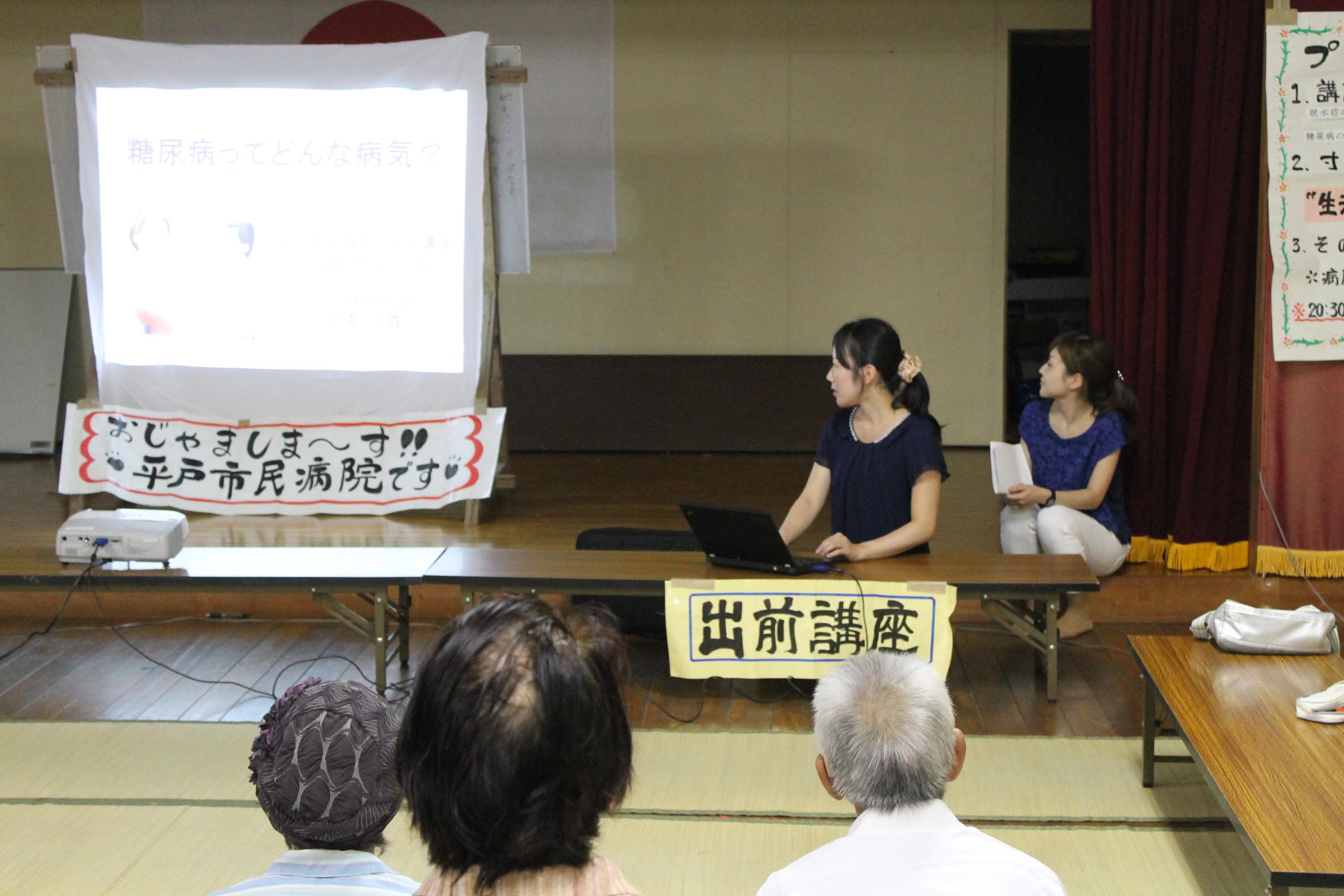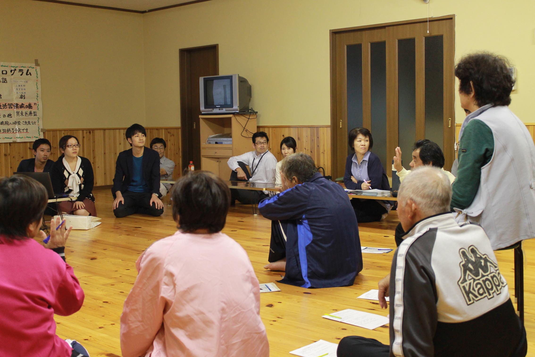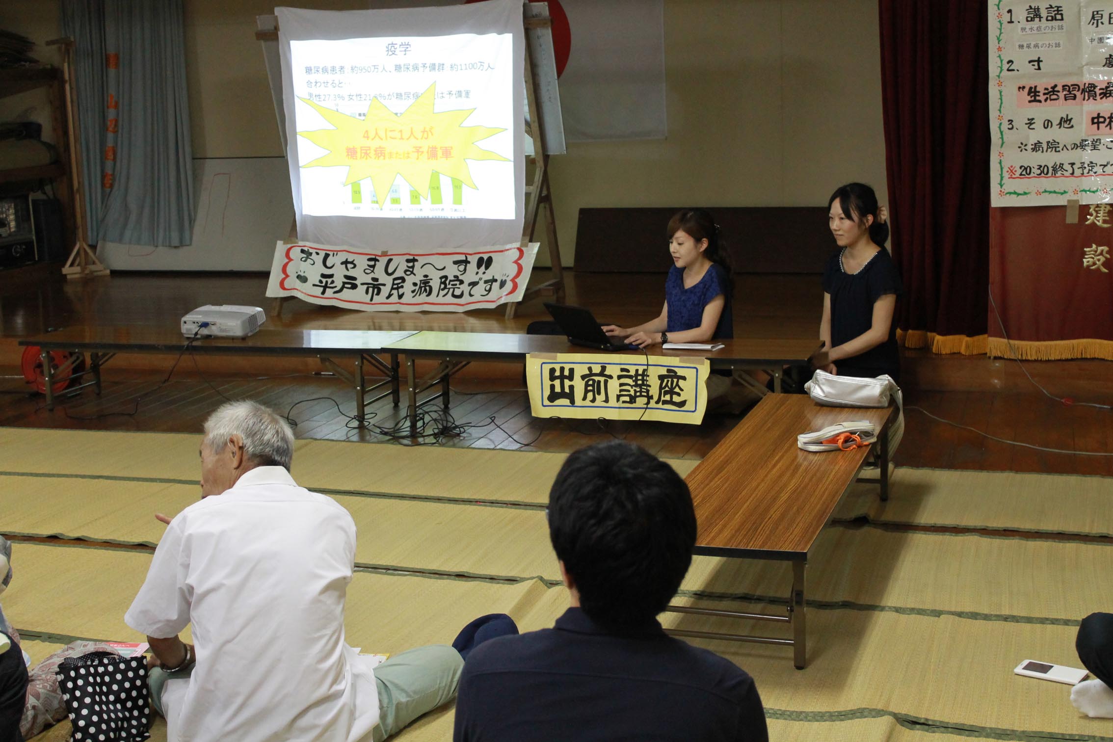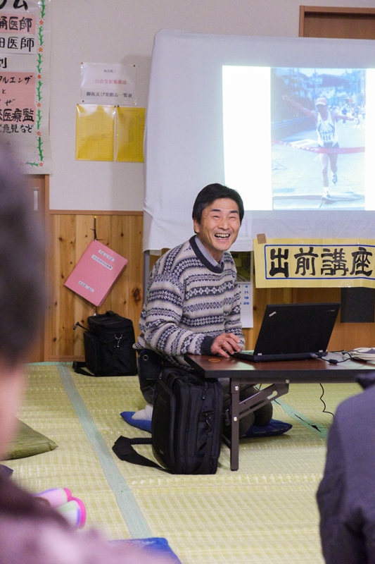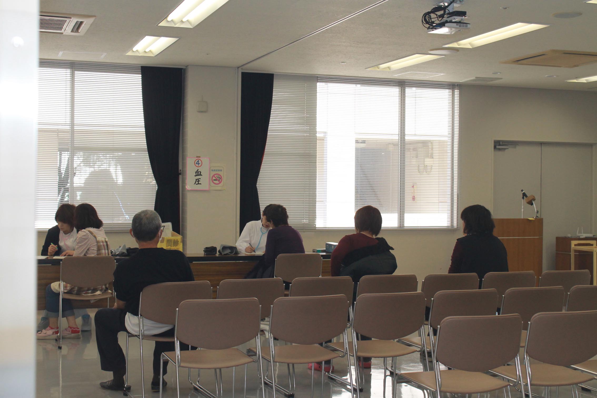 プログラム1は講話です。中桶先生の血圧のお話に引き続き、研修医の先生方によるインフルエンザの講話です。3人交代で予防や対策についても話されました。住民さんもメモをとりながら聞き入っていたようです。