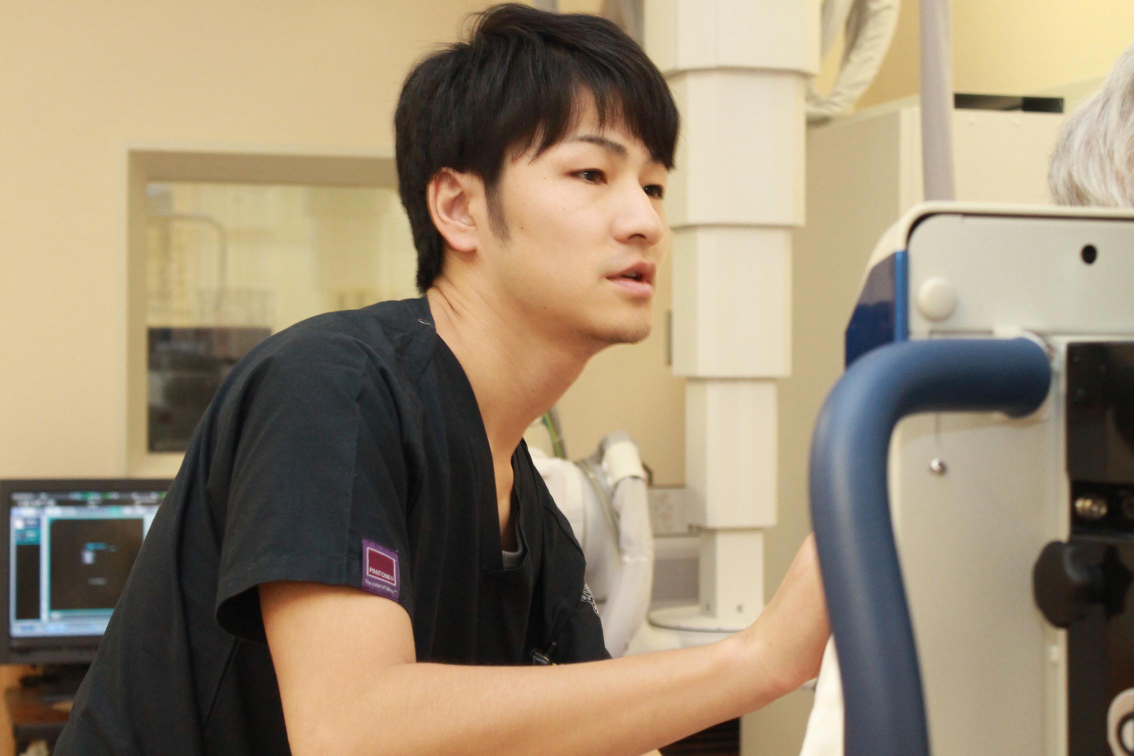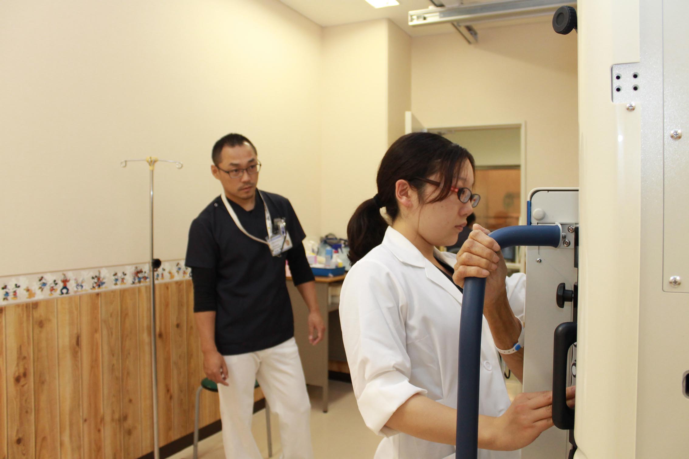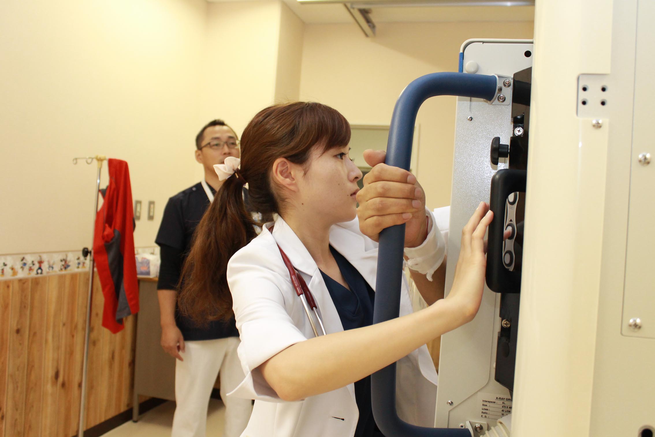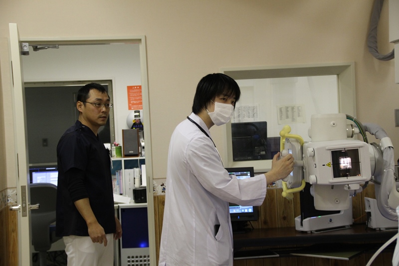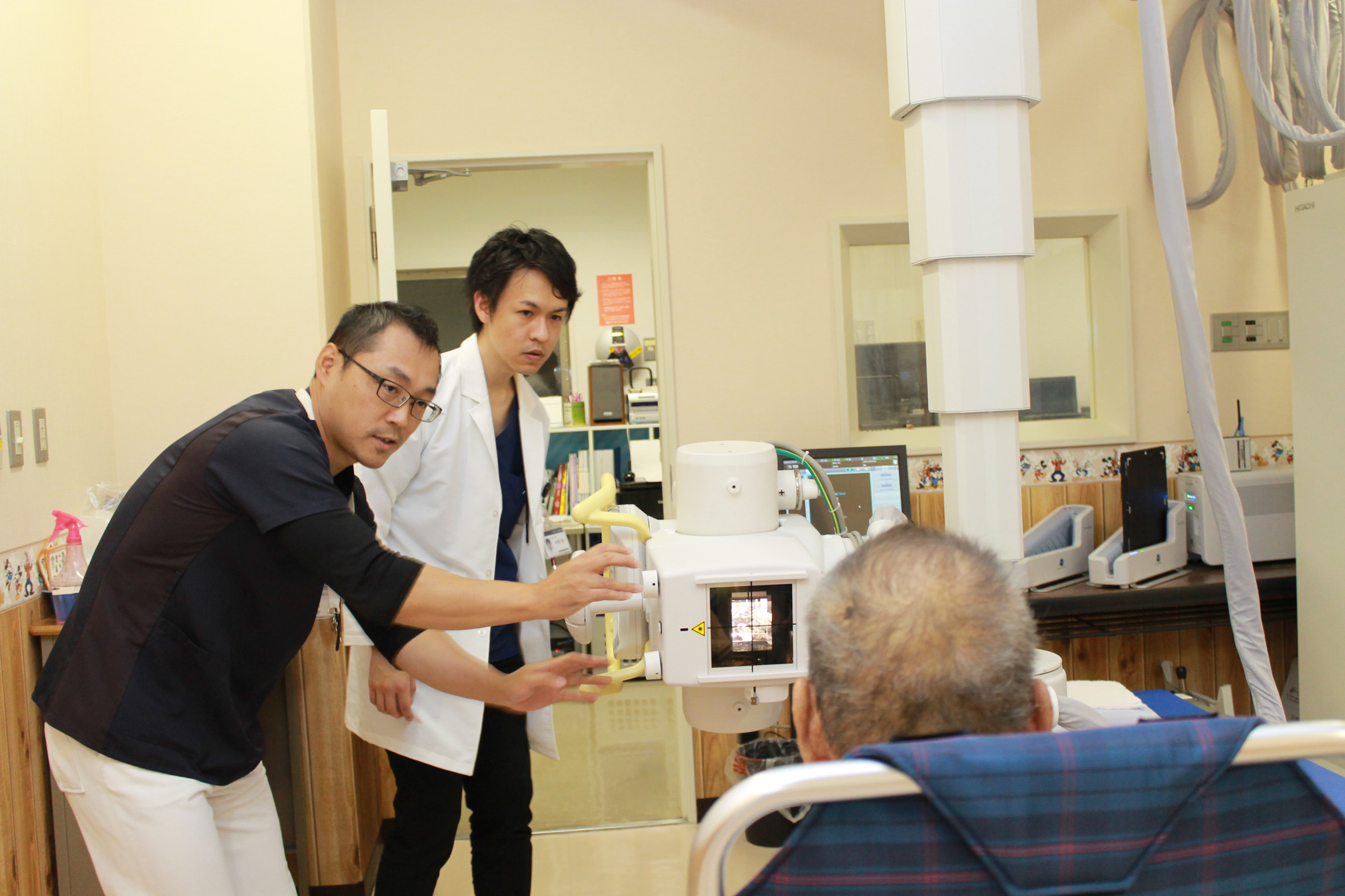 新しいシステムで 実習される菅野先生の様子です。写真ではいつもと変わりないように見えますが、患者さんの名前入力などが不要になり迅速にレントゲンが撮れるようになっています。