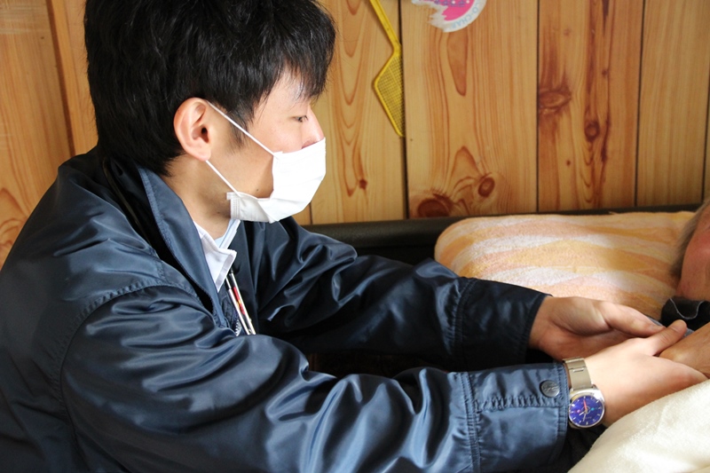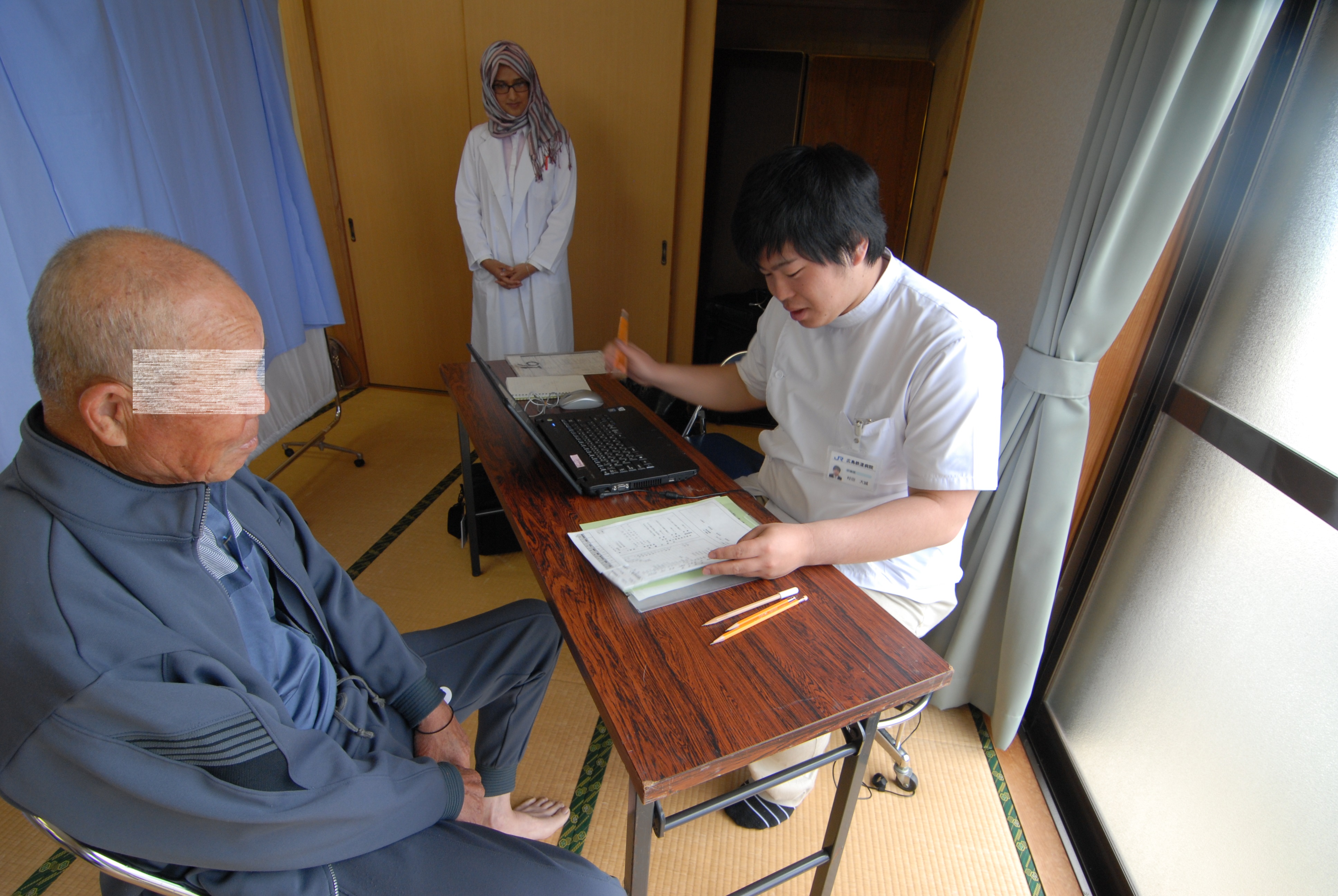 整形外科志望の藤野先生は訪問リハに興味があったそうです。実際に訪問に伺った患者さんは寝たきりの方でした。リハビリで関節を柔らかくすることによって悪くならないように、また家族の負担を軽くしていることと訪問リハの必要性を感じました。