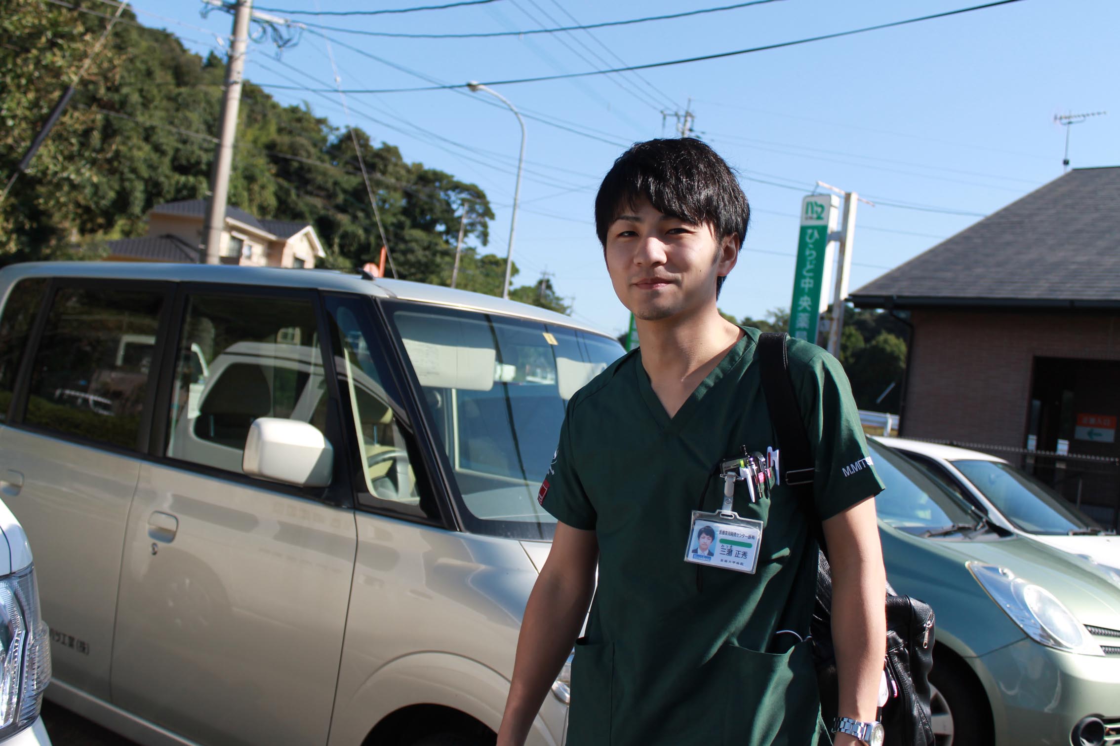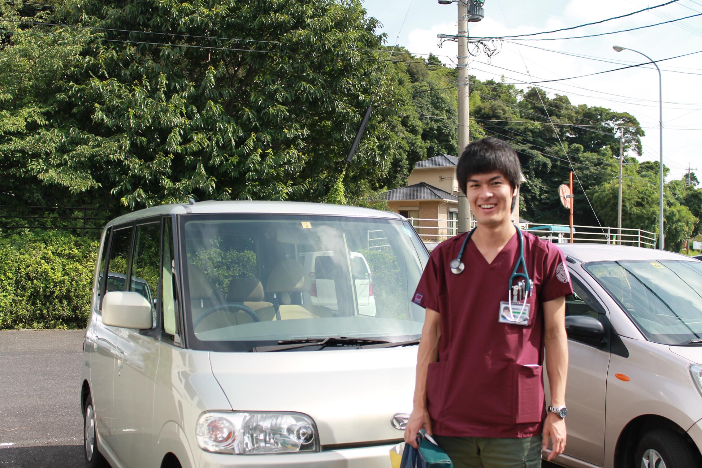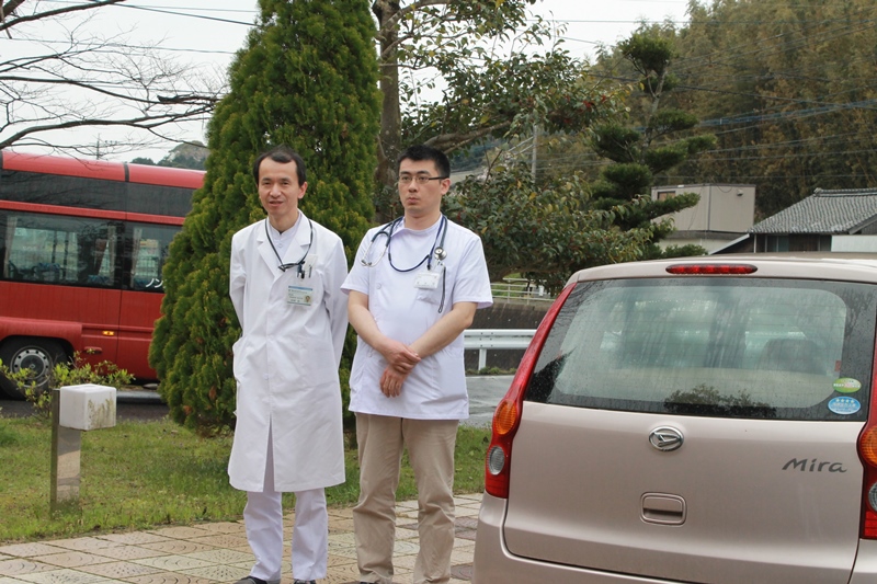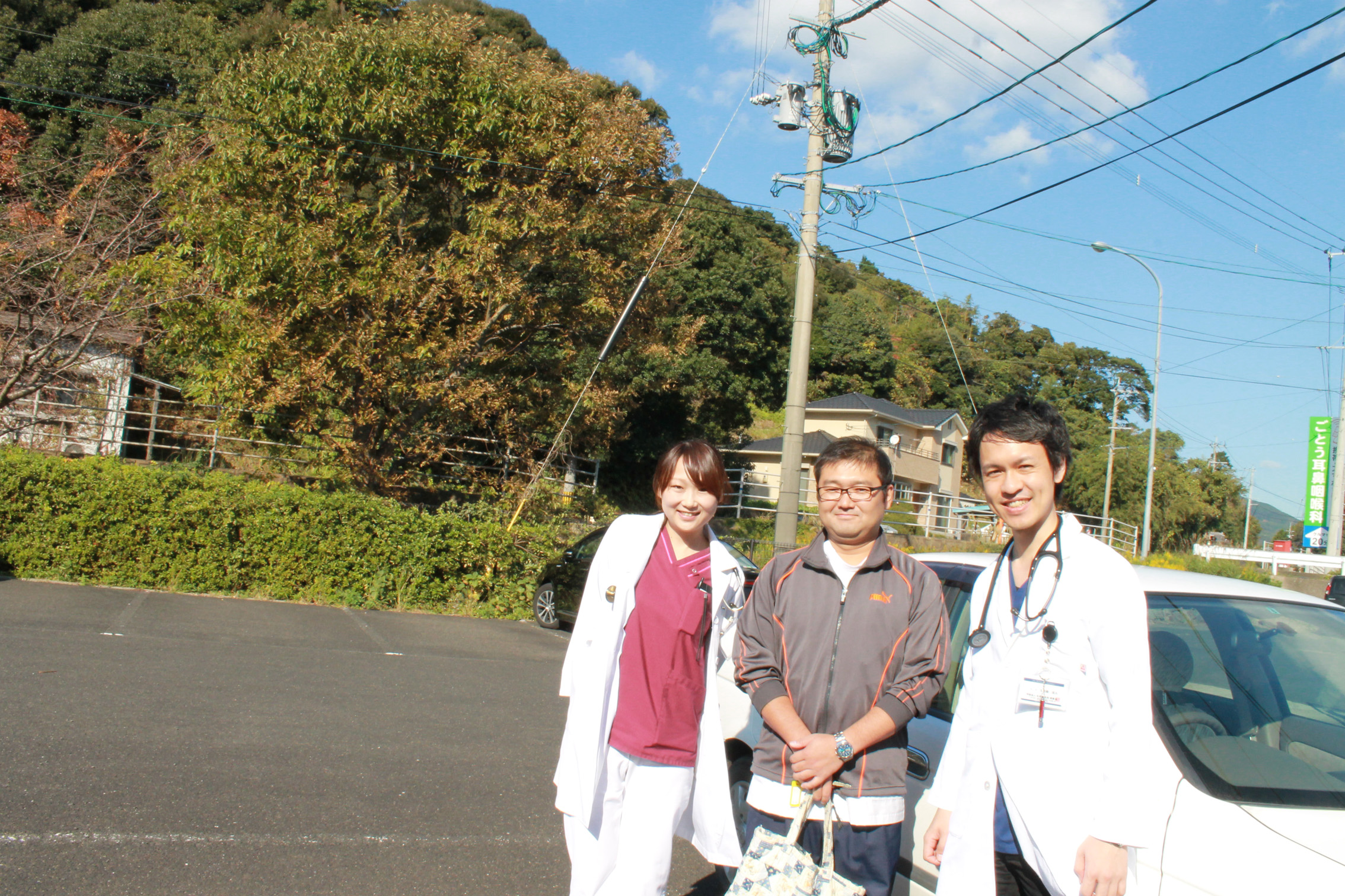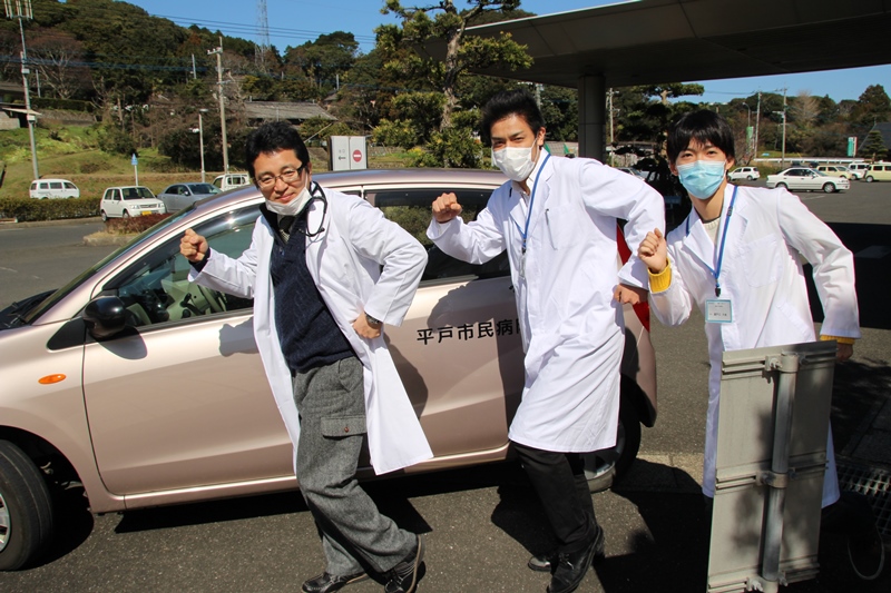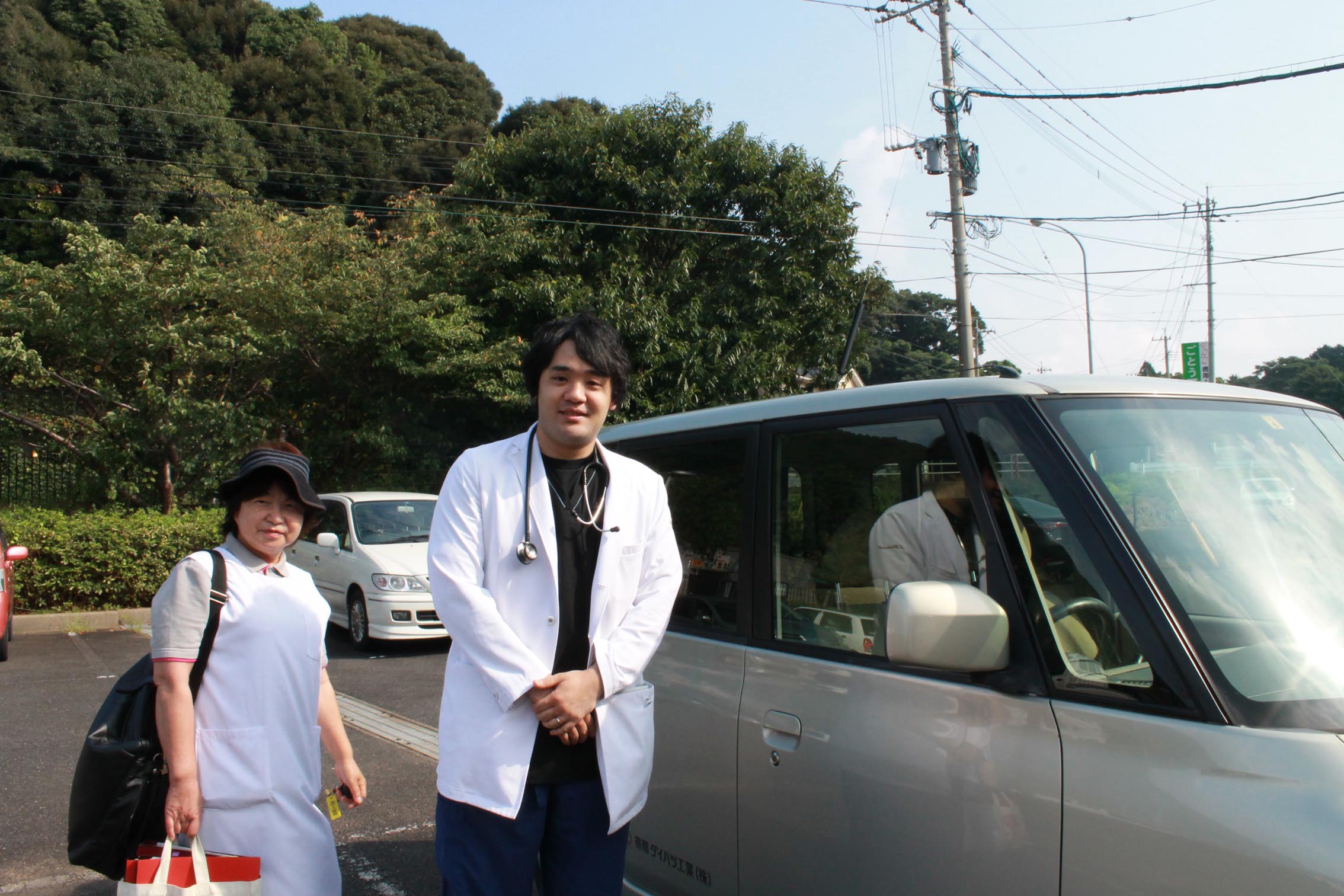 菅野先生は飯野先生との新患外来を終えて、中桶先生と訪問診療に行きました。