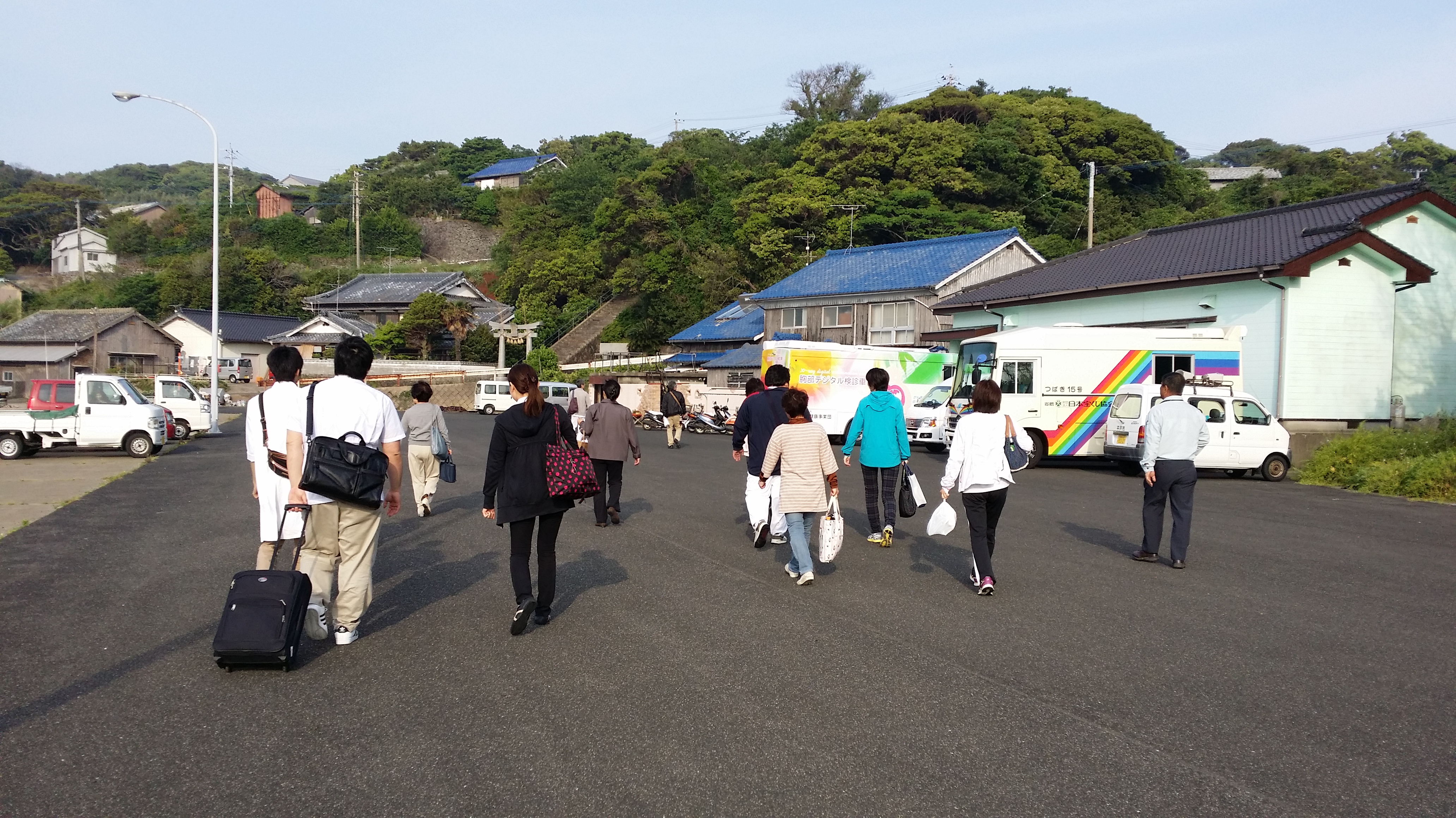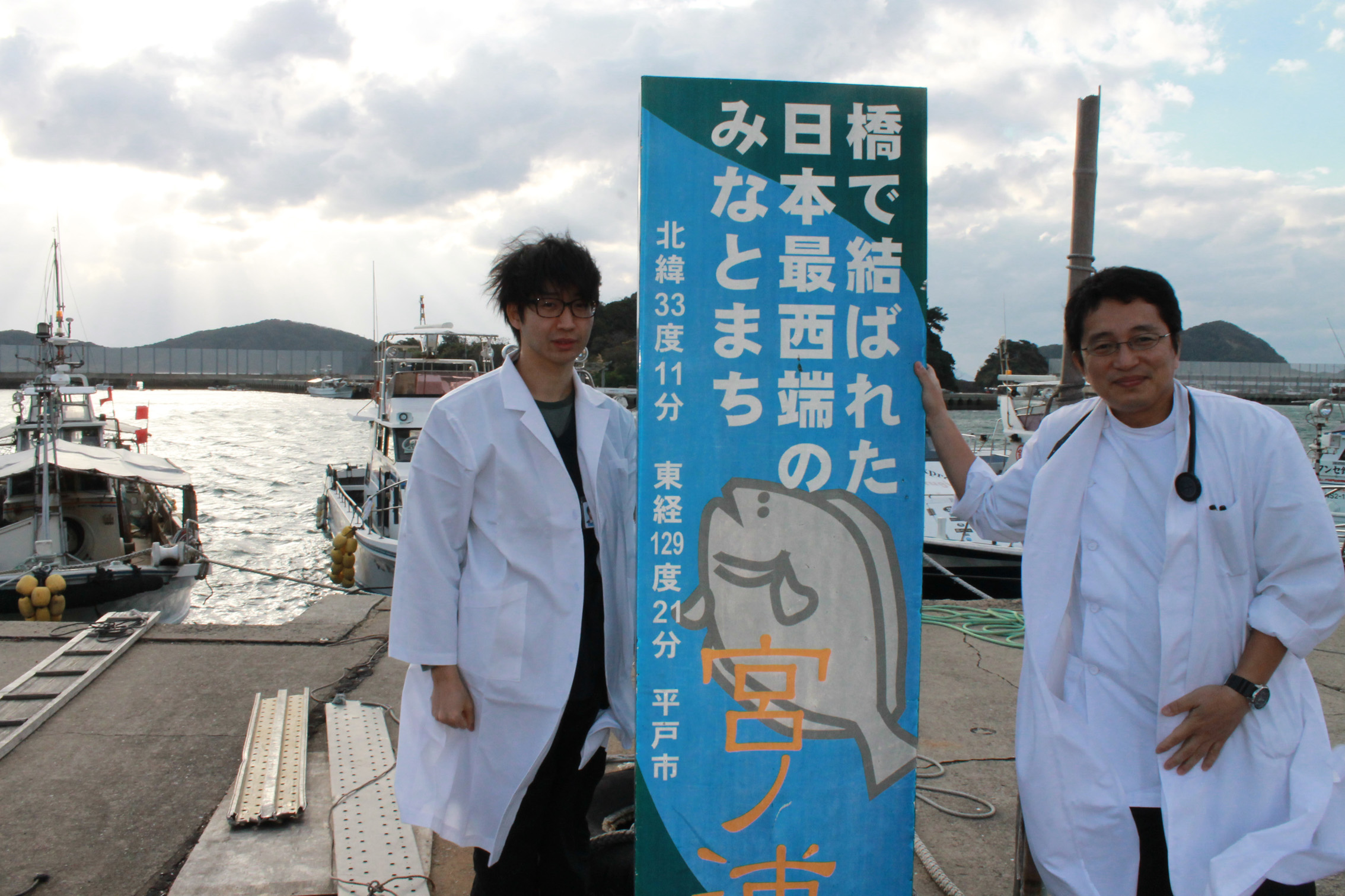 研修を終えて、港まで濱田先生がお見送りに来てくださいました。濱田先生は、東京の病院から、度島診療所に着任されてもうすぐ5年目になります。毎月、離島研修の受け入れをしていただいており、皆さん感動して帰ってきています。濱田先生の熱い思いが伝わっているんでしょうね。