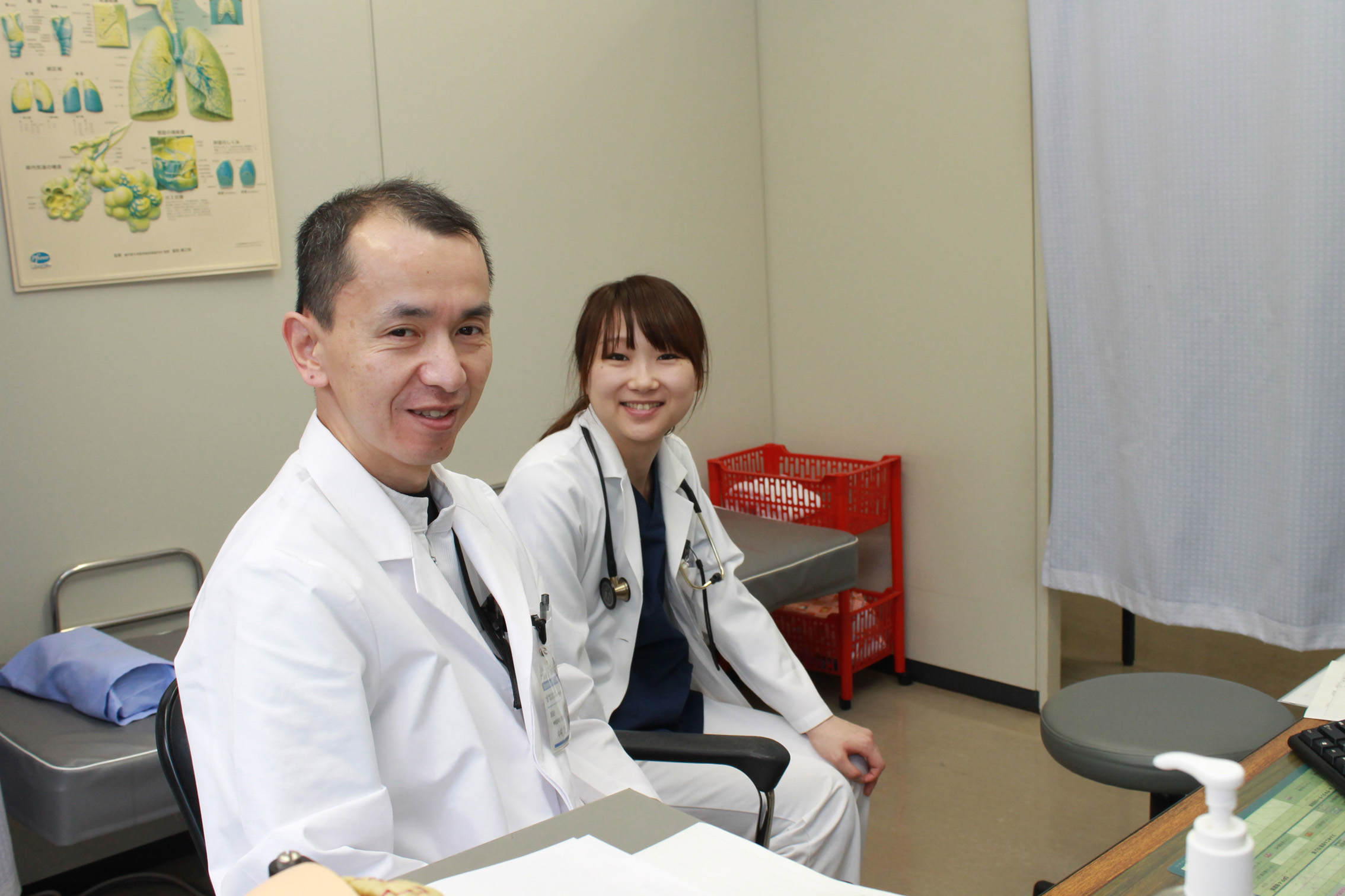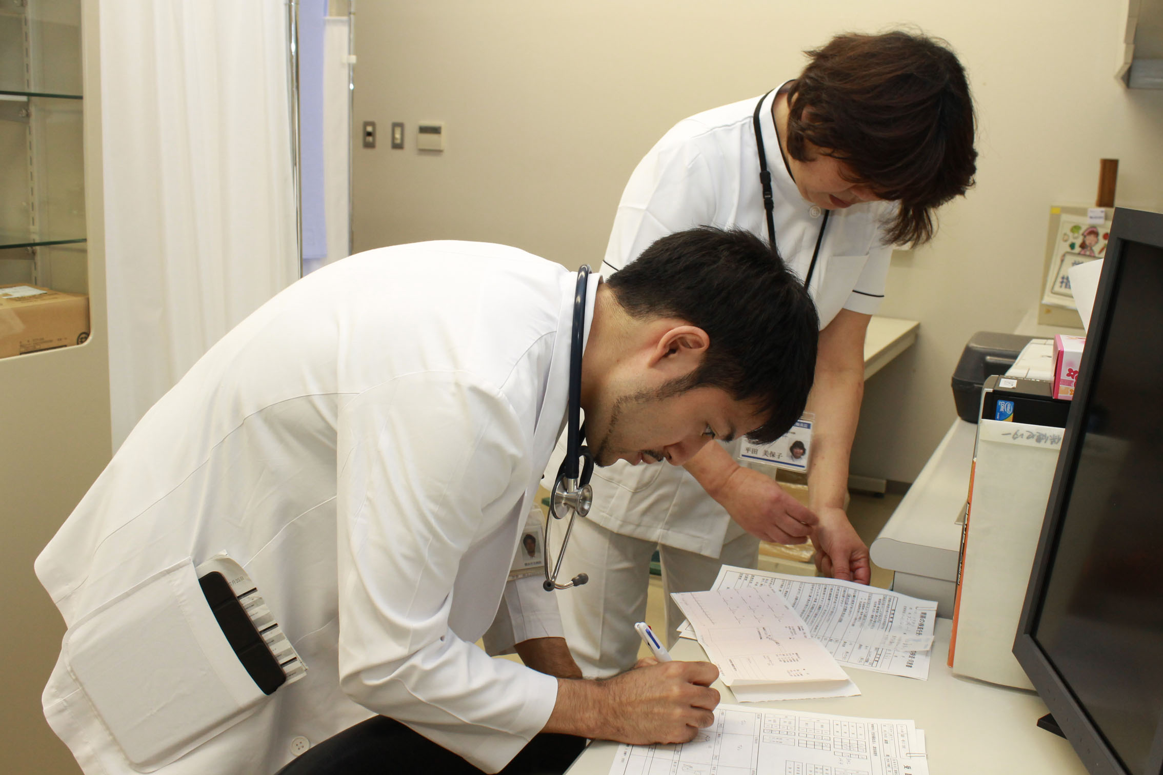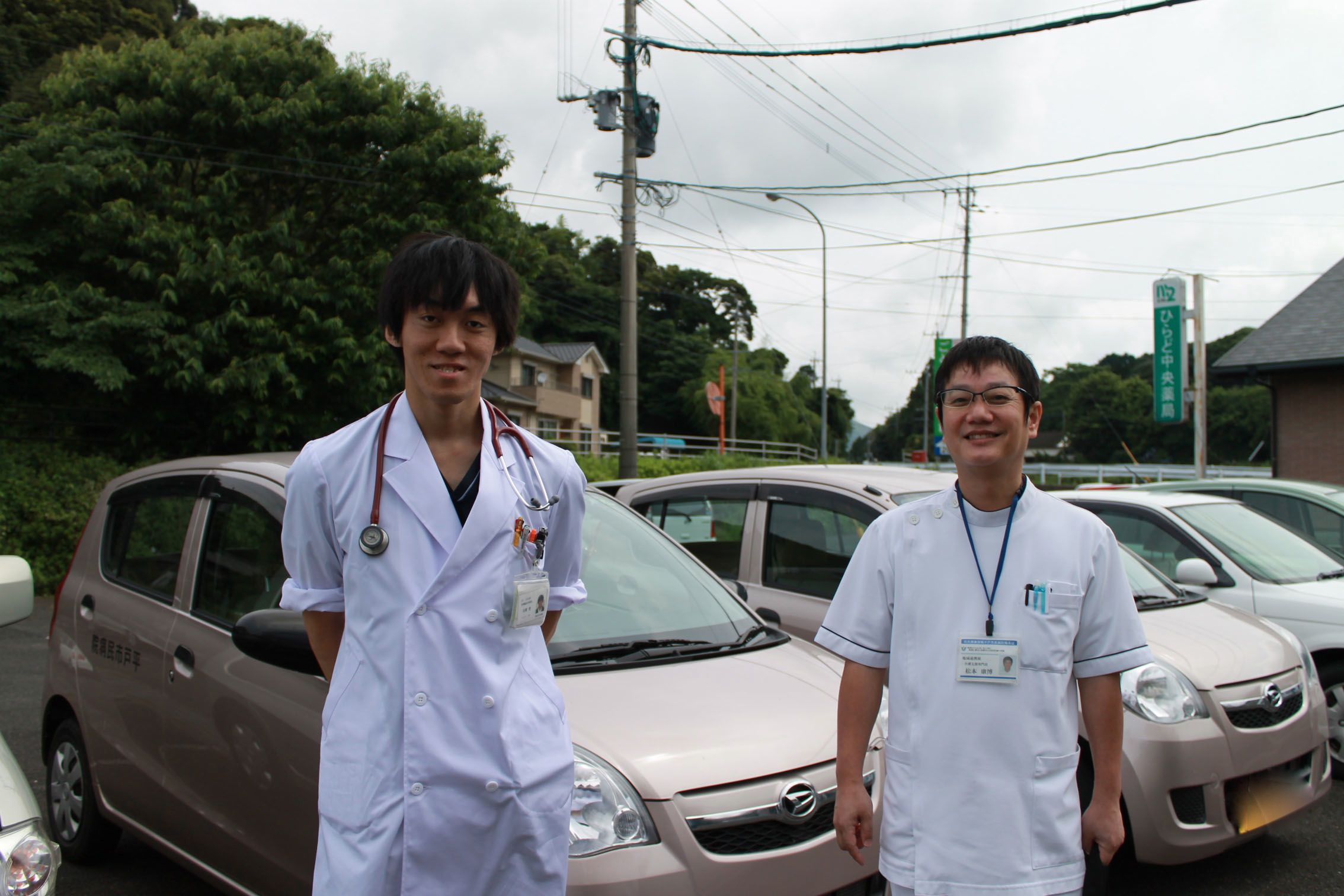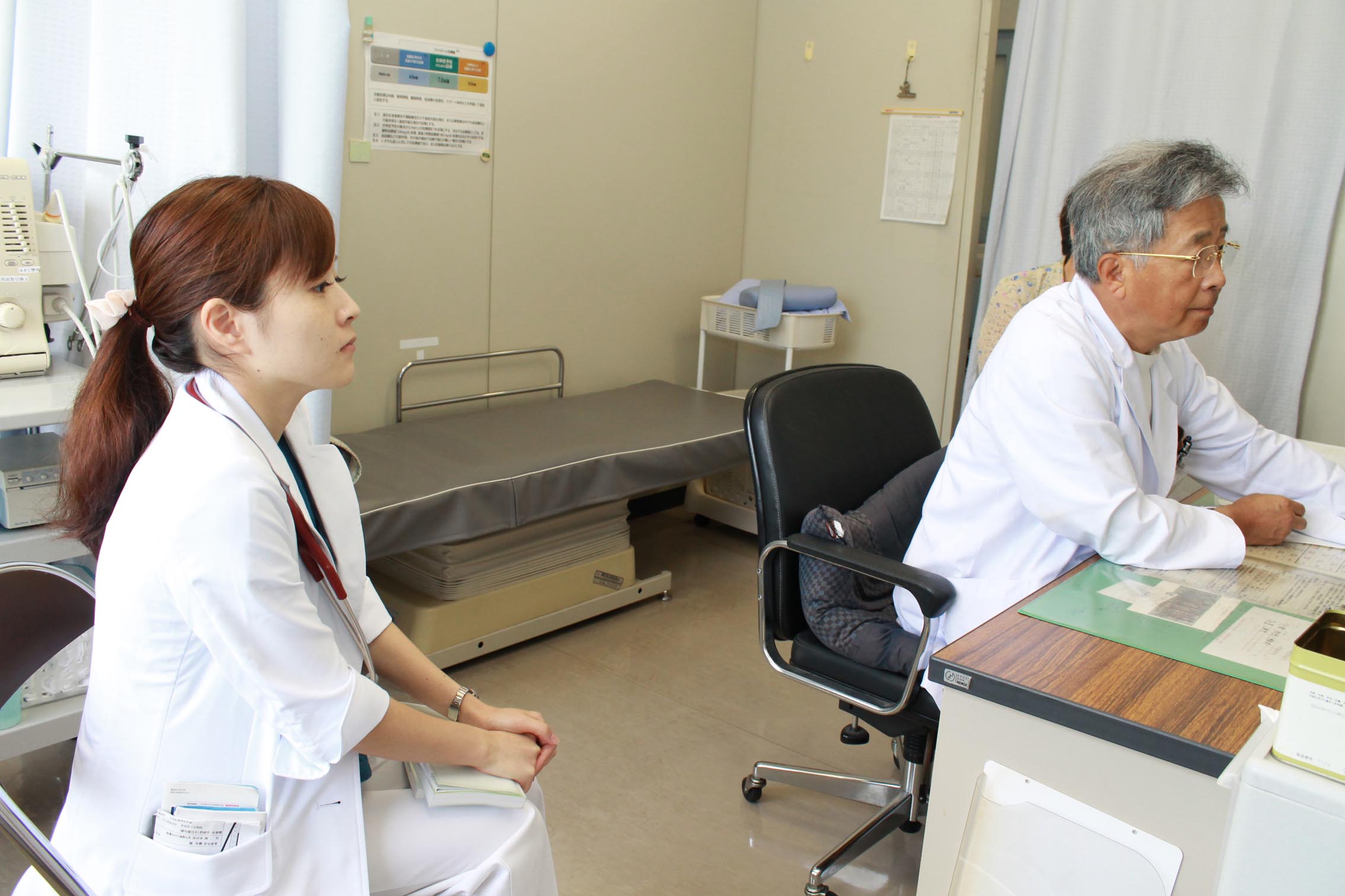 朝の事業所健診を終えて、菅野先生は訪問看護に行きました。患者さんとの距離が近く、コミュニケーションをとりながら様態を伺うことを学びました。菅野先生は押淵院長との外来です。外来のことだけではなく「チーム医療」についても教えていただきました。?梨先生は新患外来です。(写真には写っていませんが)中桶先生と一緒に取り組みました。