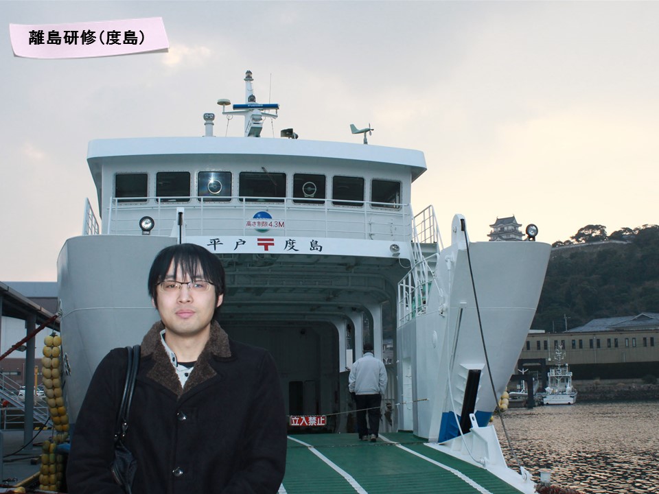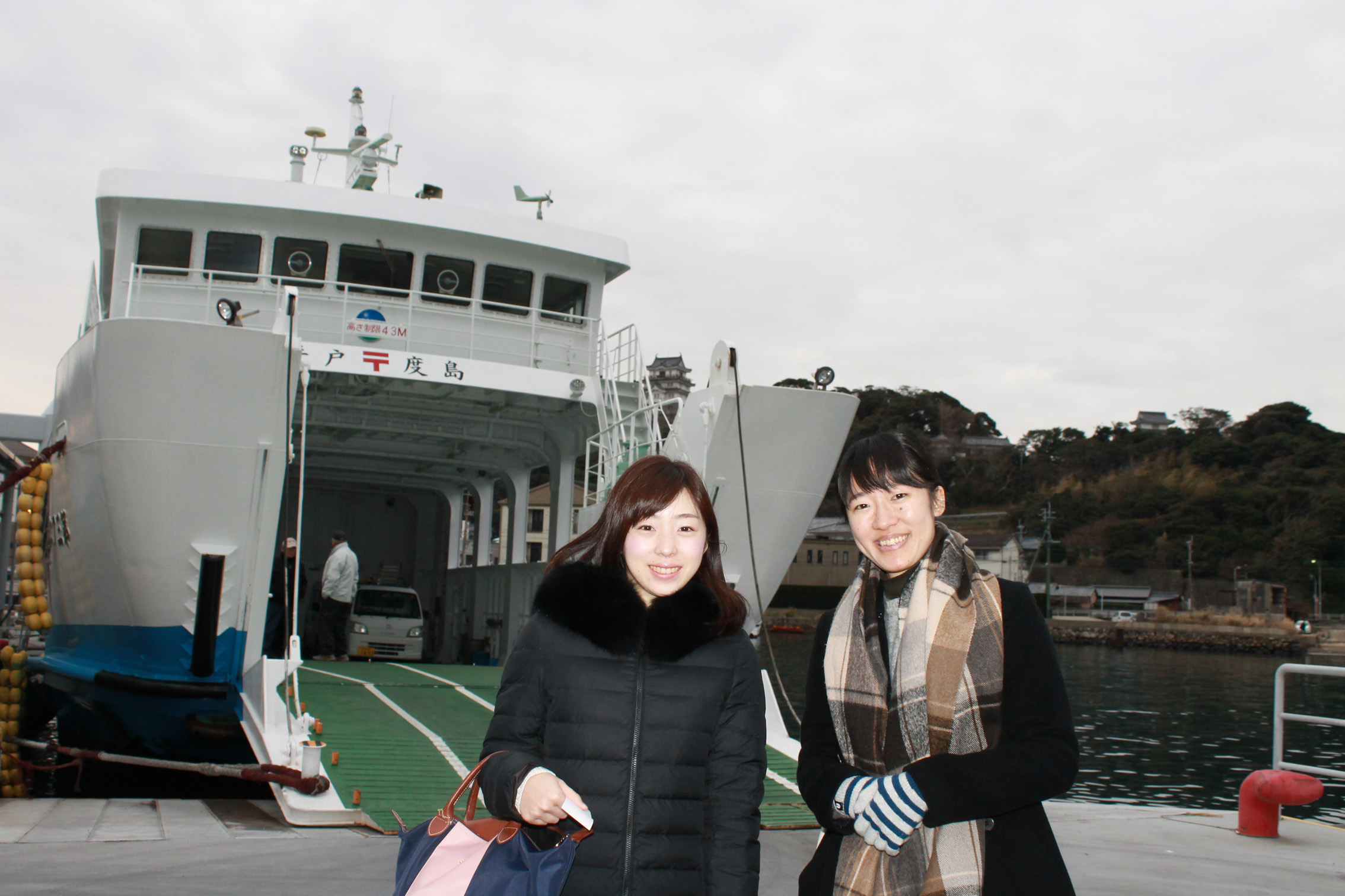 佐川先生と佐原先生は度島へ離島研修に行きました。この日の朝はとても冷え込み、車のフロントガラスが凍結していたほどでしたが、日が昇るにつれ晴れ上がりお天気に恵まれました?