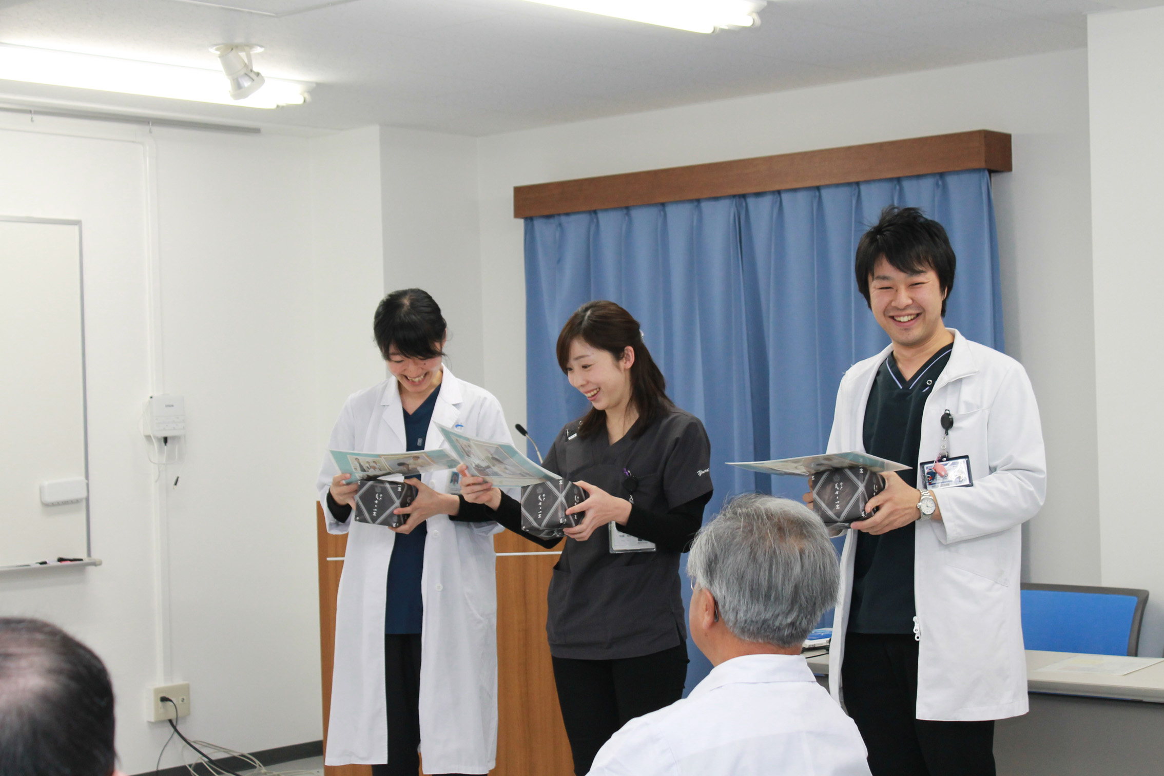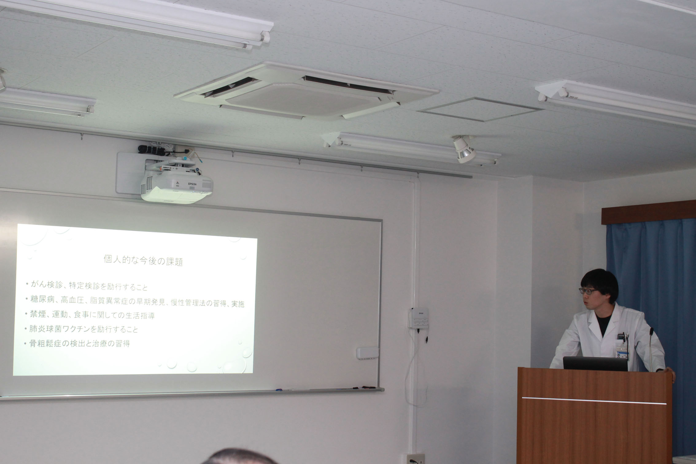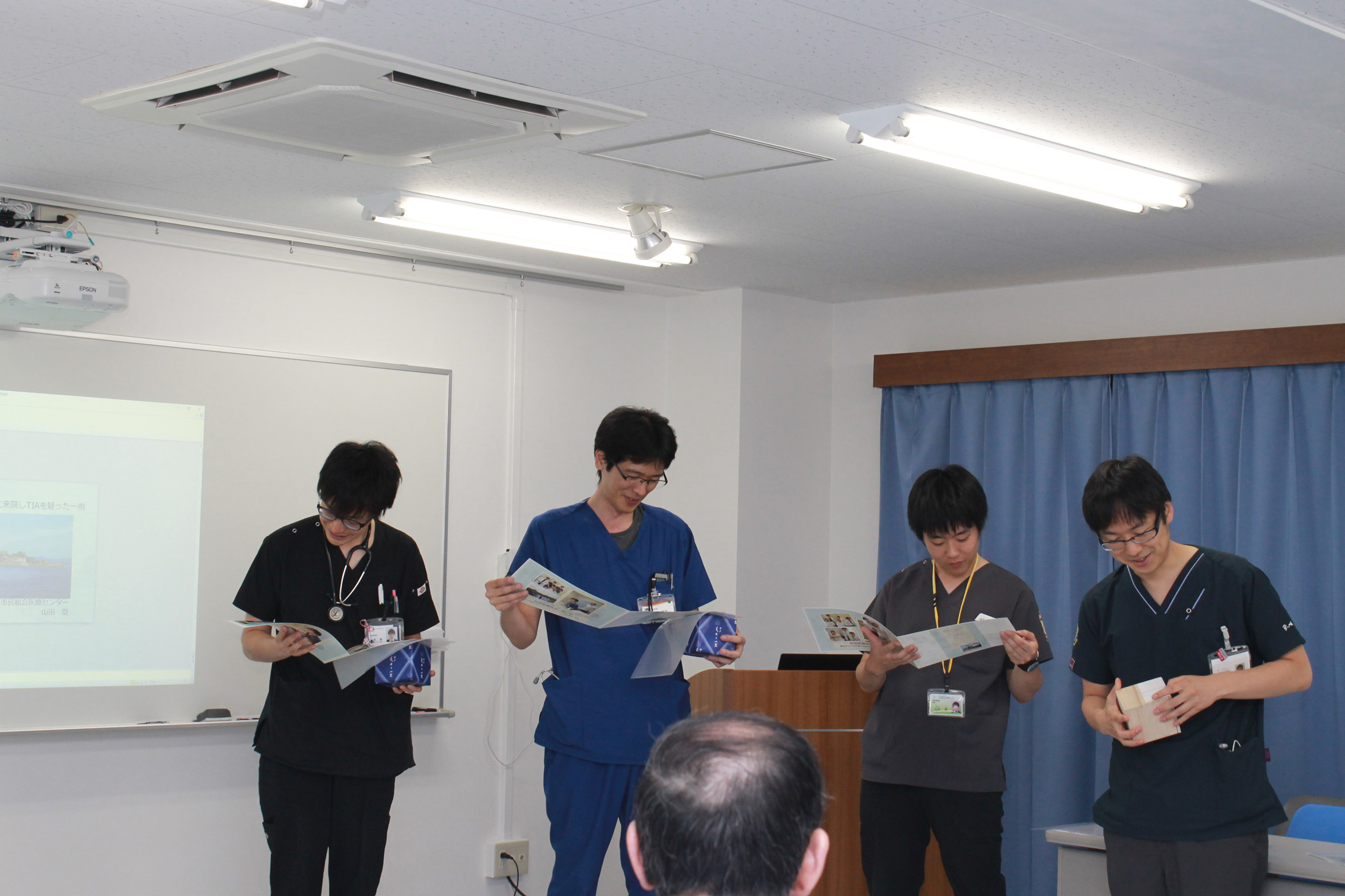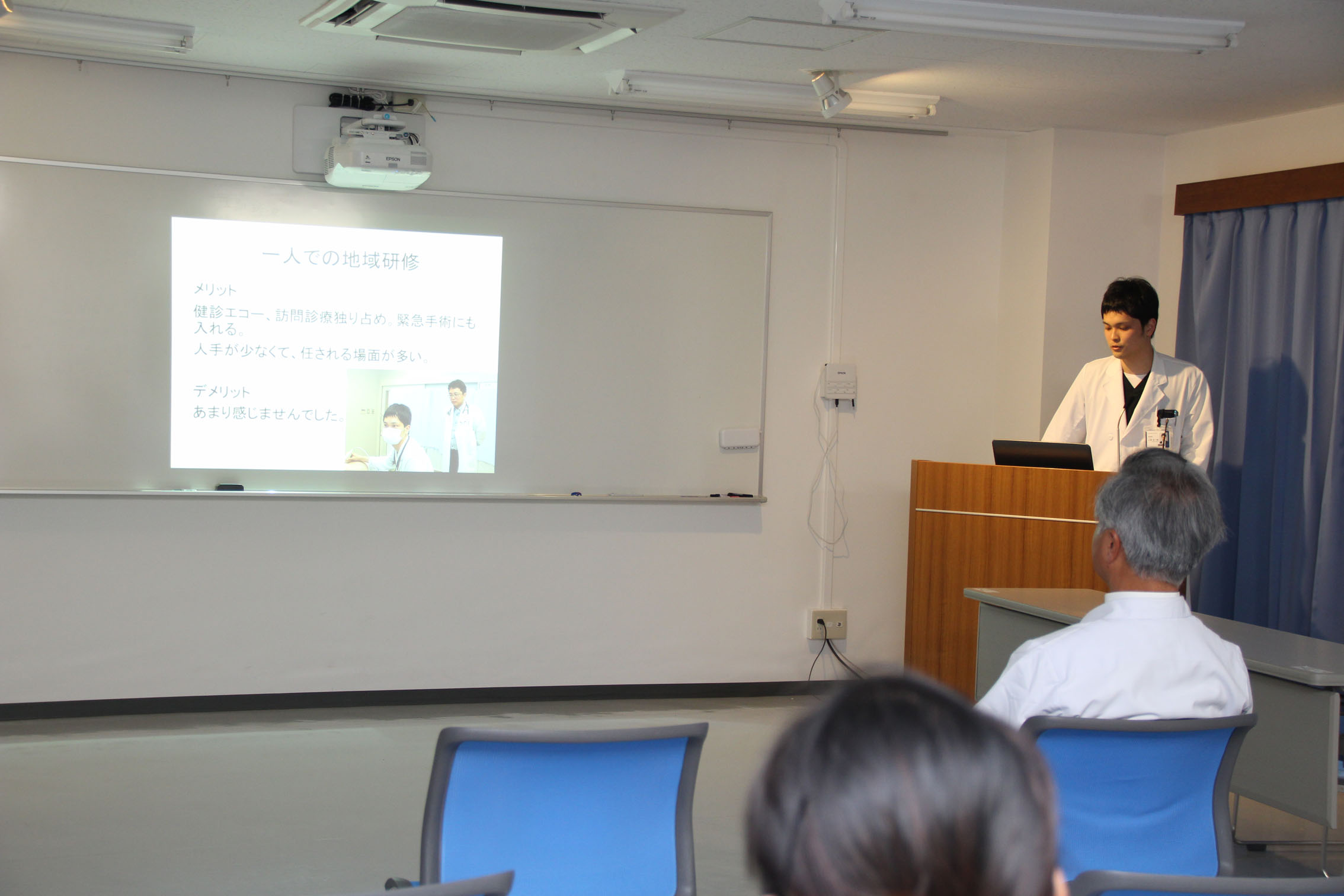 実習発表会では、たくさん職員さん方に集まっていただき、先生方それぞれに学んだことを発表しました。中には患者さんに「こんなところまで来ていただいてありがとう」と感謝されたり、外来で「先生の顔を見ただけで元気になった」と言われたエピソードもあったそうです。先生方の人柄もあったんだと思います。