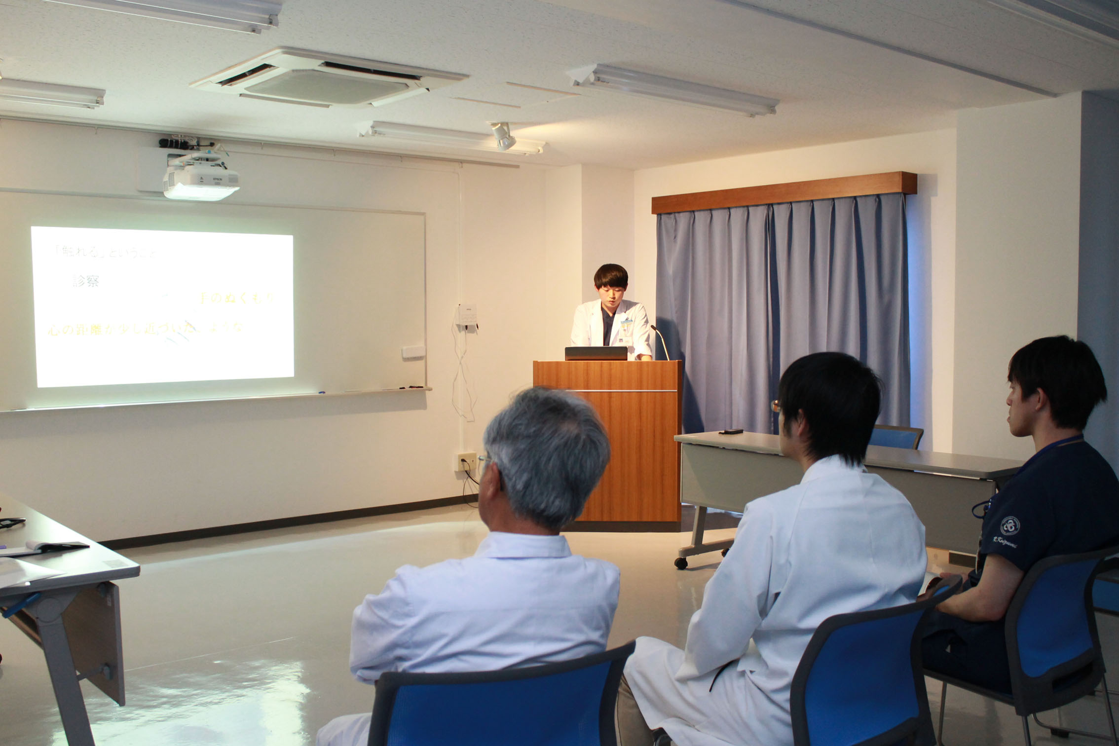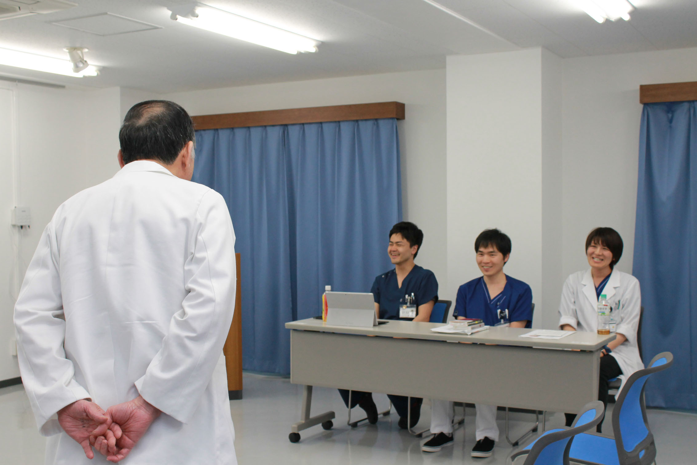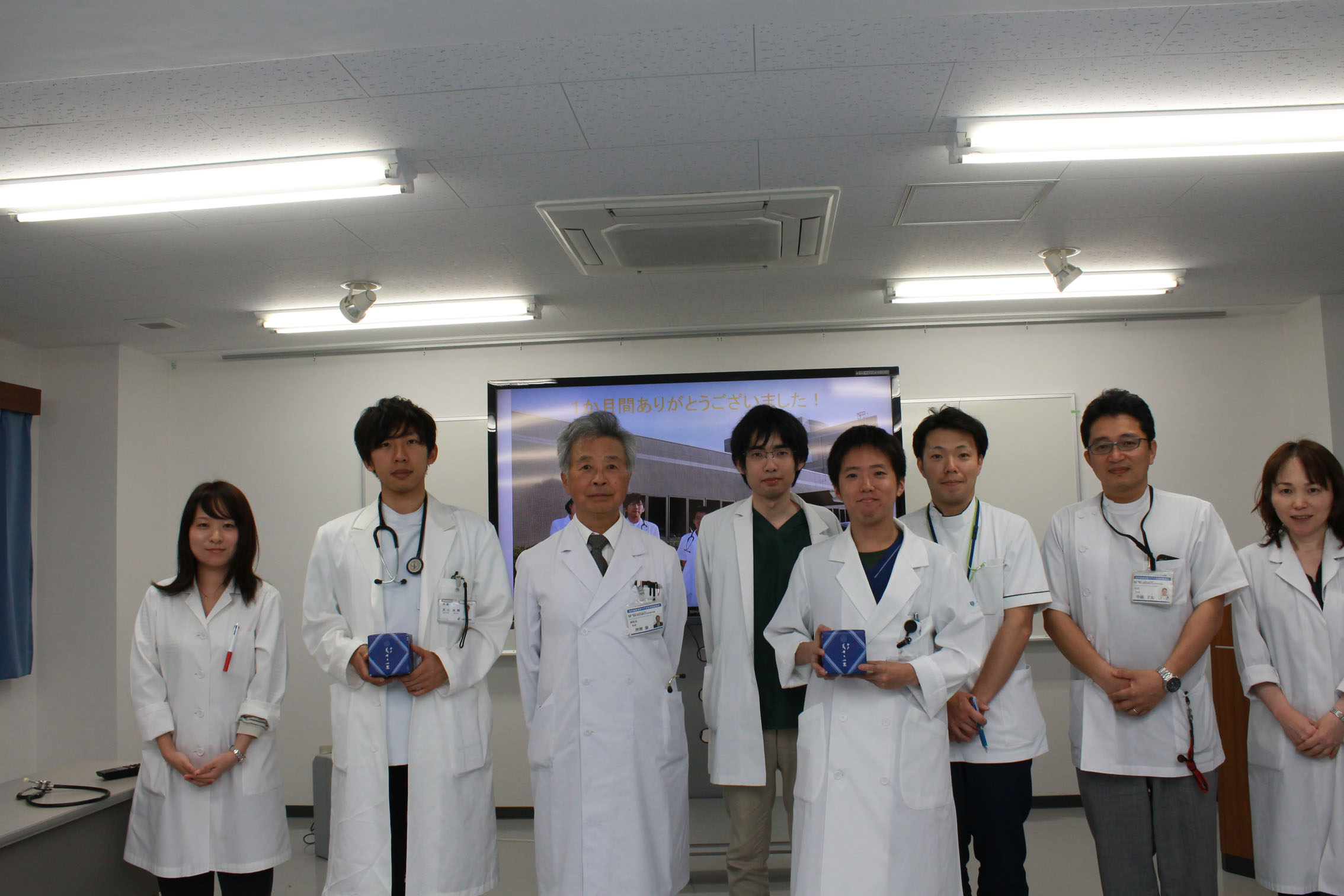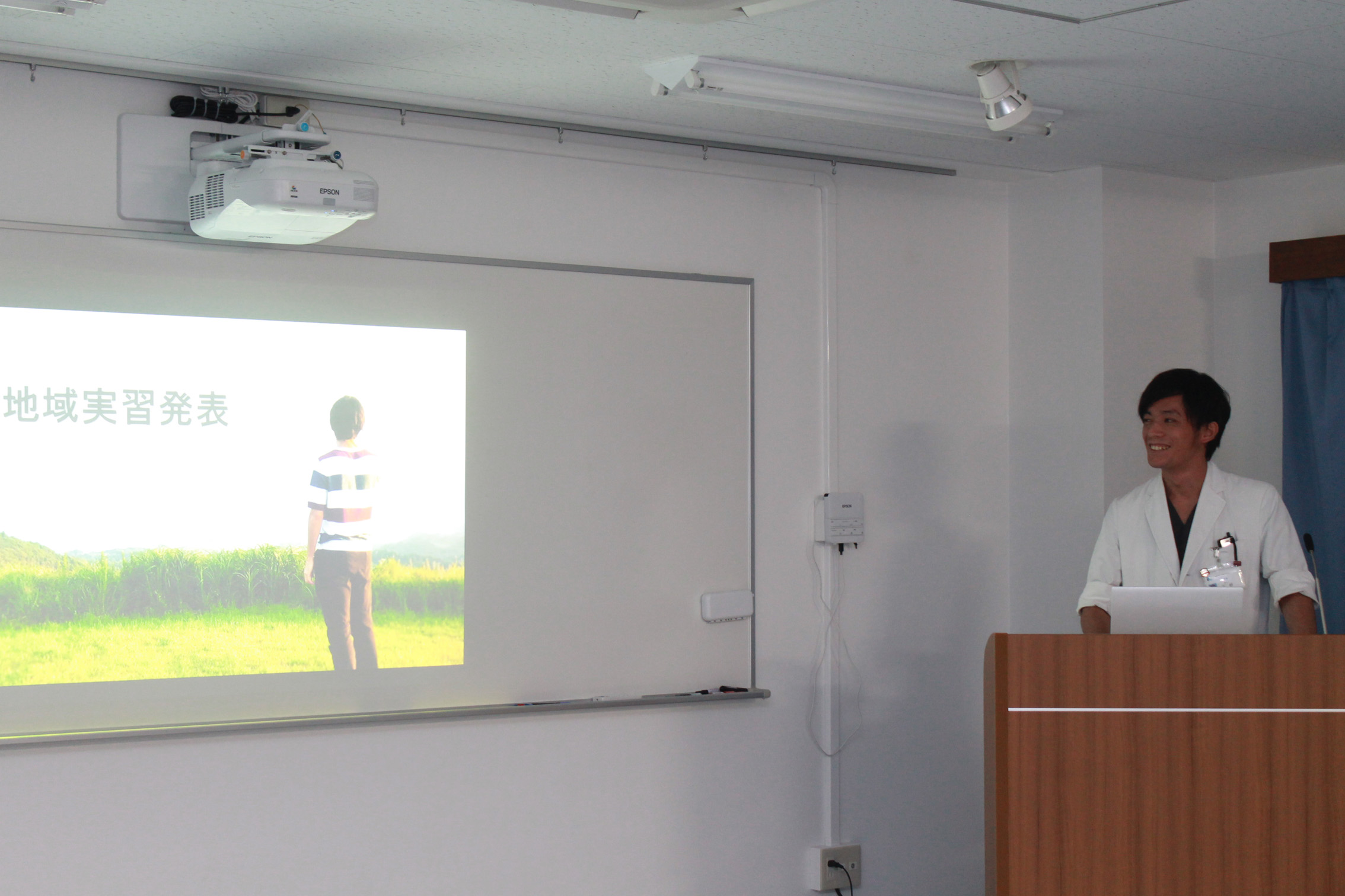 実習発表会では、たくさん職員さん方に集まっていただき、先生方それぞれに学んだことを発表しました。中には患者さんに「こんなところまで来ていただいてありがとう」と感謝されたり、外来で「先生の顔を見ただけで元気になった」と言われたエピソードもあったそうです。先生方の人柄もあったんだと思います。