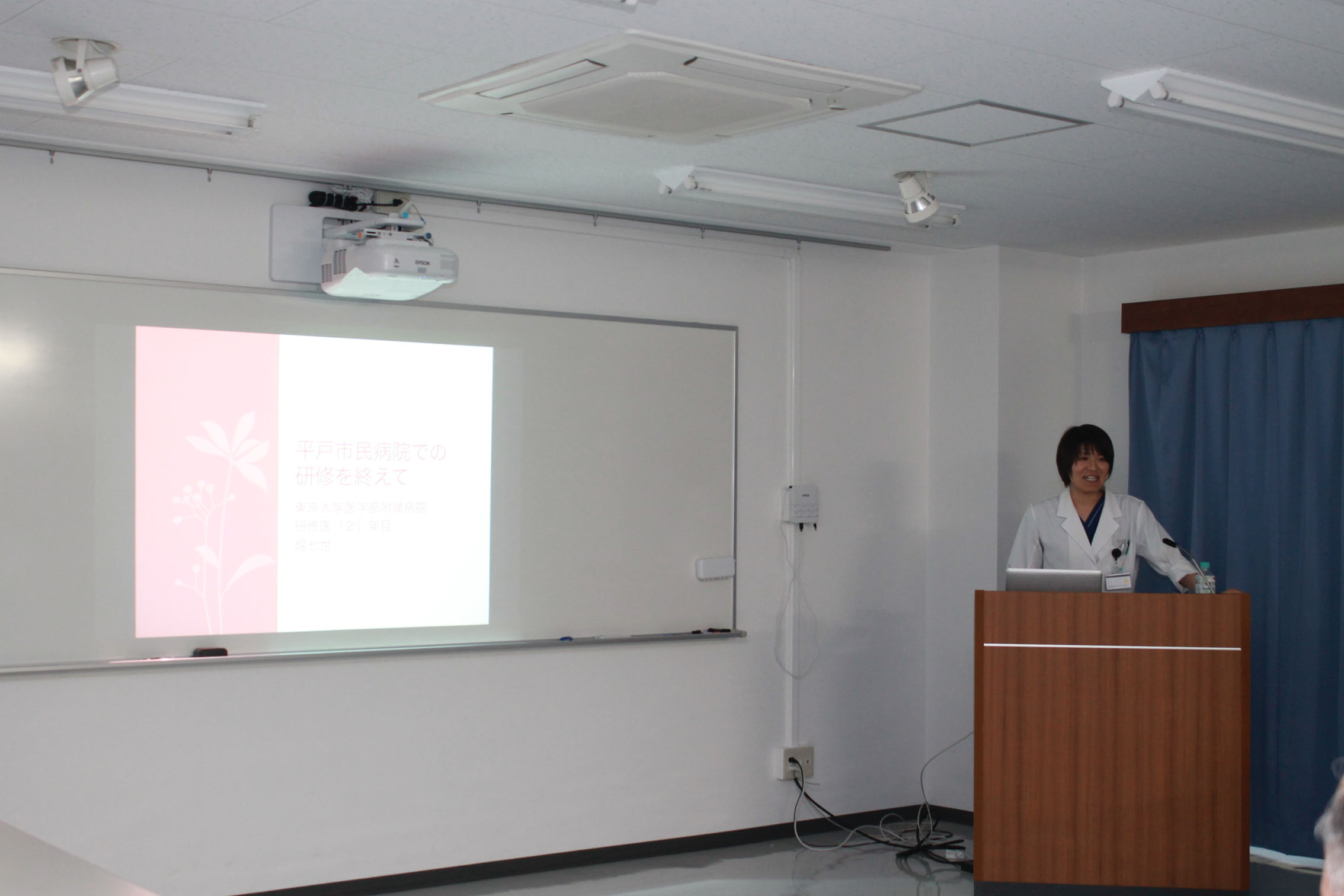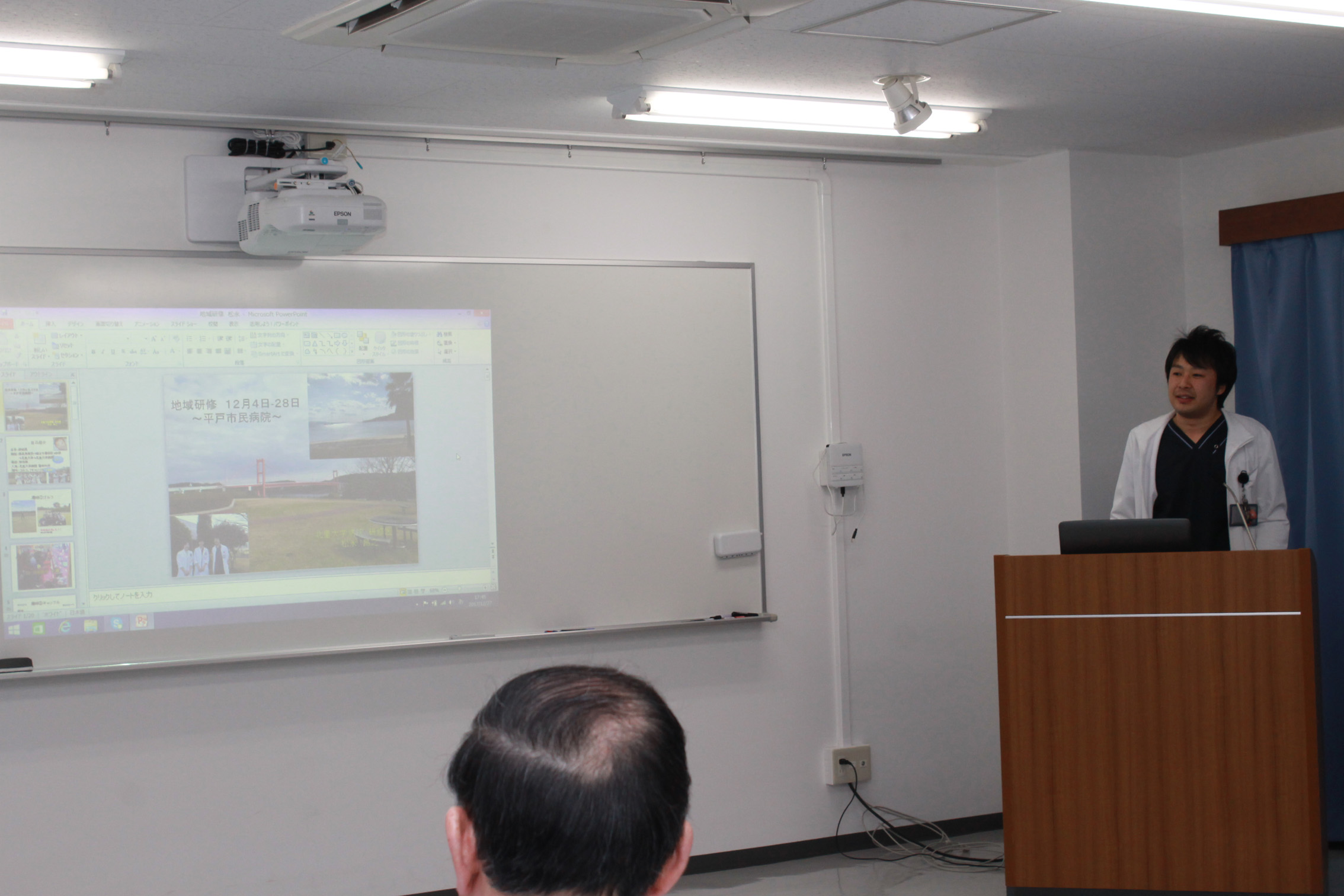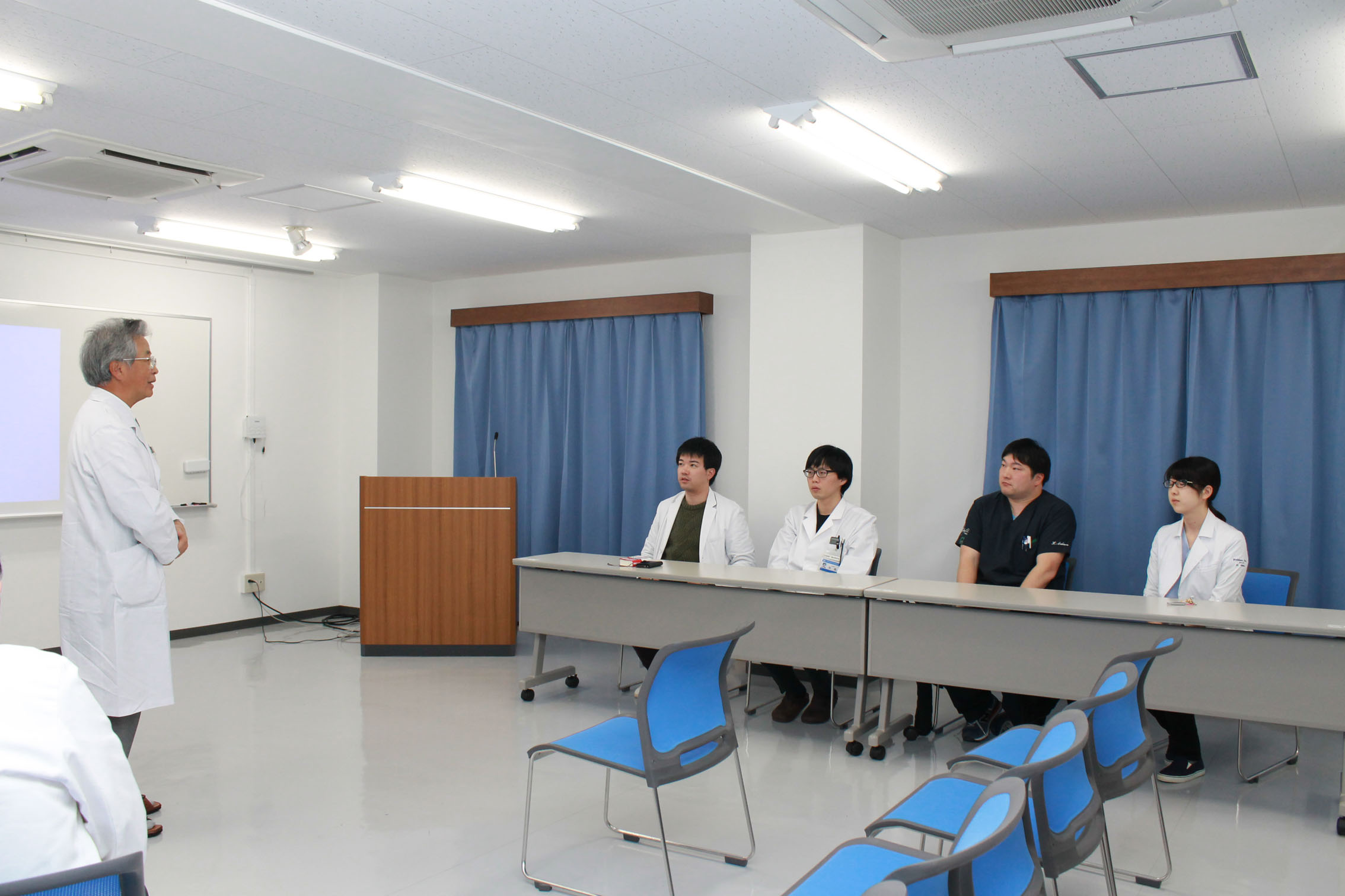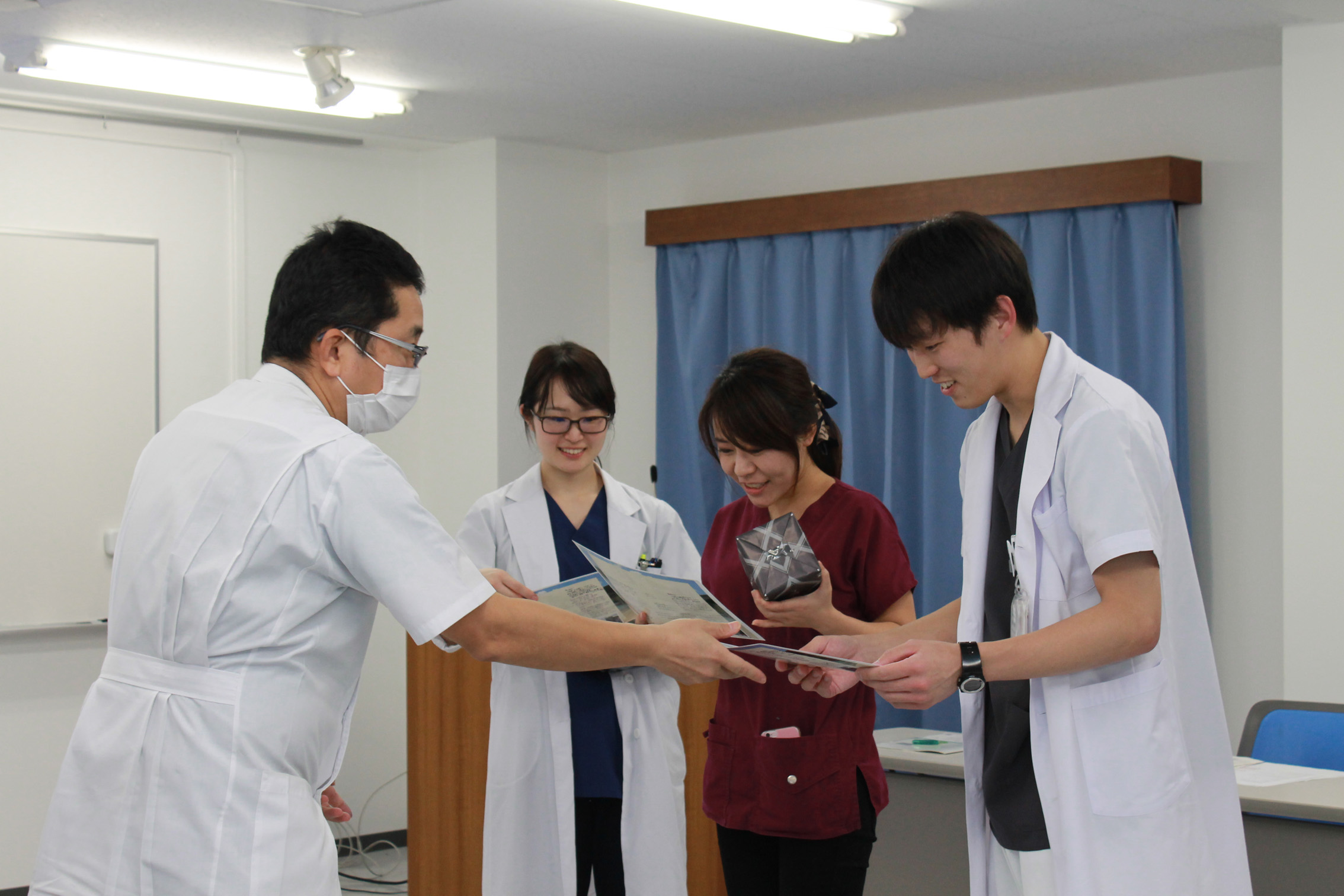実習発表会では、たくさん職員さん方に集まっていただき、先生方それぞれに学んだことを発表しました。中には患者さんに「こんなところまで来ていただいてありがとう」と感謝されたり、外来で「先生の顔を見ただけで元気になった」と言われたエピソードもあったそうです。先生方の人柄もあったんだと思います。