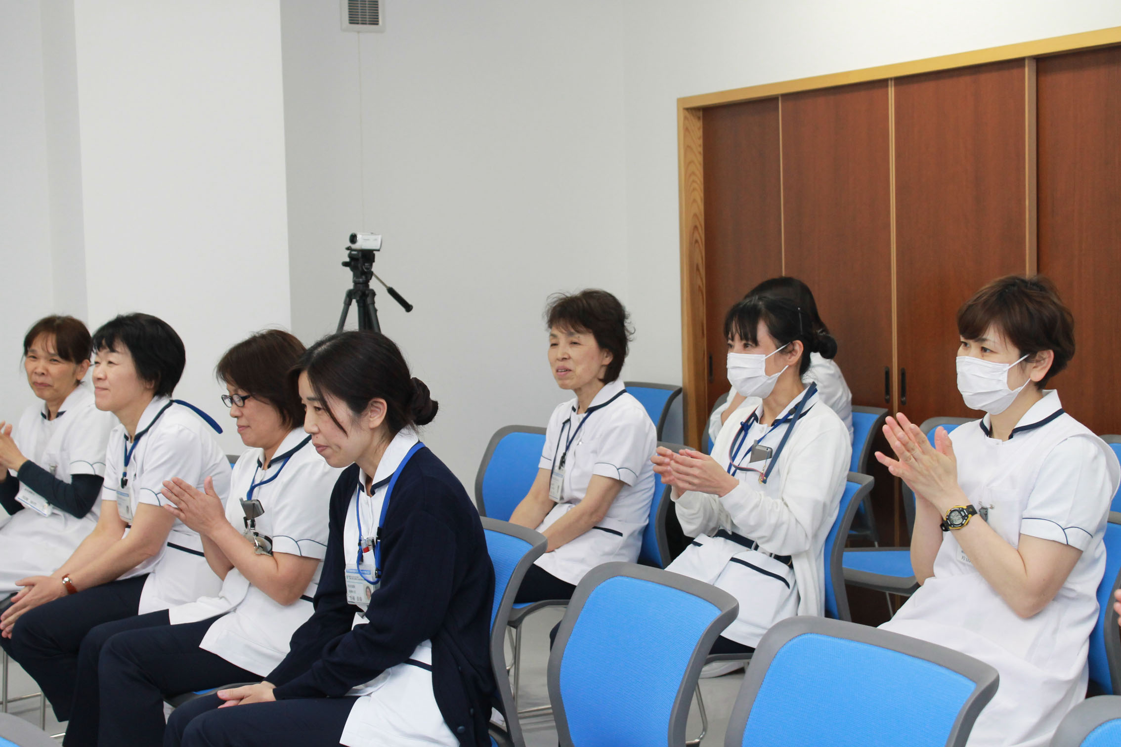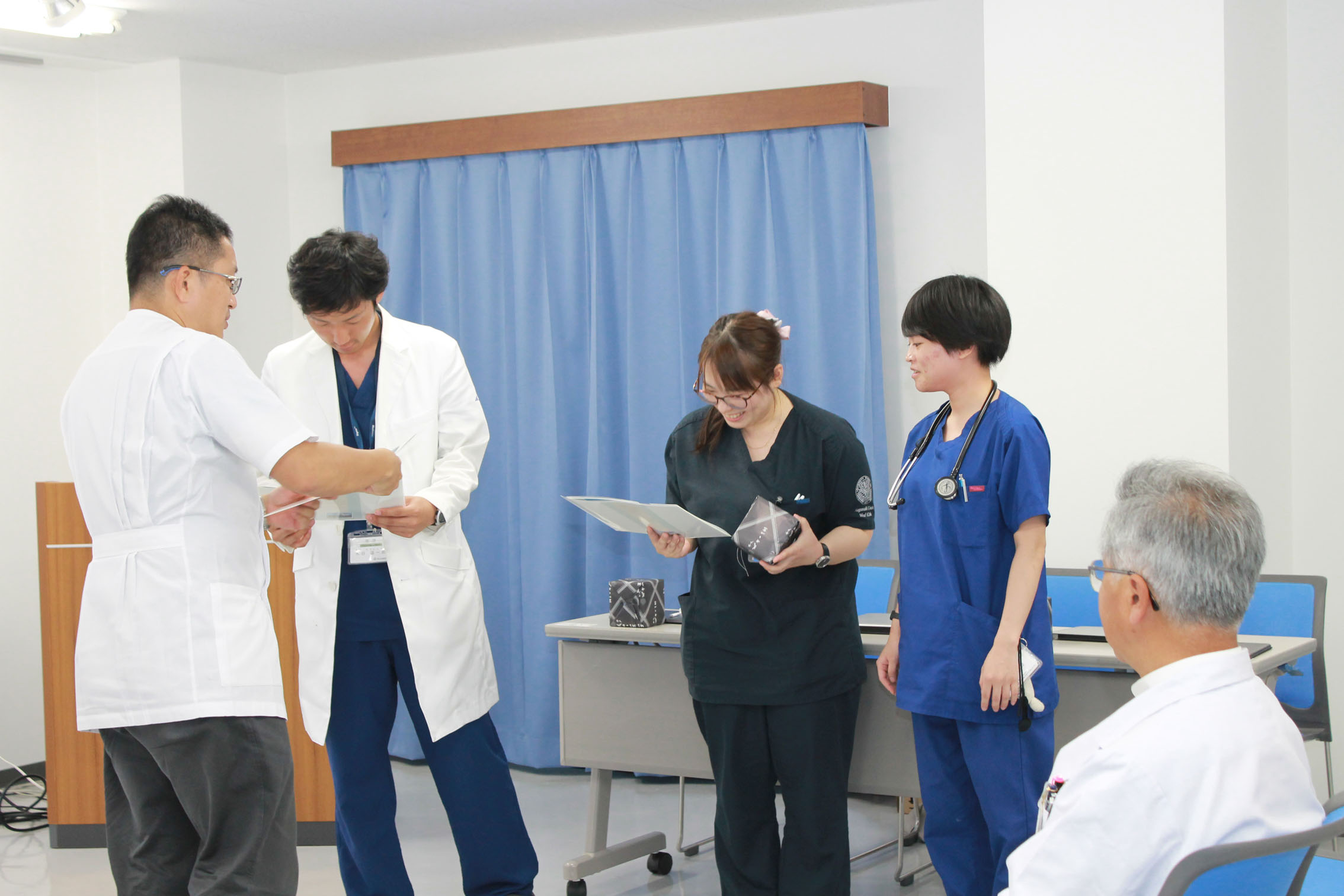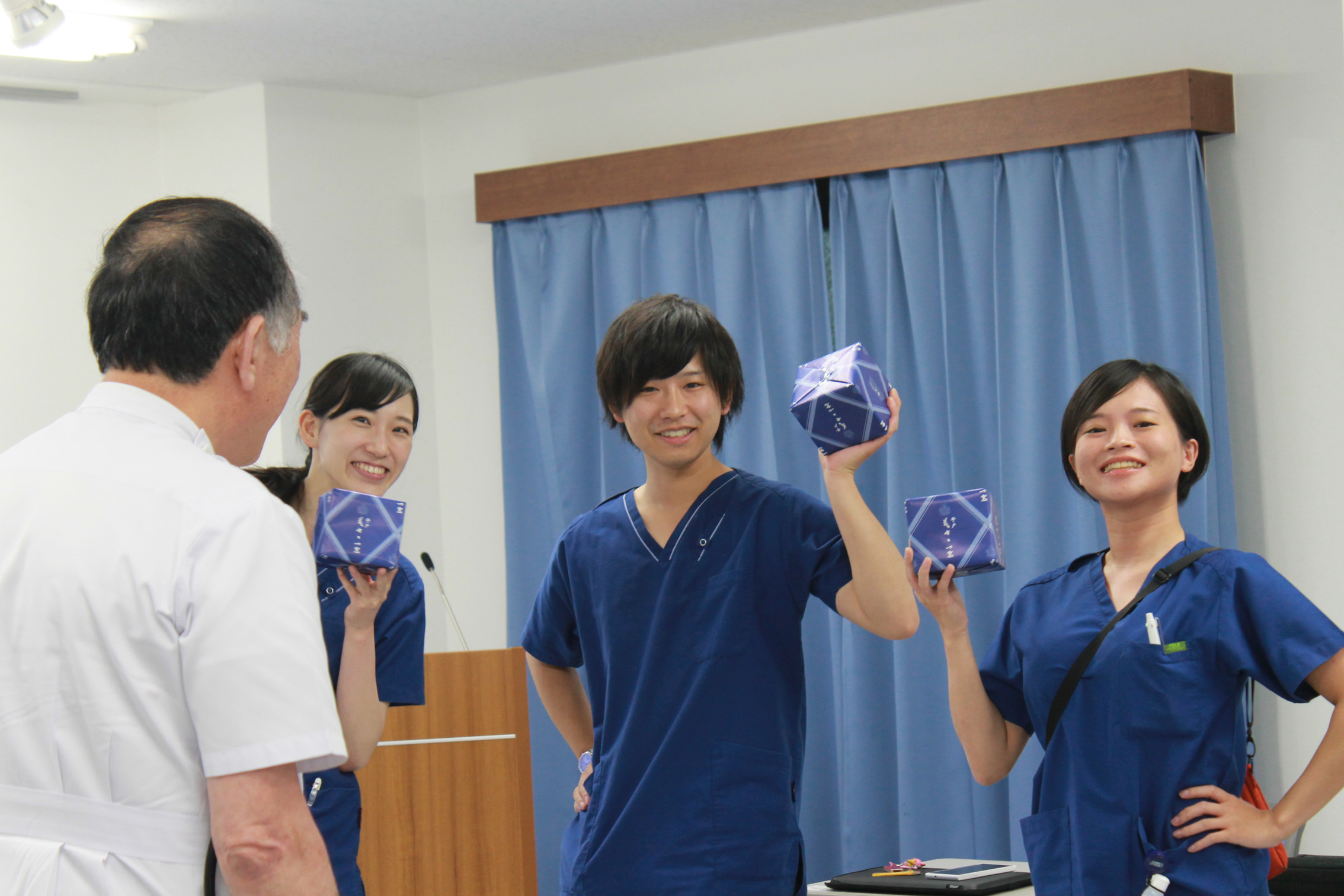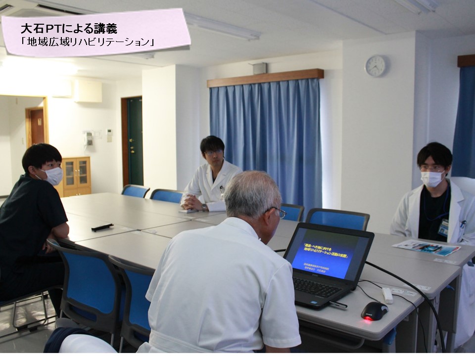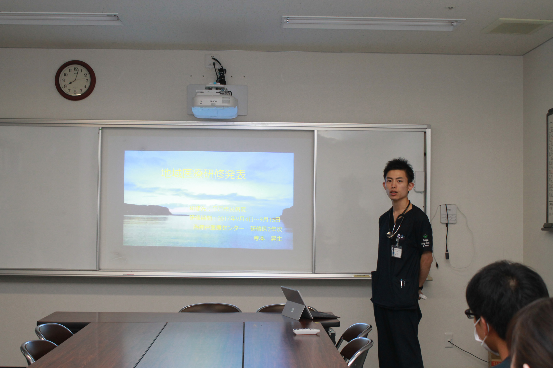 実習発表会では、たくさん職員さん方に集まっていただき、先生方それぞれに学んだことを発表しました。中には患者さんに「こんなところまで来ていただいてありがとう」と感謝されたり、外来で「先生の顔を見ただけで元気になった」と言われたエピソードもあったそうです。先生方の人柄もあったんだと思います。
