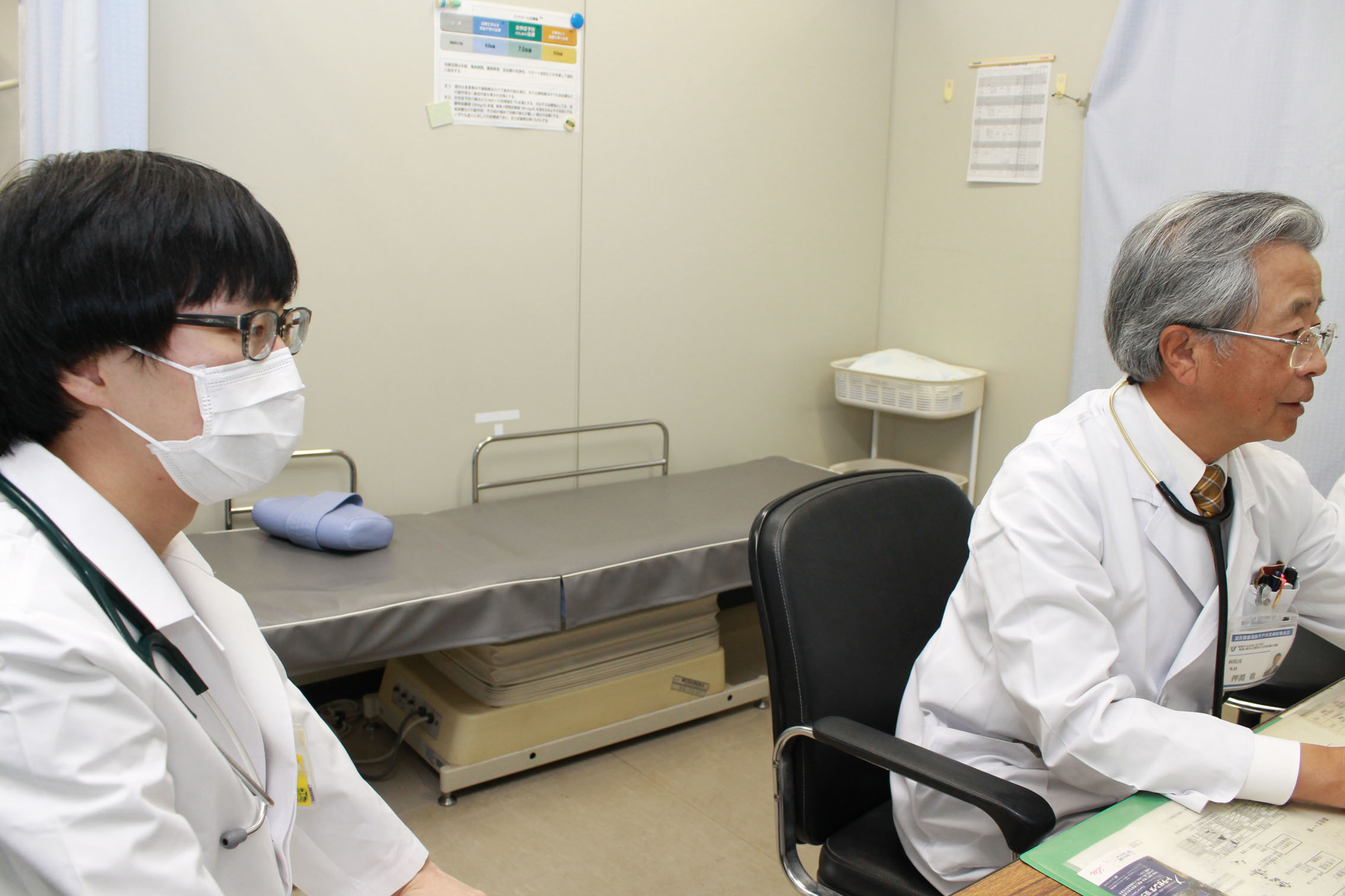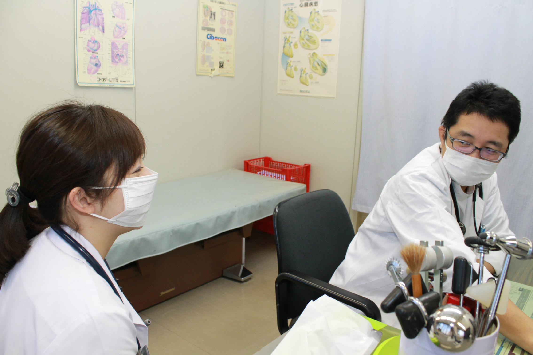 古泉先生の中桶先生との内科外来。古泉先生が患者さんの気になるところを診られた後にお邪魔いたしました。継続的に診る外来に関心を持っているようで意欲的に実習されています。